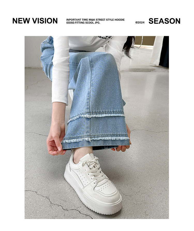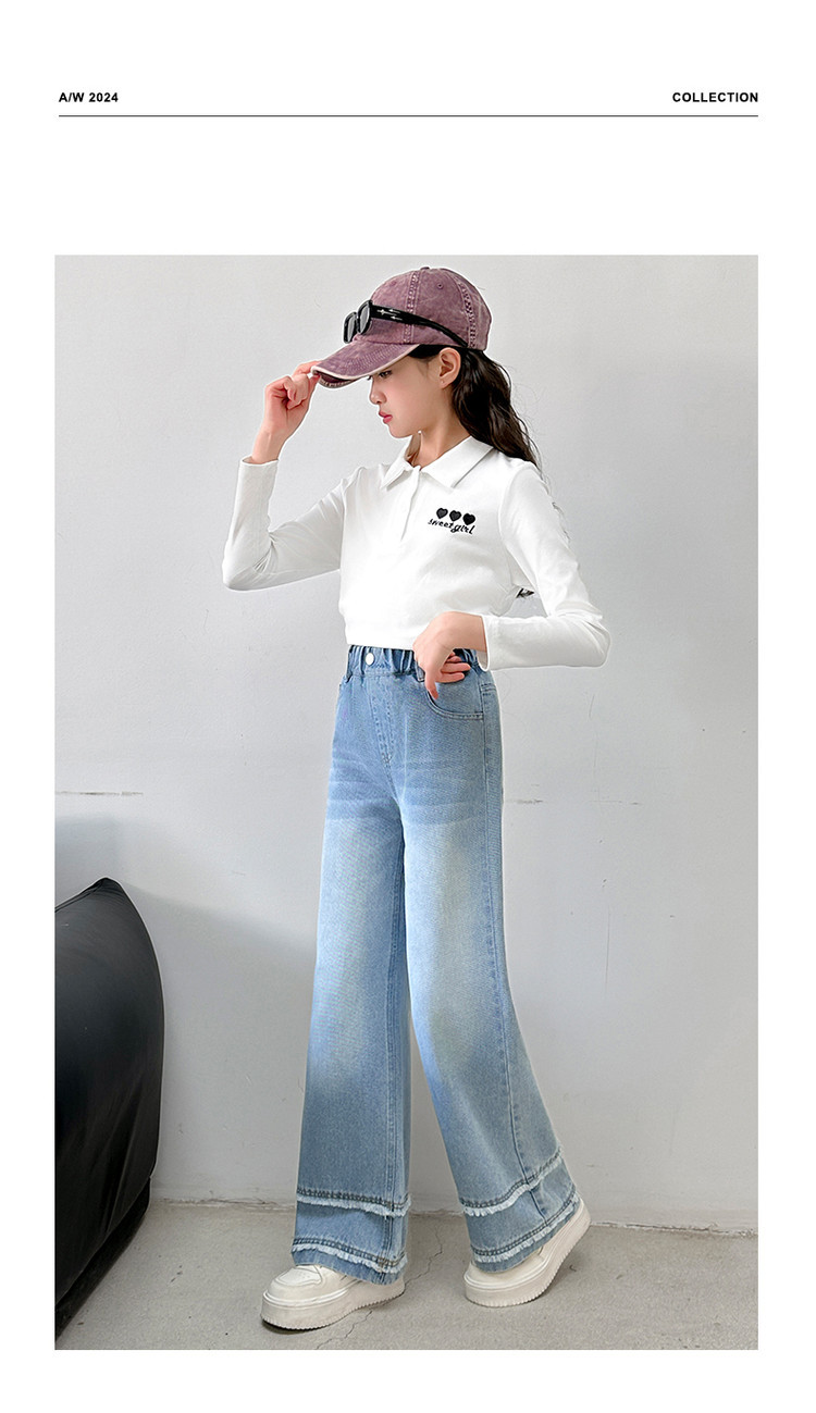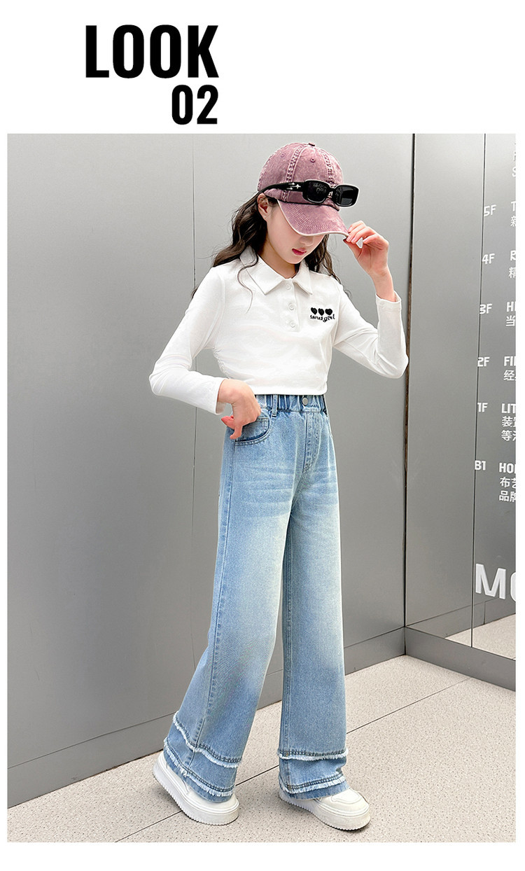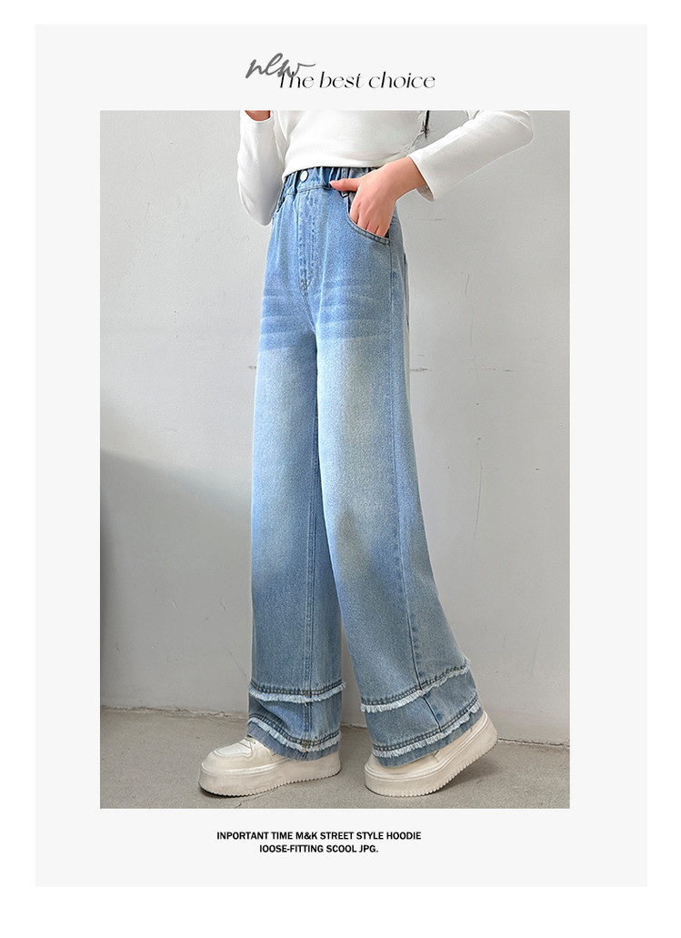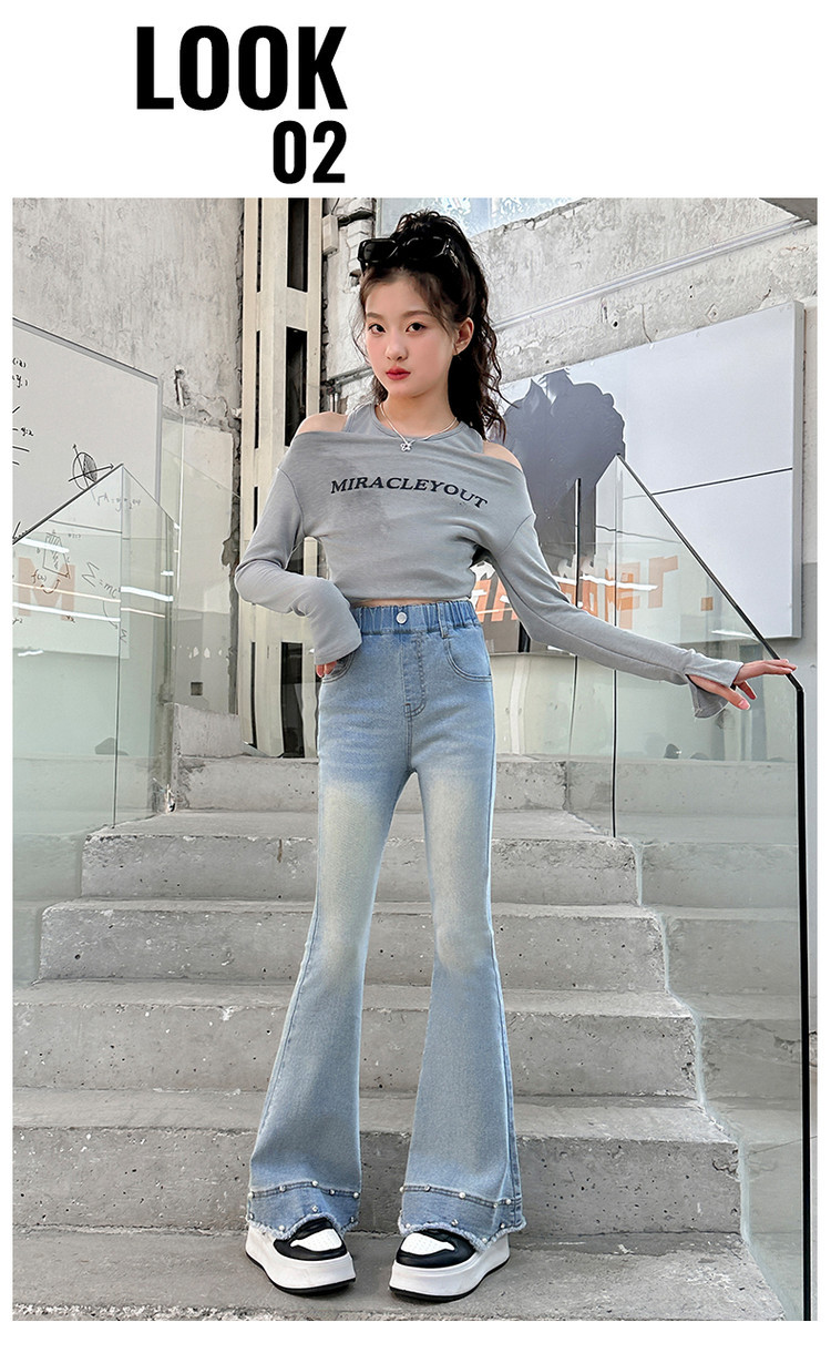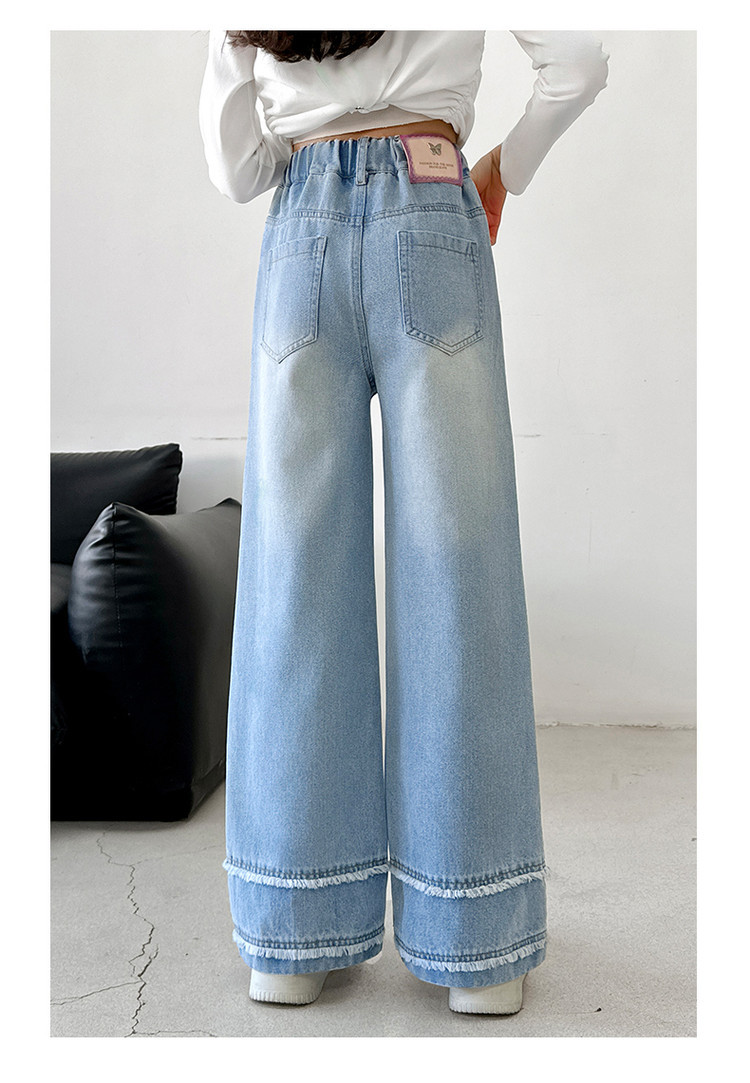 소녀의 봄과 가을 청바지 2025 새로운 어린이 슬림 핏 봄웨어 걸스 대형 어린이 곡선 모피 가장자리 경적 바지스토어 가기