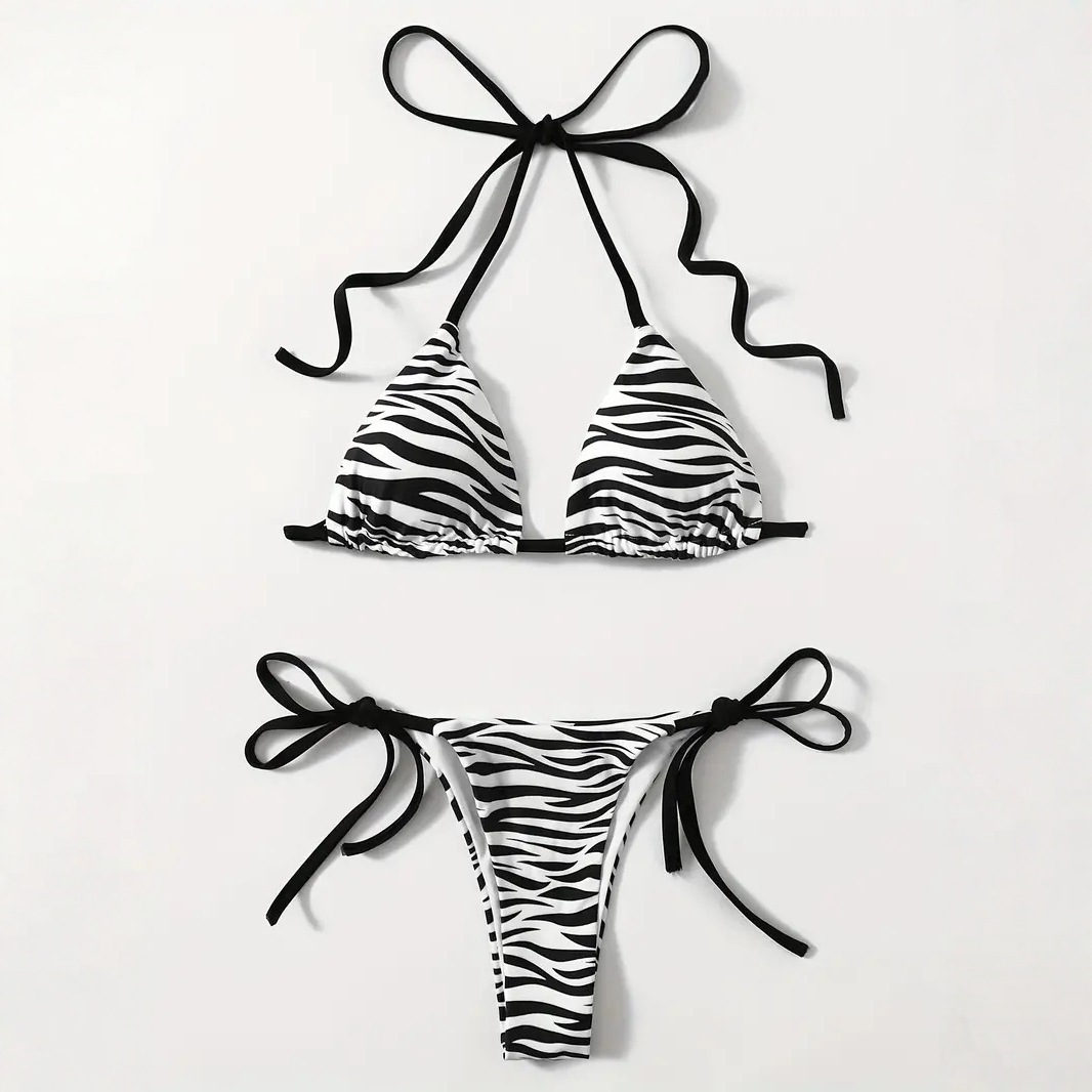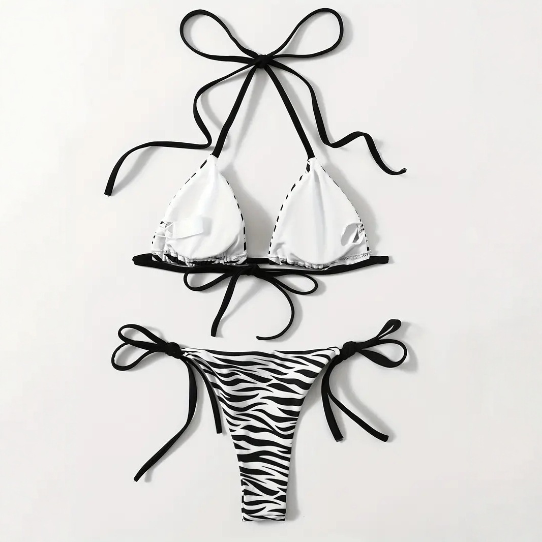 2024 새로운 아마존 레이스 업 스트라이프 비치 수영복 유럽과 미국의 섹시 백리스 스플릿 비키니 수영복 여성스토어 가기