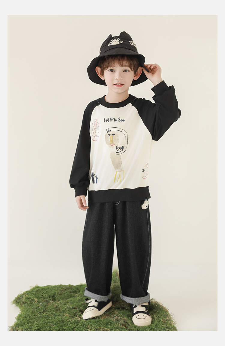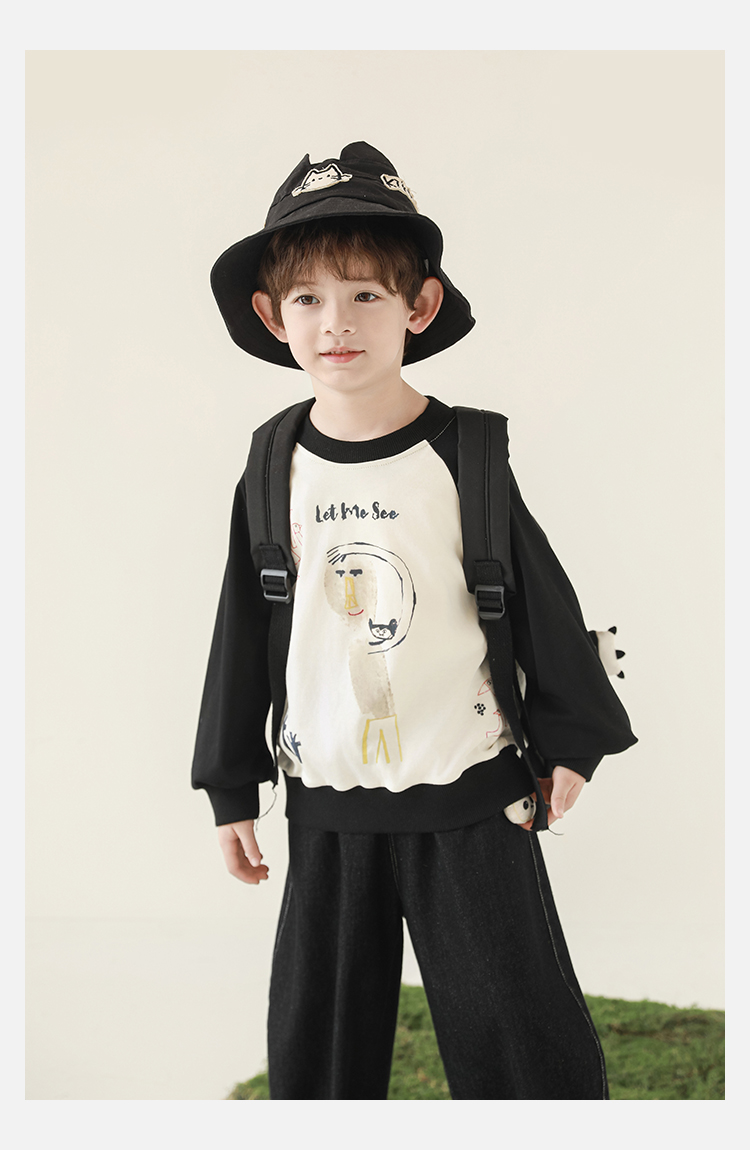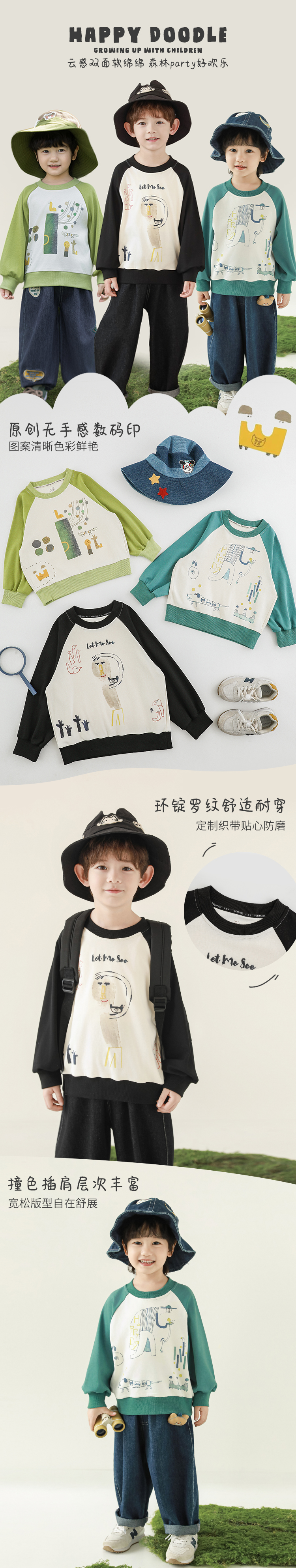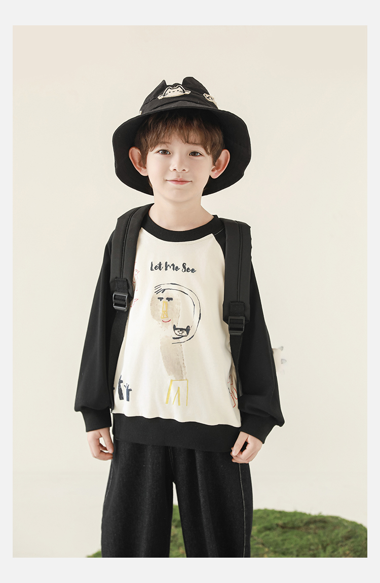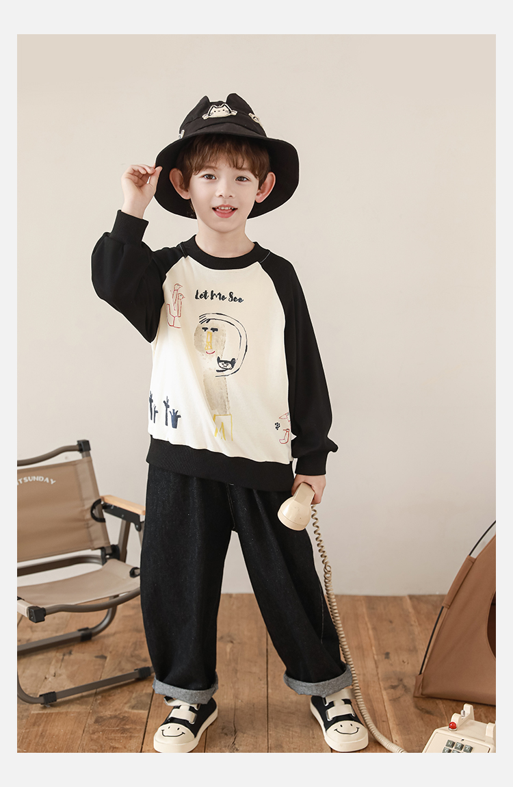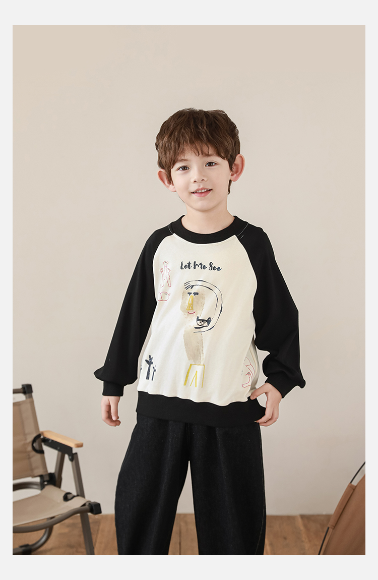 Wurib Boys 봄 새로운 인쇄 된 대조적 인 긴팔 둥근 목 땀 어린이 캐주얼 루즈 트렌디 쿨 탑스토어 가기