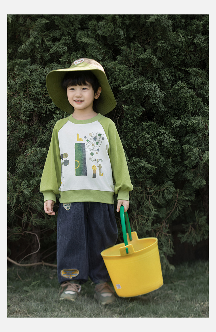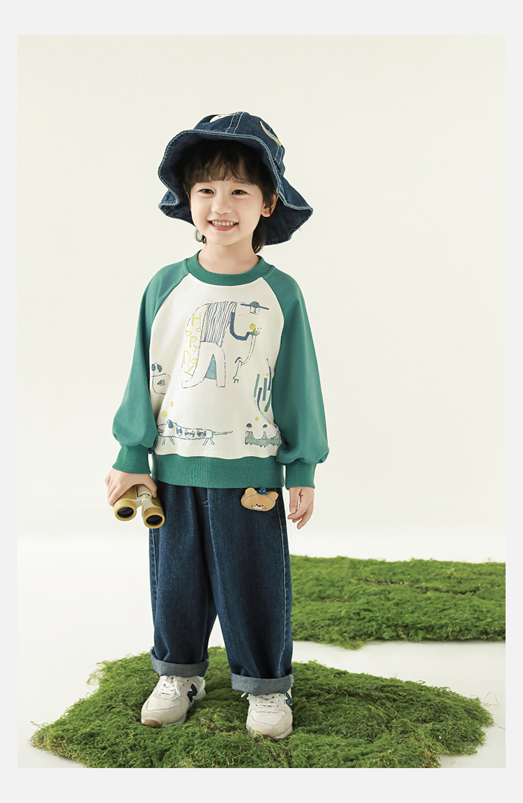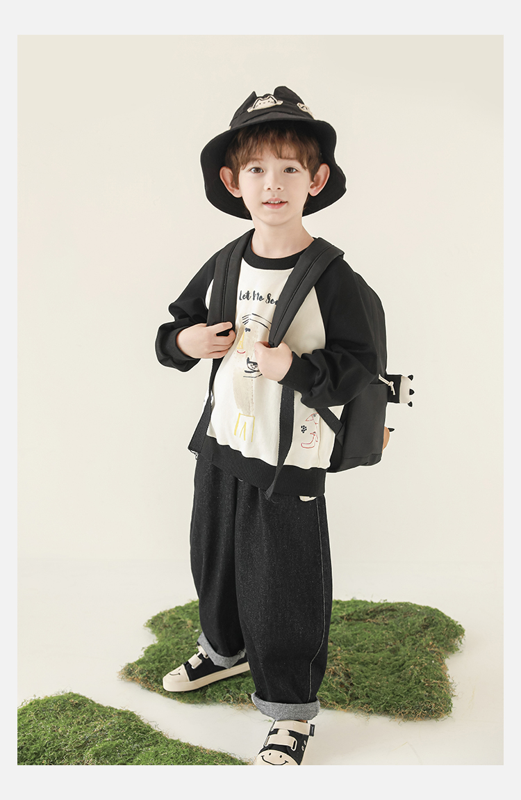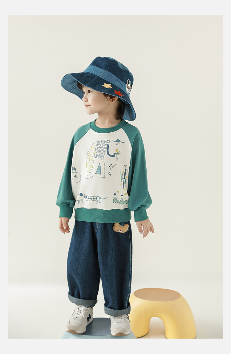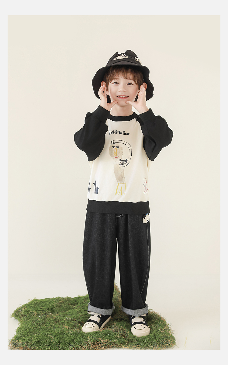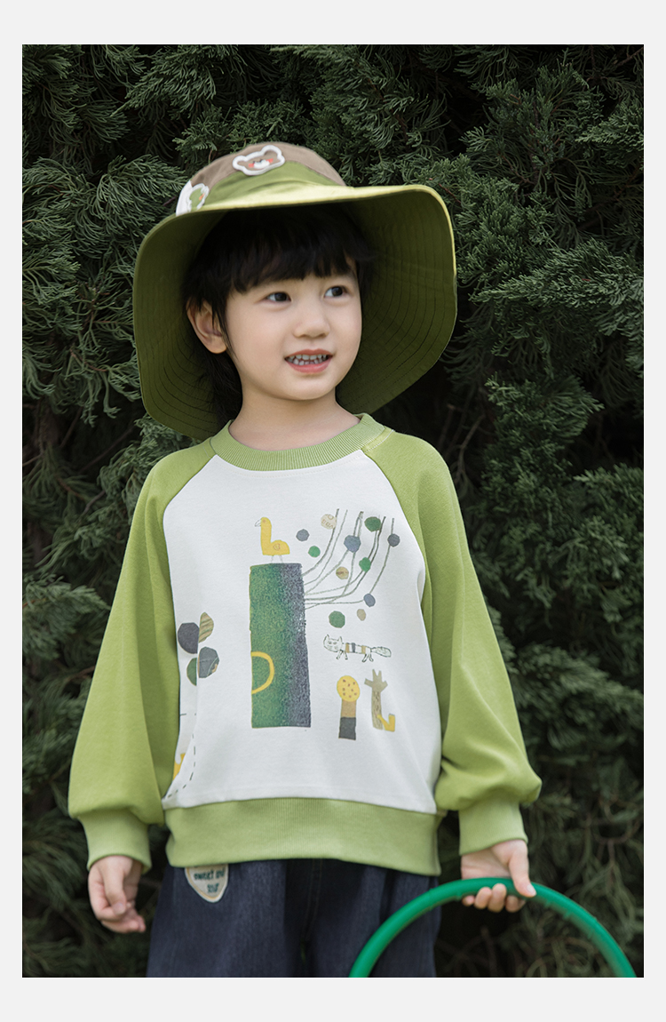 Wurib Boys 봄 새로운 인쇄 된 대조적 인 긴팔 둥근 목 땀 어린이 캐주얼 루즈 트렌디 쿨 탑스토어 가기