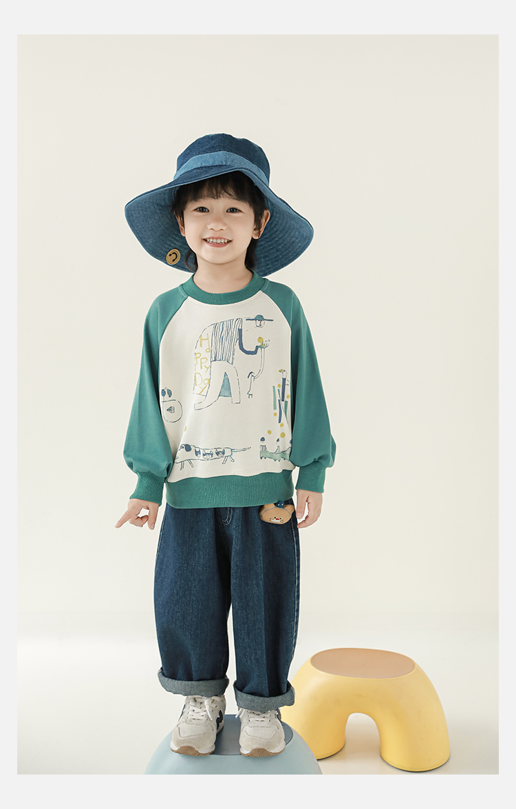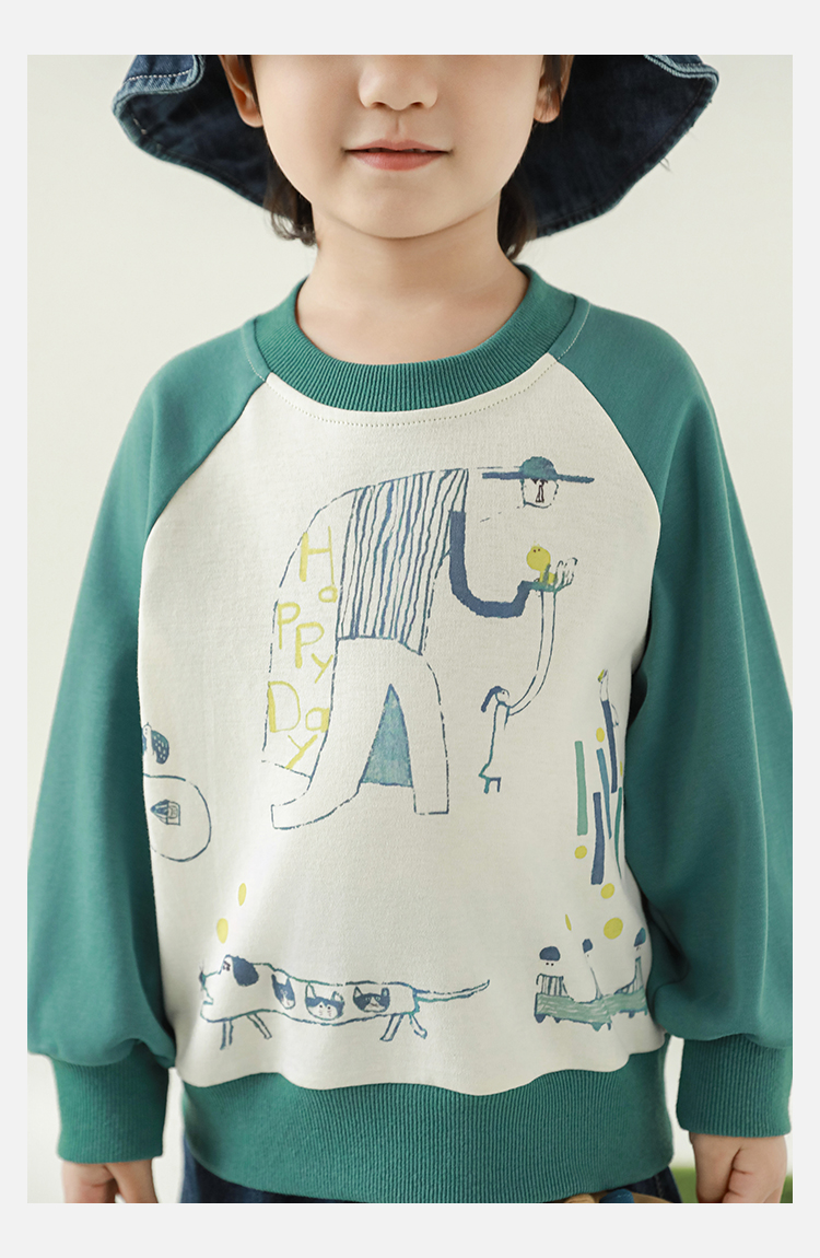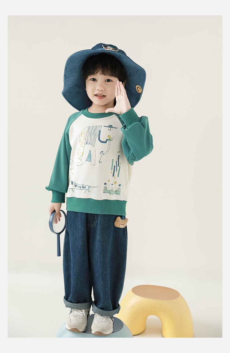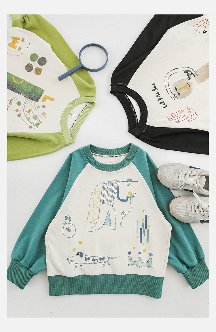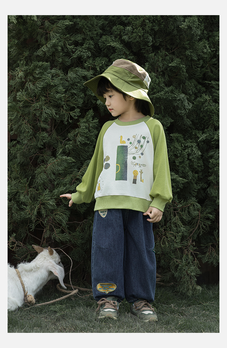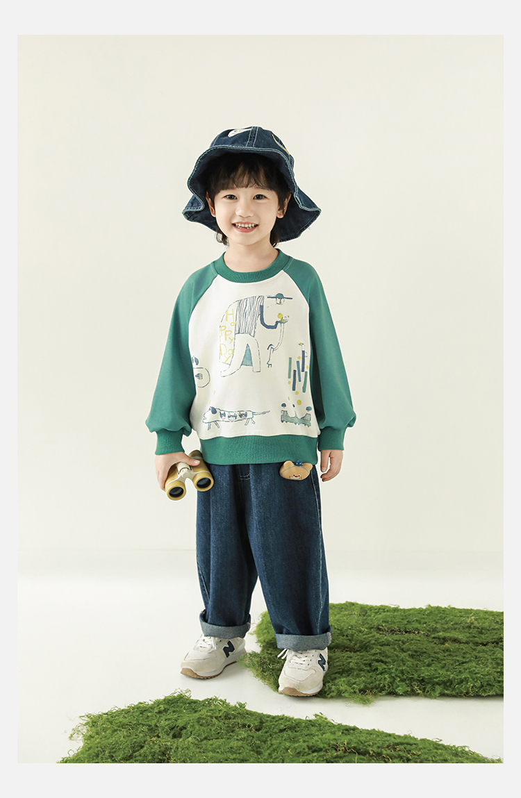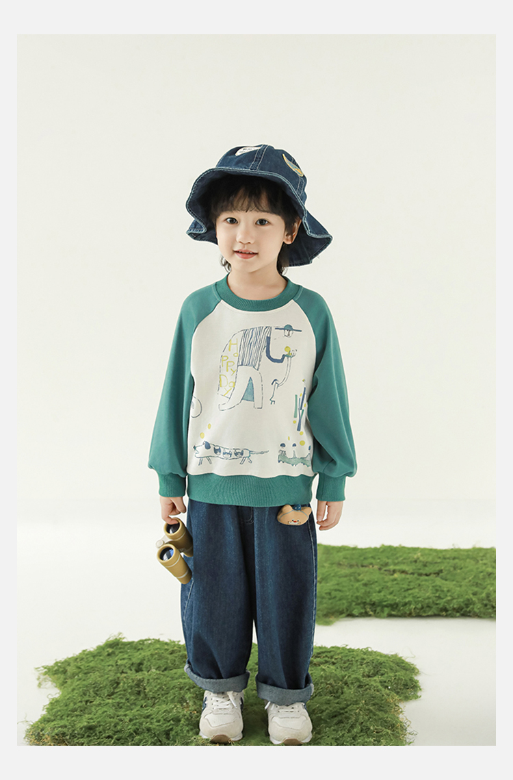 Wurib Boys 봄 새로운 인쇄 된 대조적 인 긴팔 둥근 목 땀 어린이 캐주얼 루즈 트렌디 쿨 탑스토어 가기