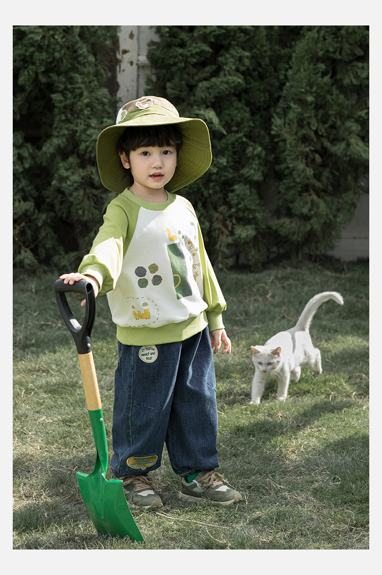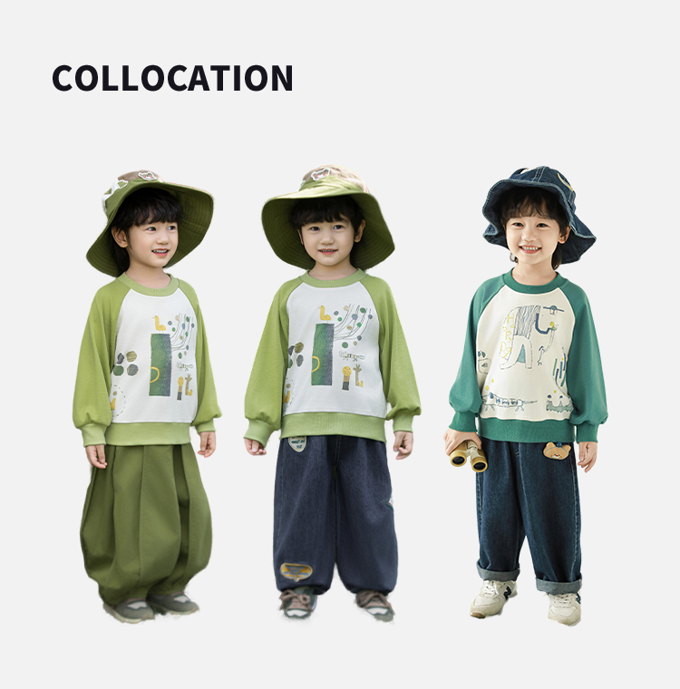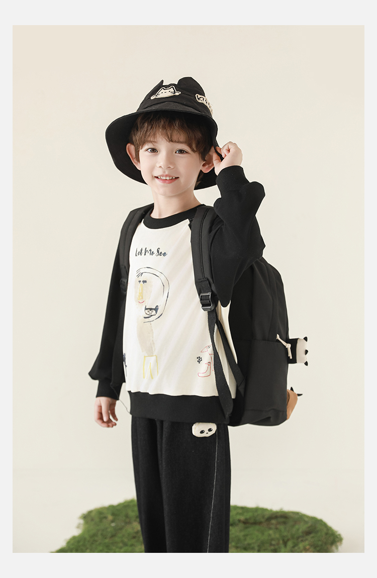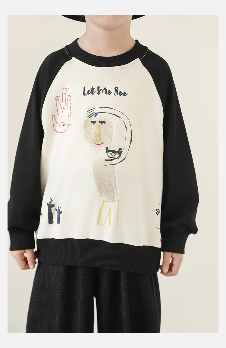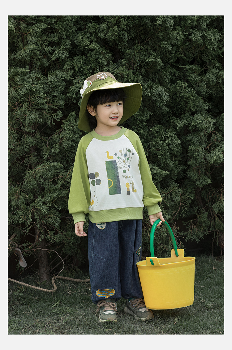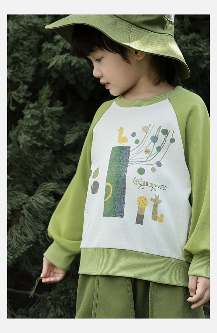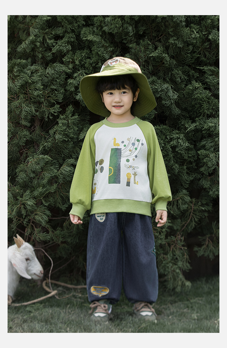 Wurib Boys 봄 새로운 인쇄 된 대조적 인 긴팔 둥근 목 땀 어린이 캐주얼 루즈 트렌디 쿨 탑스토어 가기