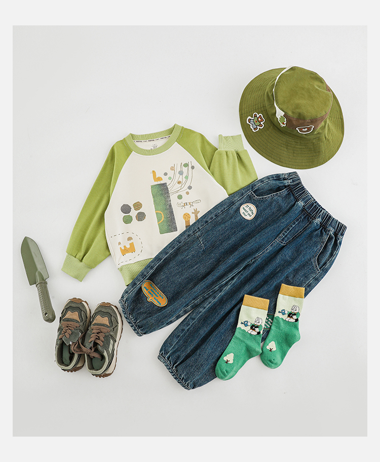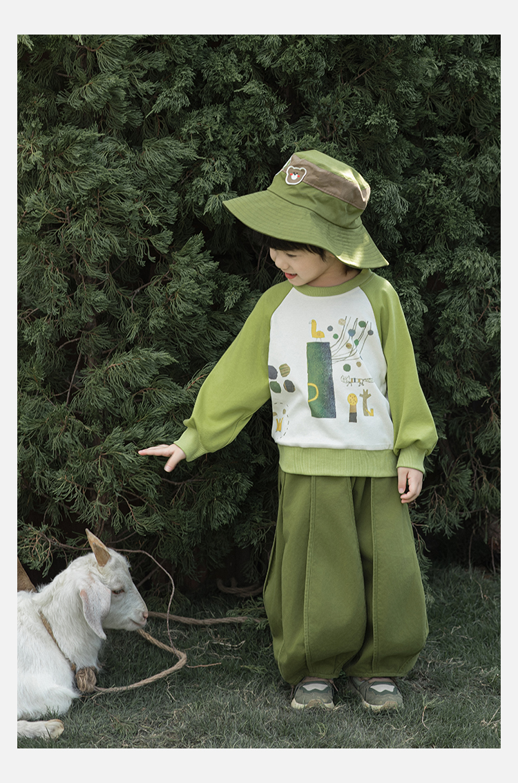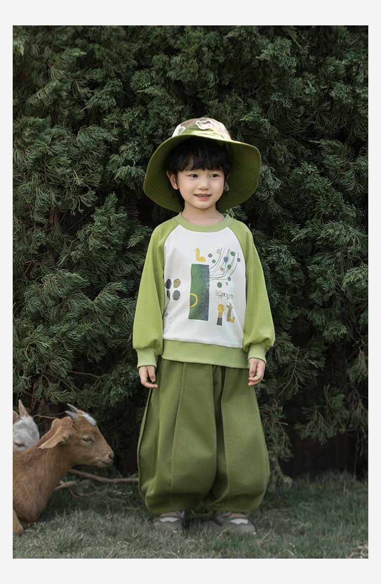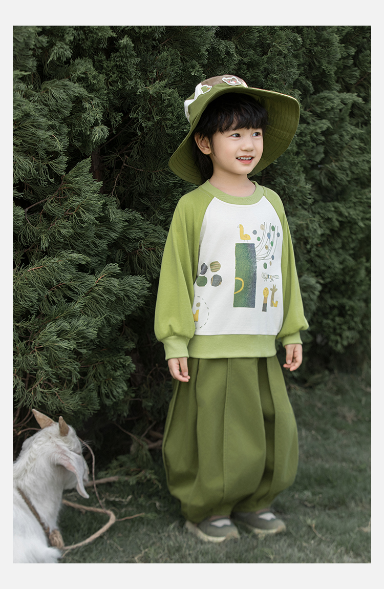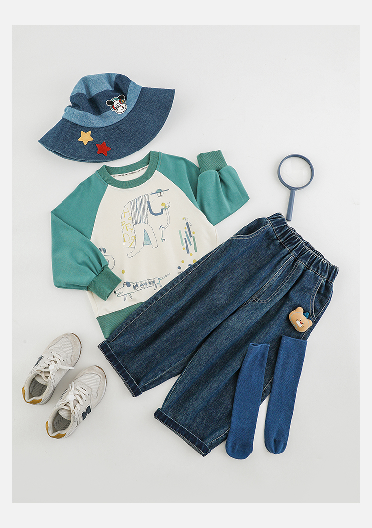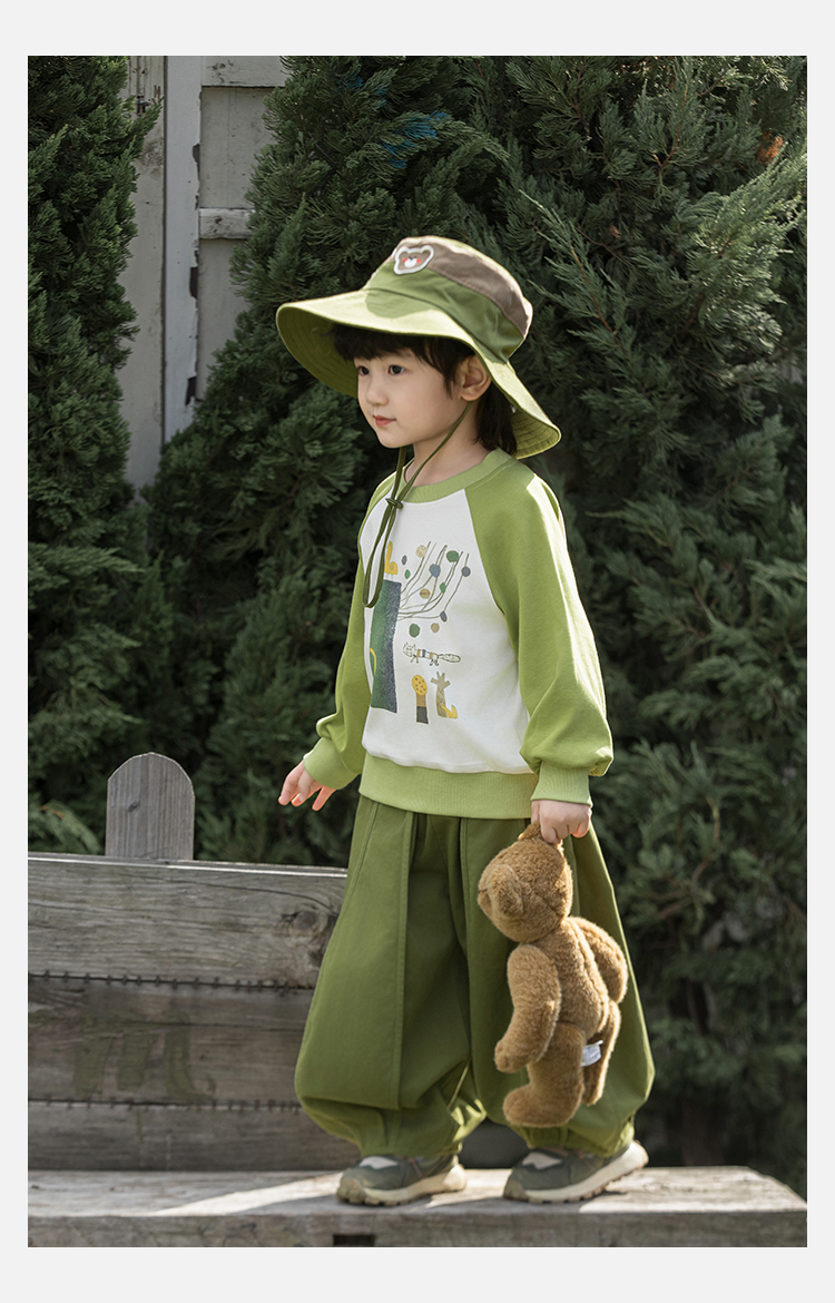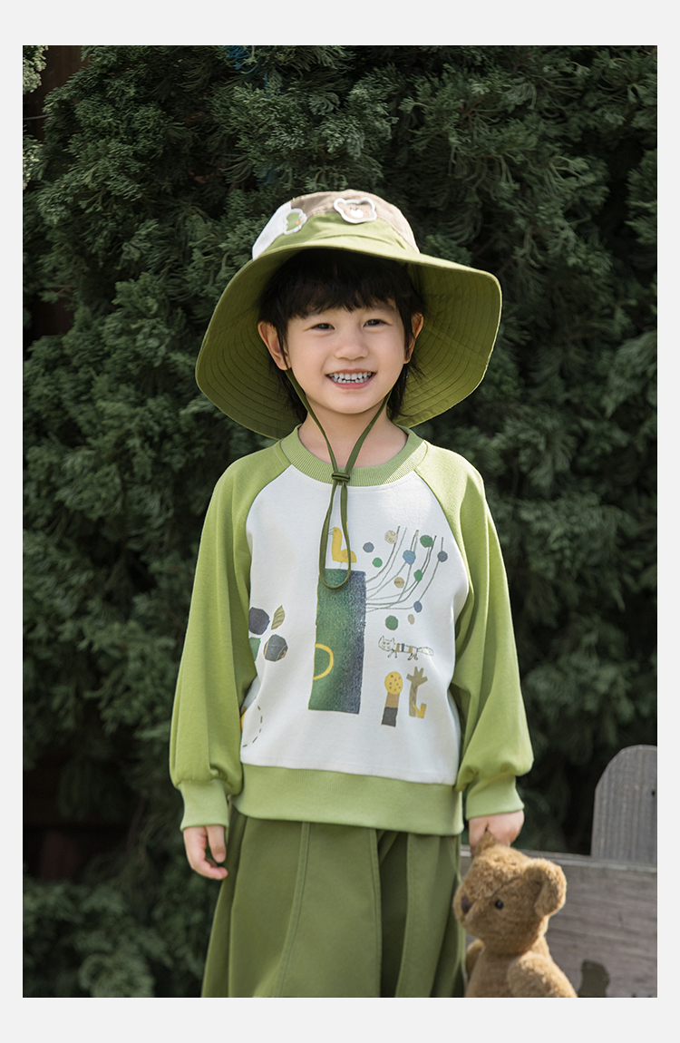 Wurib Boys 봄 새로운 인쇄 된 대조적 인 긴팔 둥근 목 땀 어린이 캐주얼 루즈 트렌디 쿨 탑스토어 가기