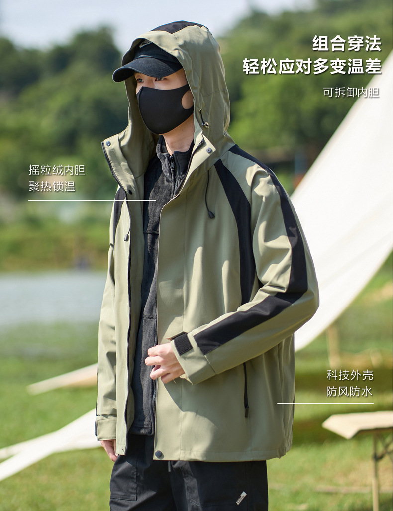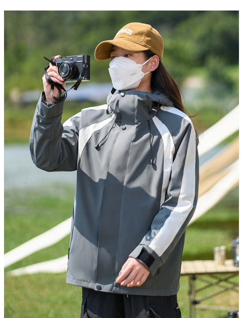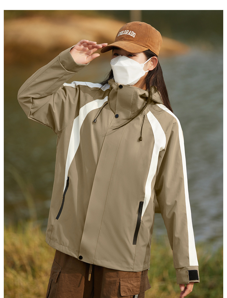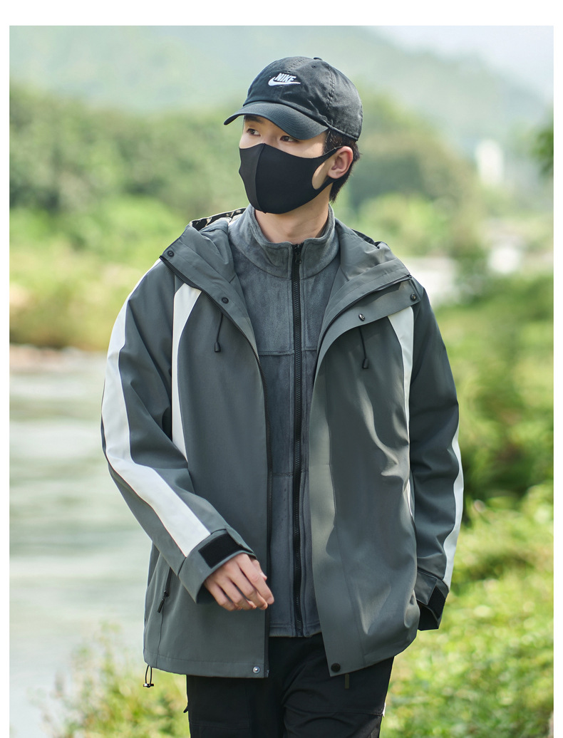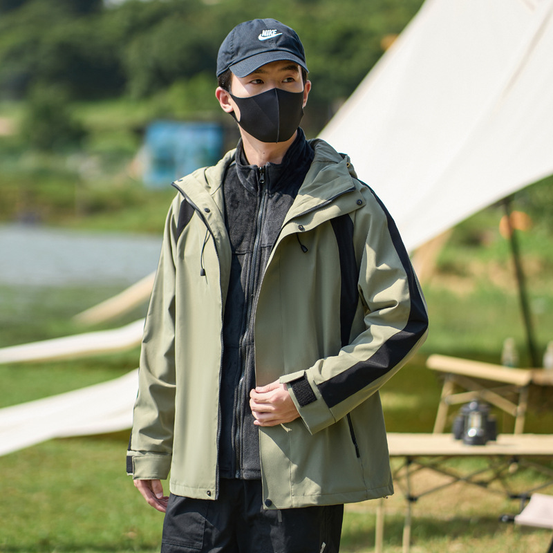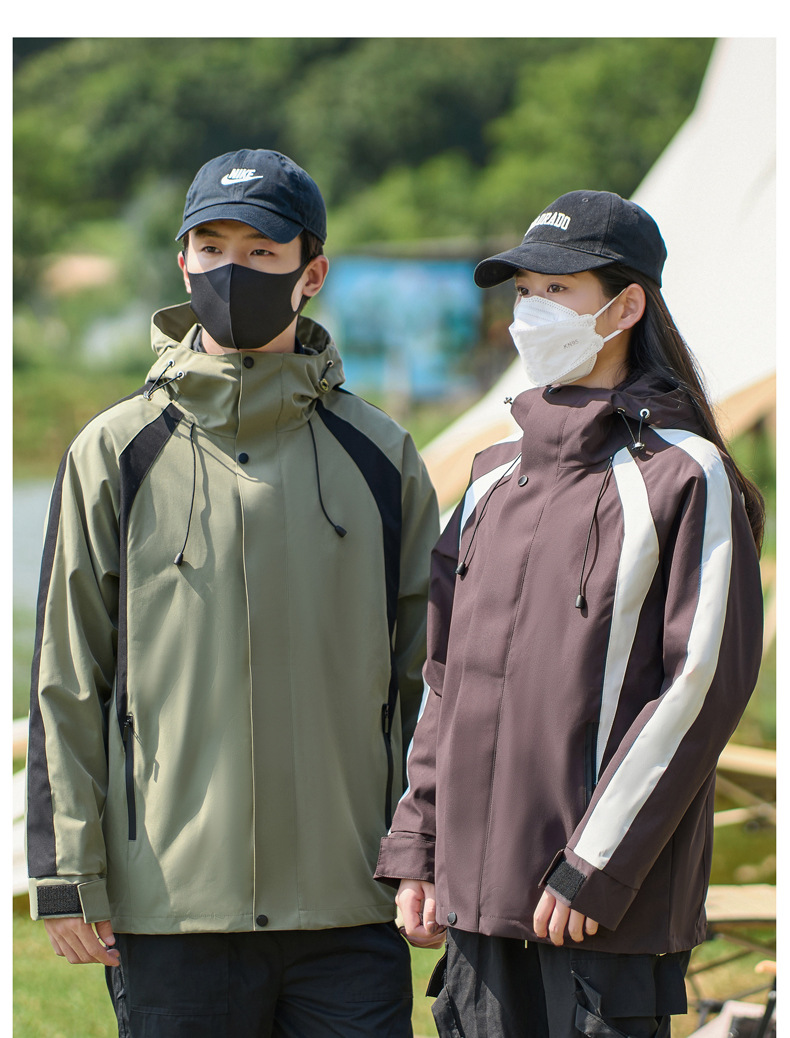 새로운 야외 남성 러쉬 워크 의류 여성의 봄 가을 겨울 방풍 방수 분리 가능한 커플의 등산 세트 후드 재킷
