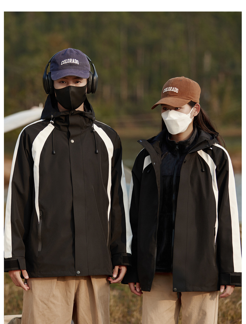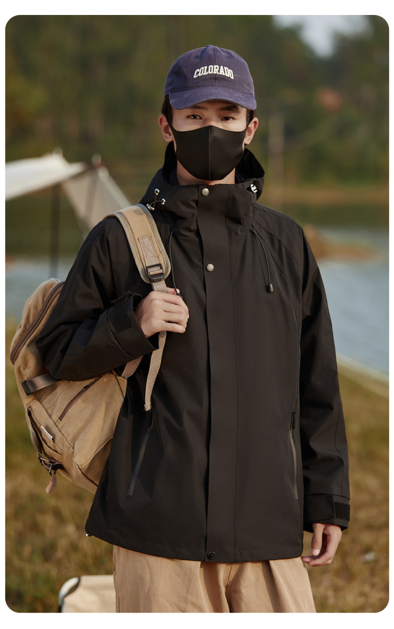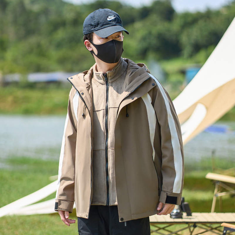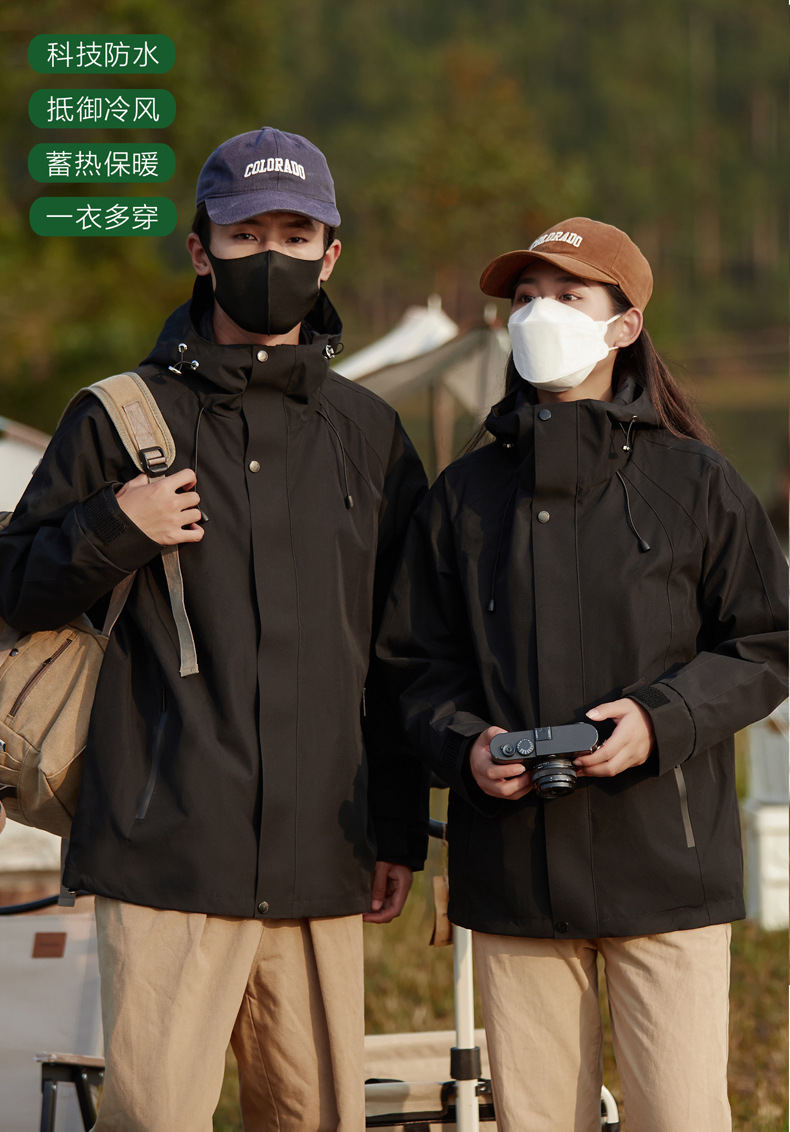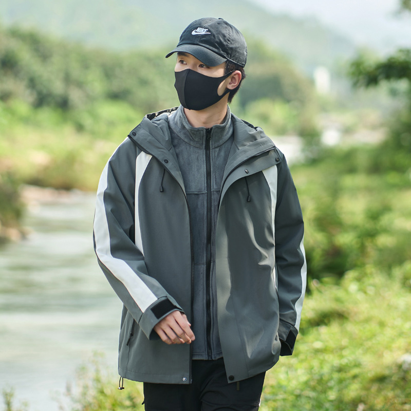 새로운 야외 남성 러쉬 워크 의류 여성의 봄 가을 겨울 방풍 방수 분리 가능한 커플의 등산 세트 후드 재킷