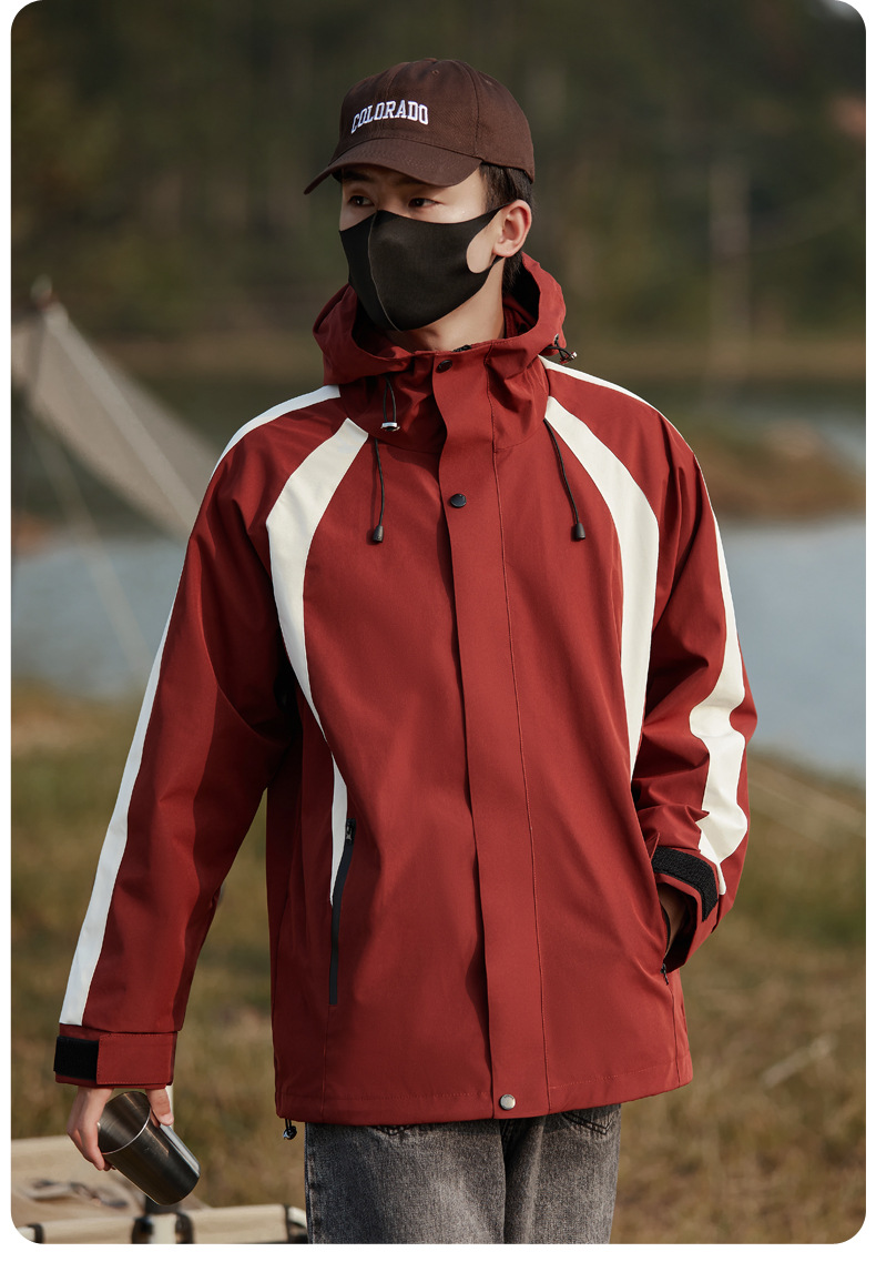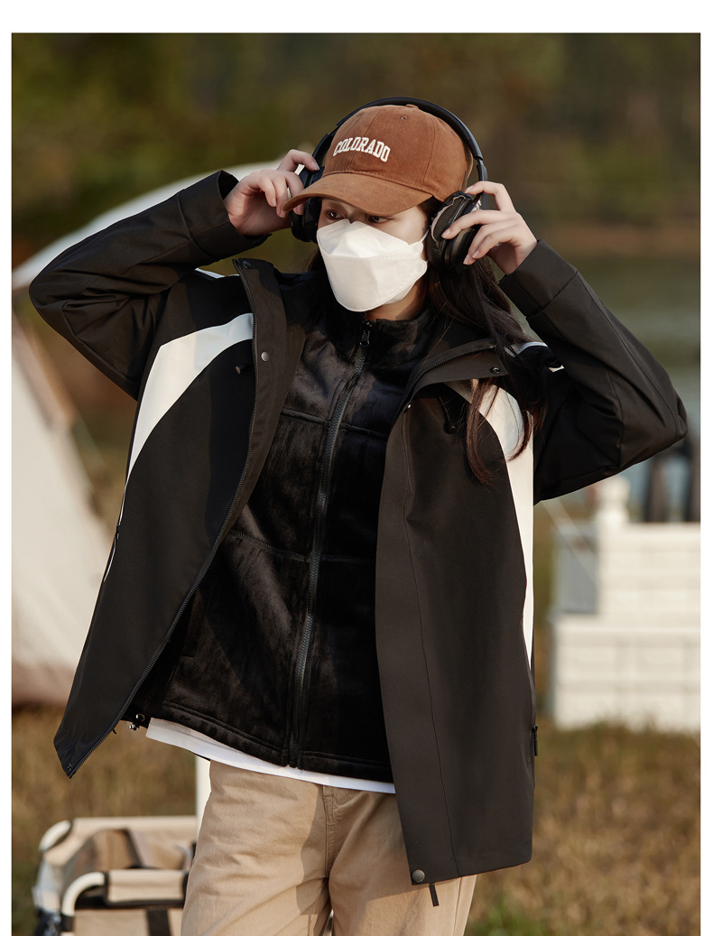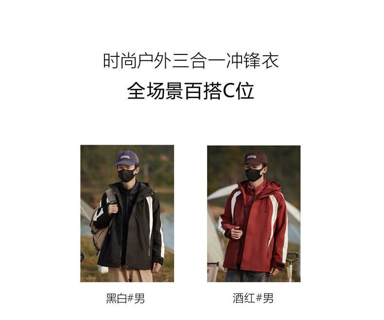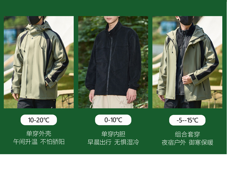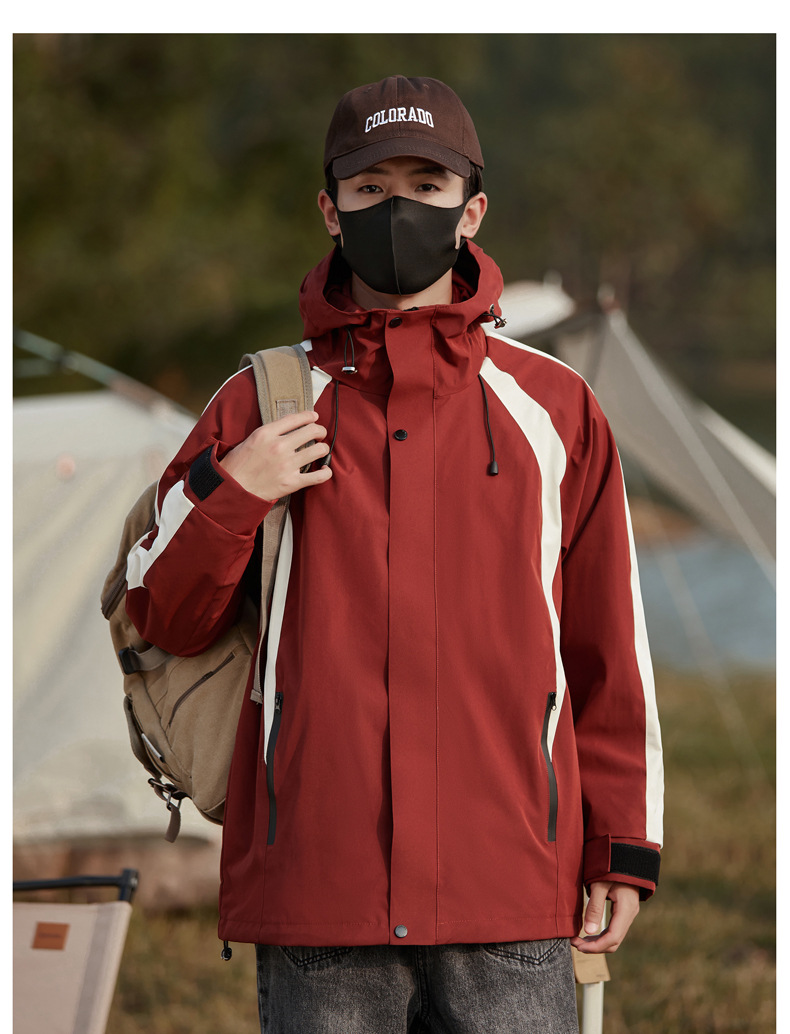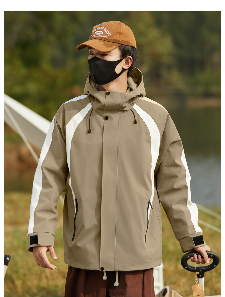 새로운 야외 남성 러쉬 워크 의류 여성의 봄 가을 겨울 방풍 방수 분리 가능한 커플의 등산 세트 후드 재킷