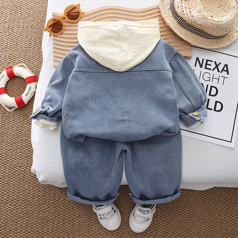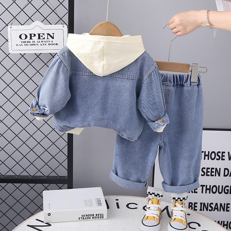 2025 새로운 봄 아동복 긴팔 소년 후드 데님 3 피스 어린이 봄 의류 어린이 세트 세대스토어 가기