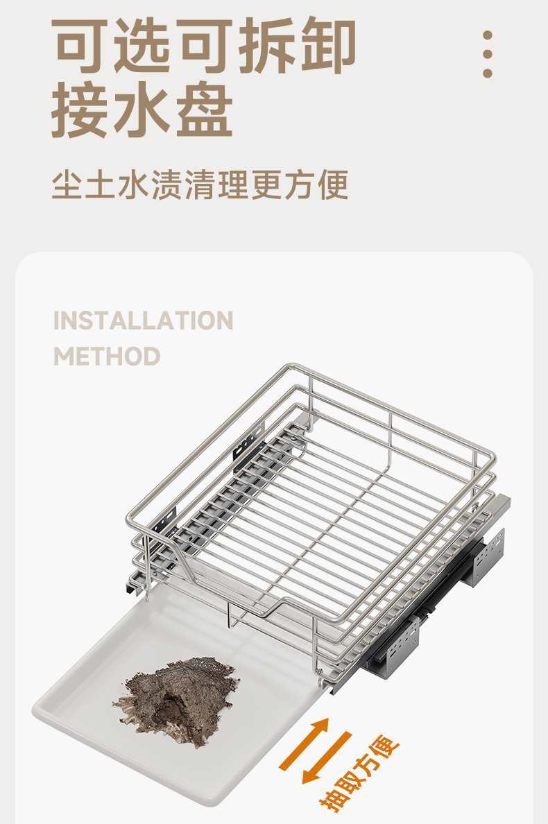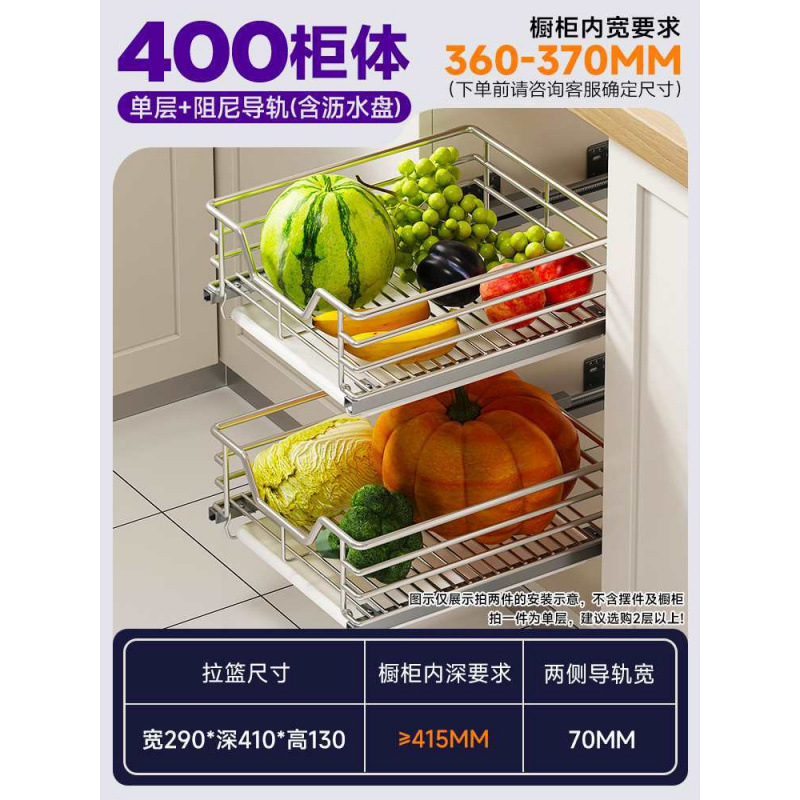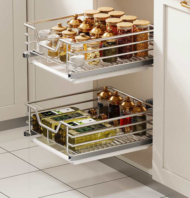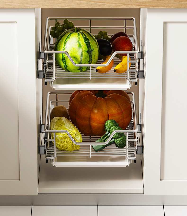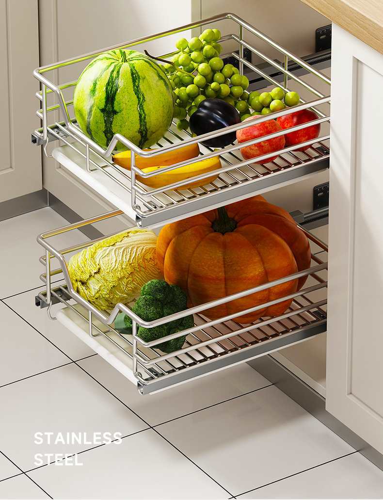 주방 캐비닛 서랍 유형 과일 및 야채 야채 과일 및 과일 바구니 스테인레스 스틸 보관 간식 조미료 보관
