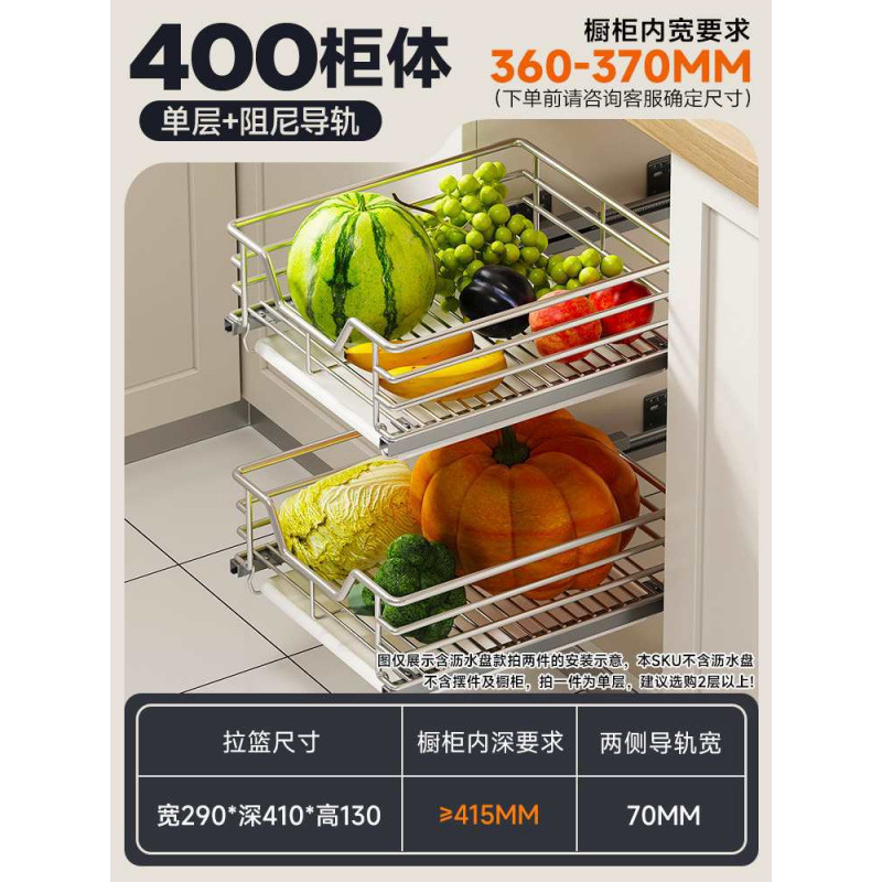 주방 캐비닛 서랍 유형 과일 및 야채 야채 과일 및 과일 바구니 스테인레스 스틸 보관 간식 조미료 보관스토어 가기