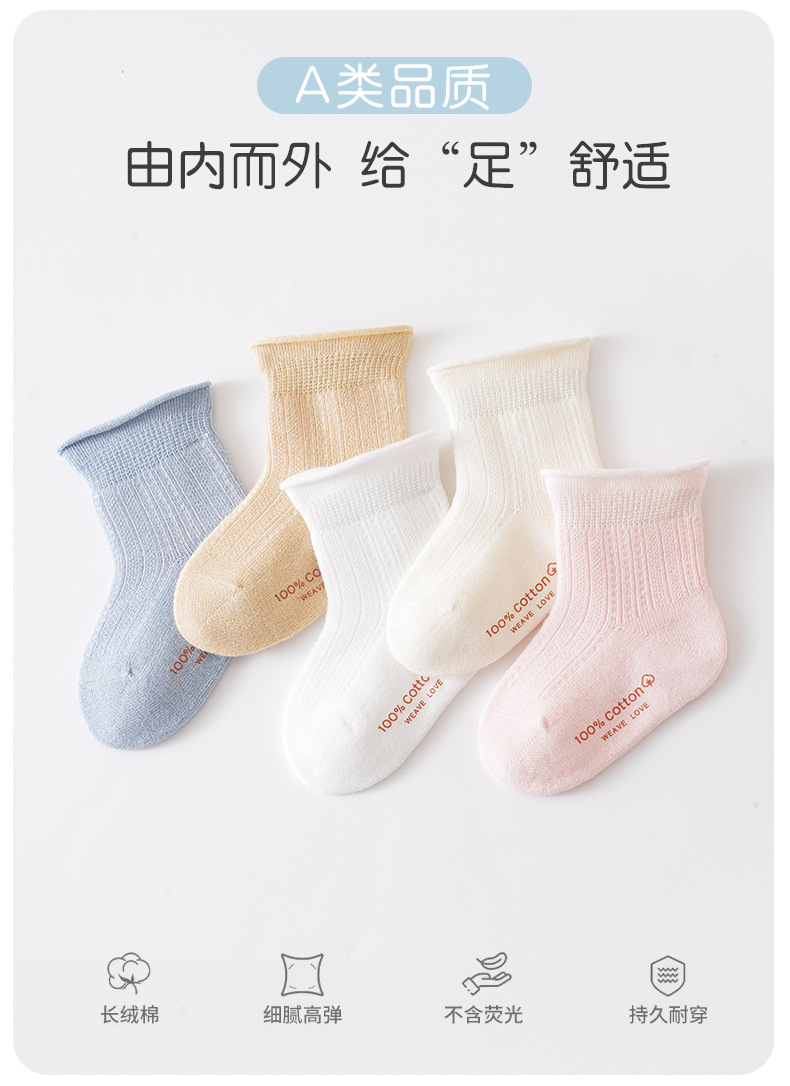 Xiyujia 봄과 여름 새로운 아기 양말 통기성 단색 컬링 느슨한 아기 뼈없는 통기성 얇은 튜브 양말