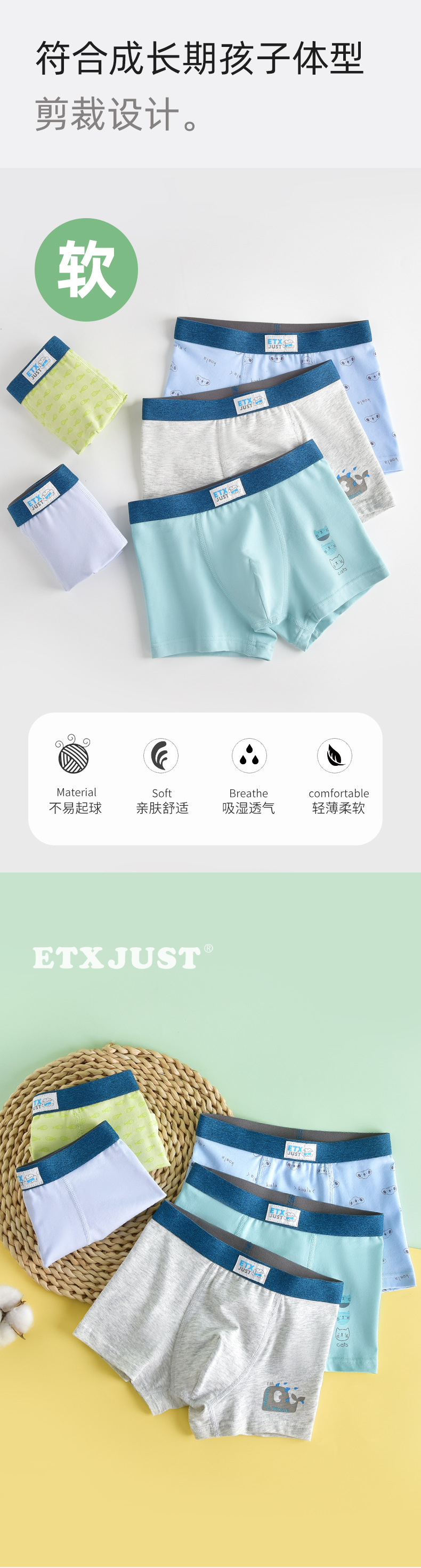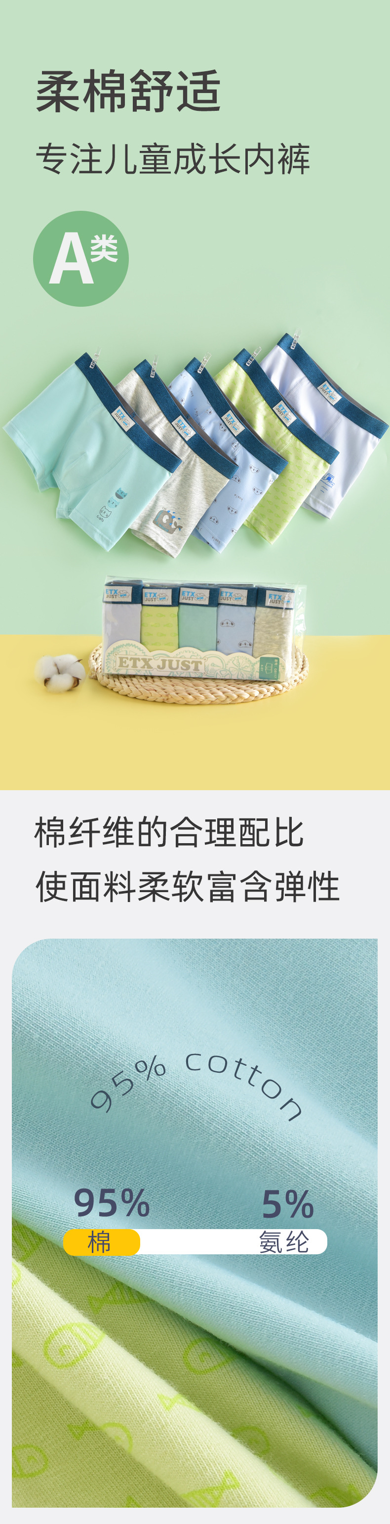 ETX117 어린이 속옷 코튼 보이스 속옷 클래스 A 어린이 소년 바지 중 · 대형 어린이 복서 반바지
