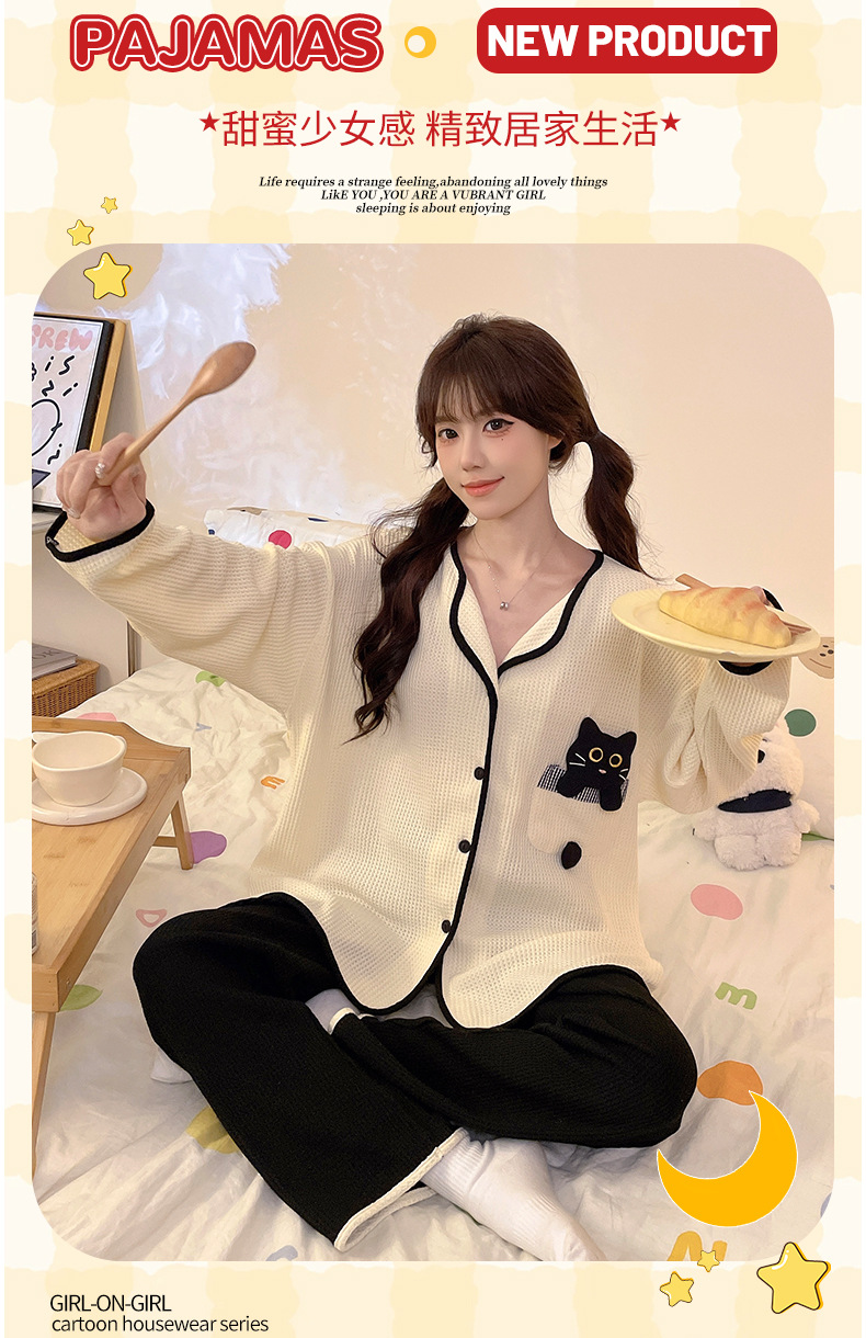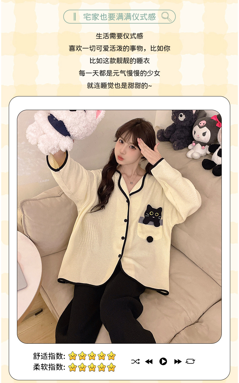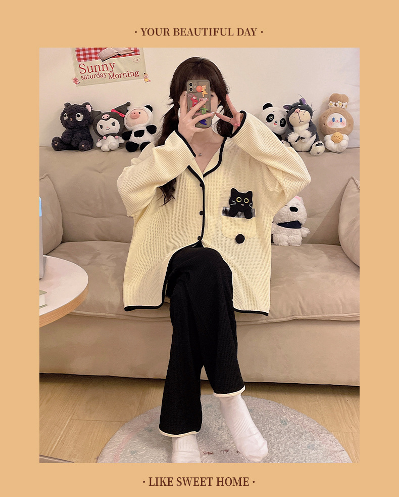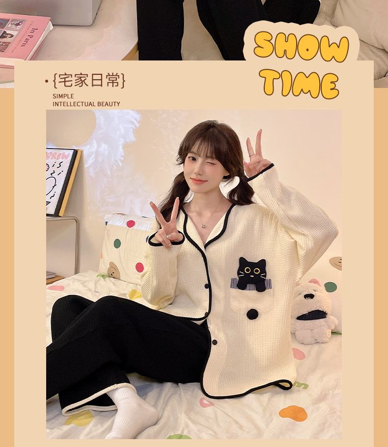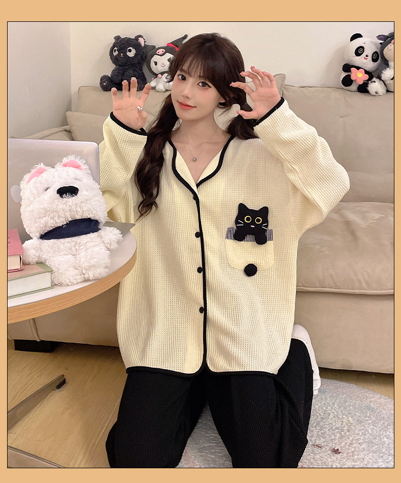 대외 무역 도매 봄 새로운 모조 면화 와플 카디건 긴 소매 바지 세트 잠옷 여성 홈 의류 세대스토어 가기