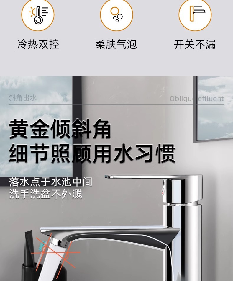 모든 구리 화장실 세면기 수도꼭지 세면대 뜨겁고 차가운 가정용 세면대 세차 세면대 뜨거운 물