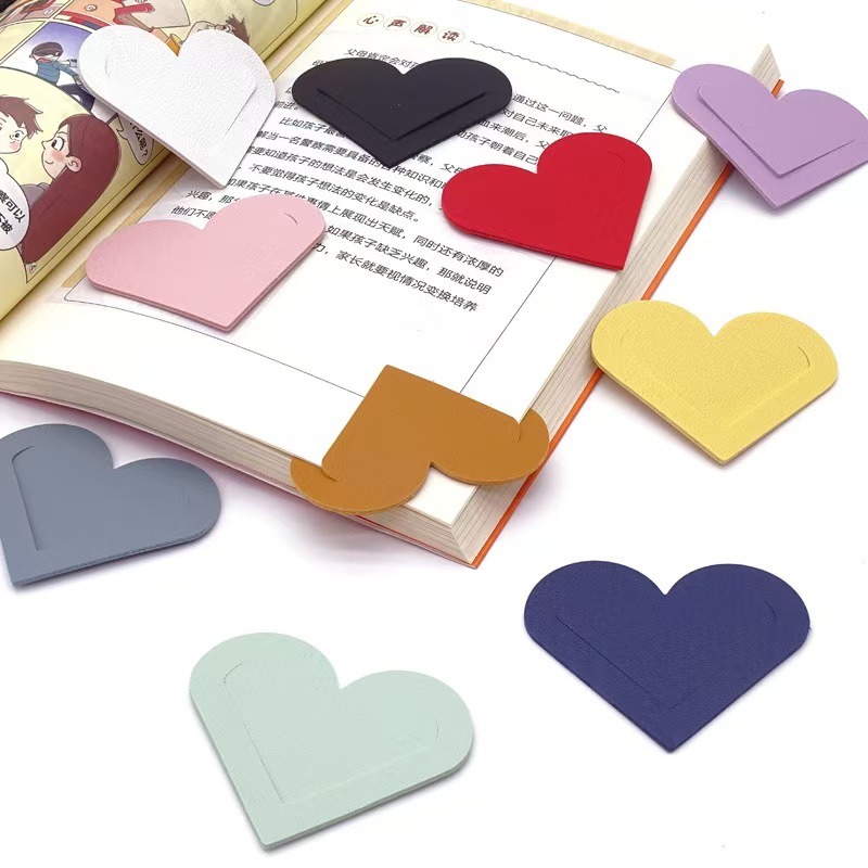새로운 창의적인 빈 PU 가죽 미니 하트 모양 책갈피 휴대용 학생 책 페이지 클립 책갈피 책 모서리 보호스토어 가기