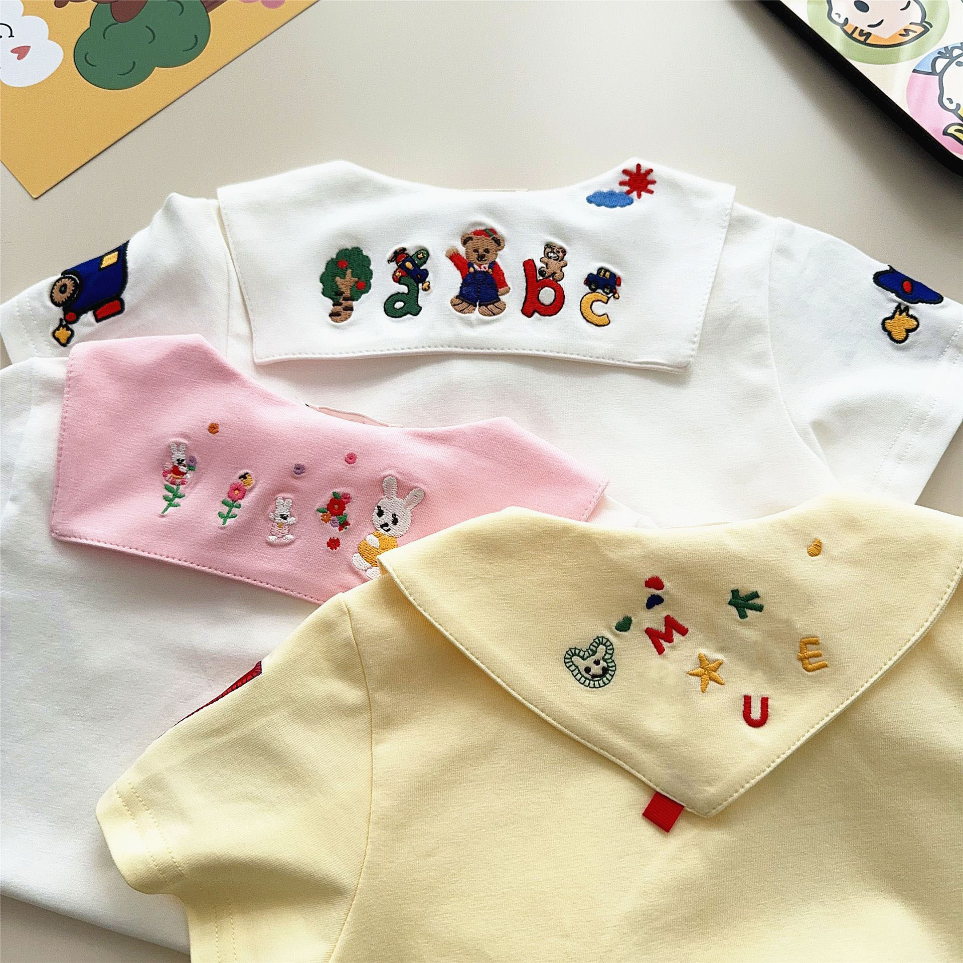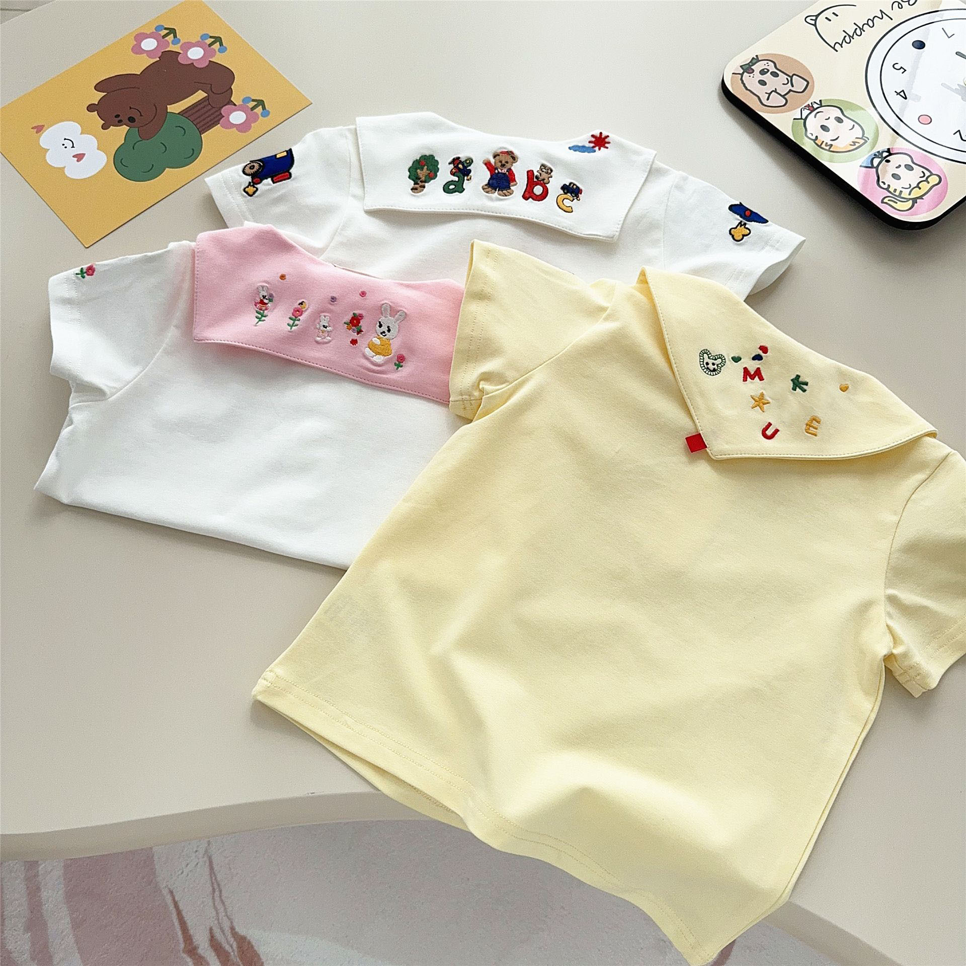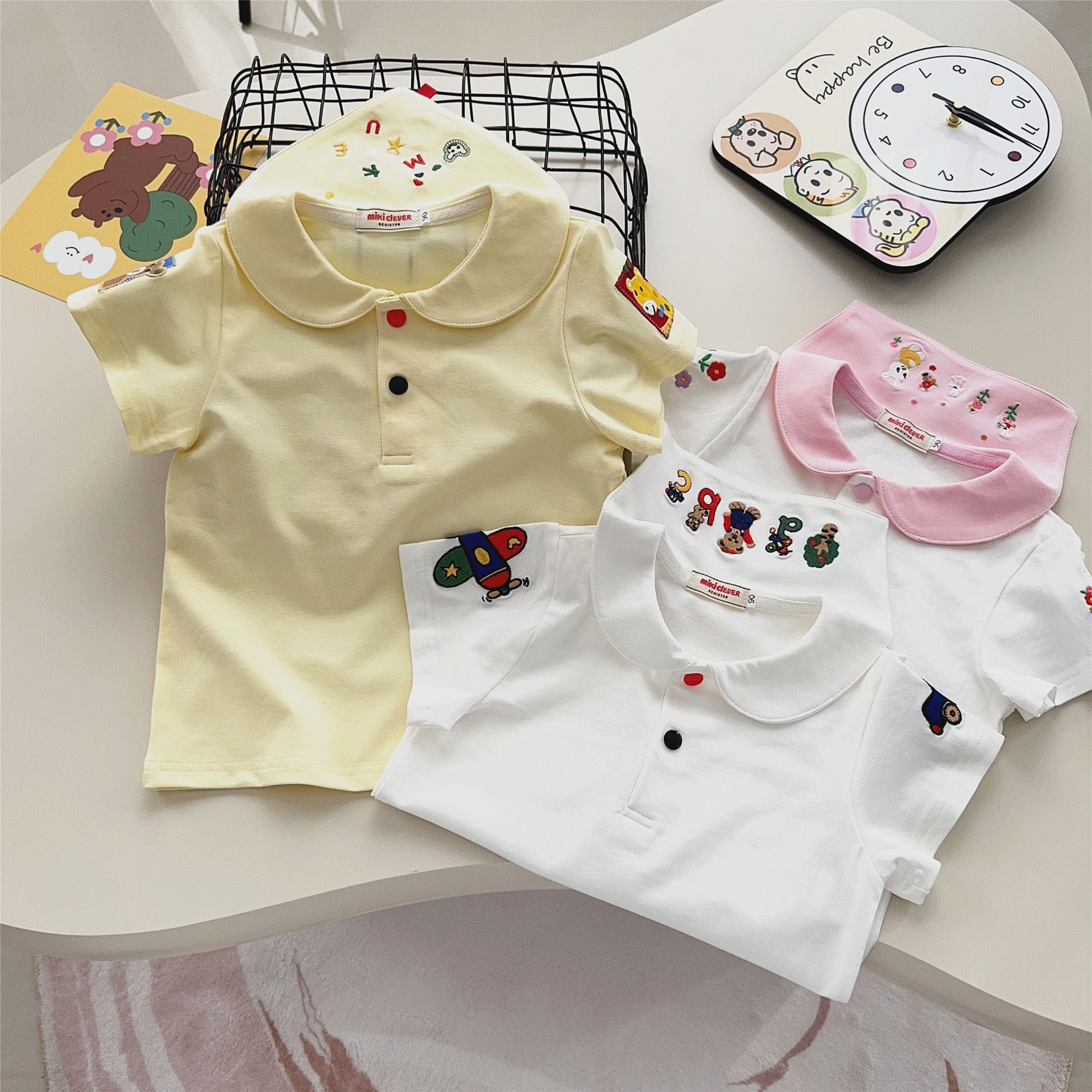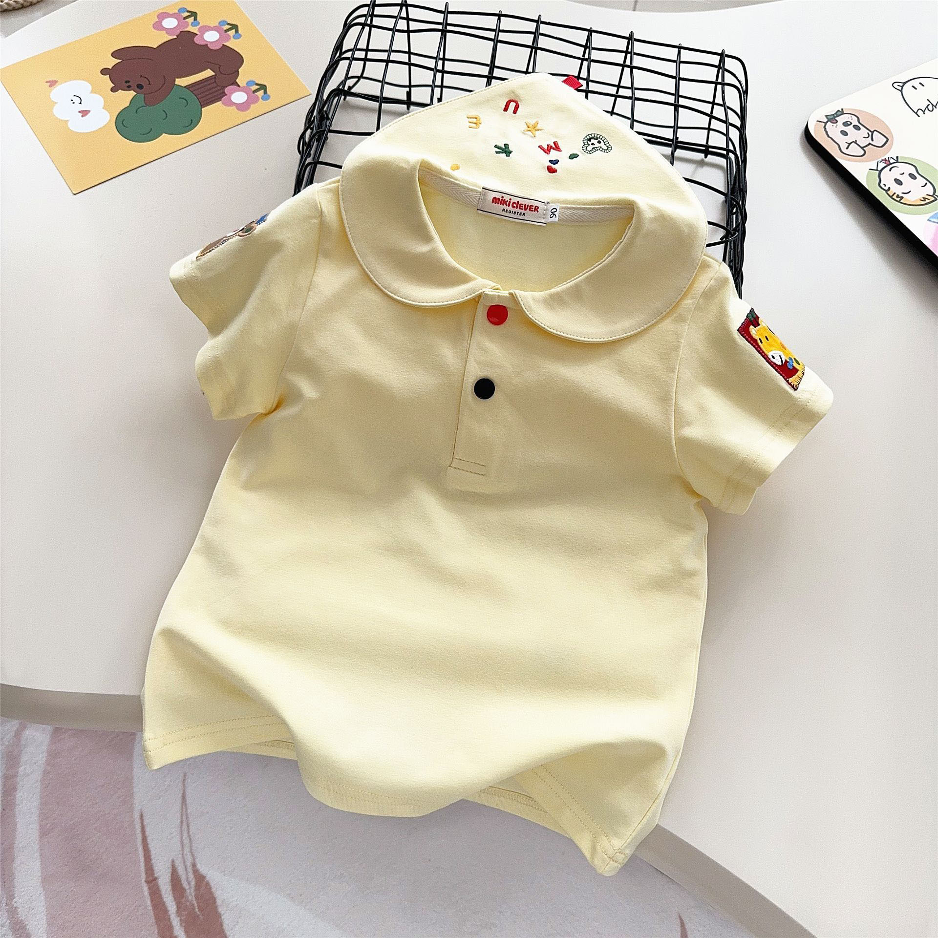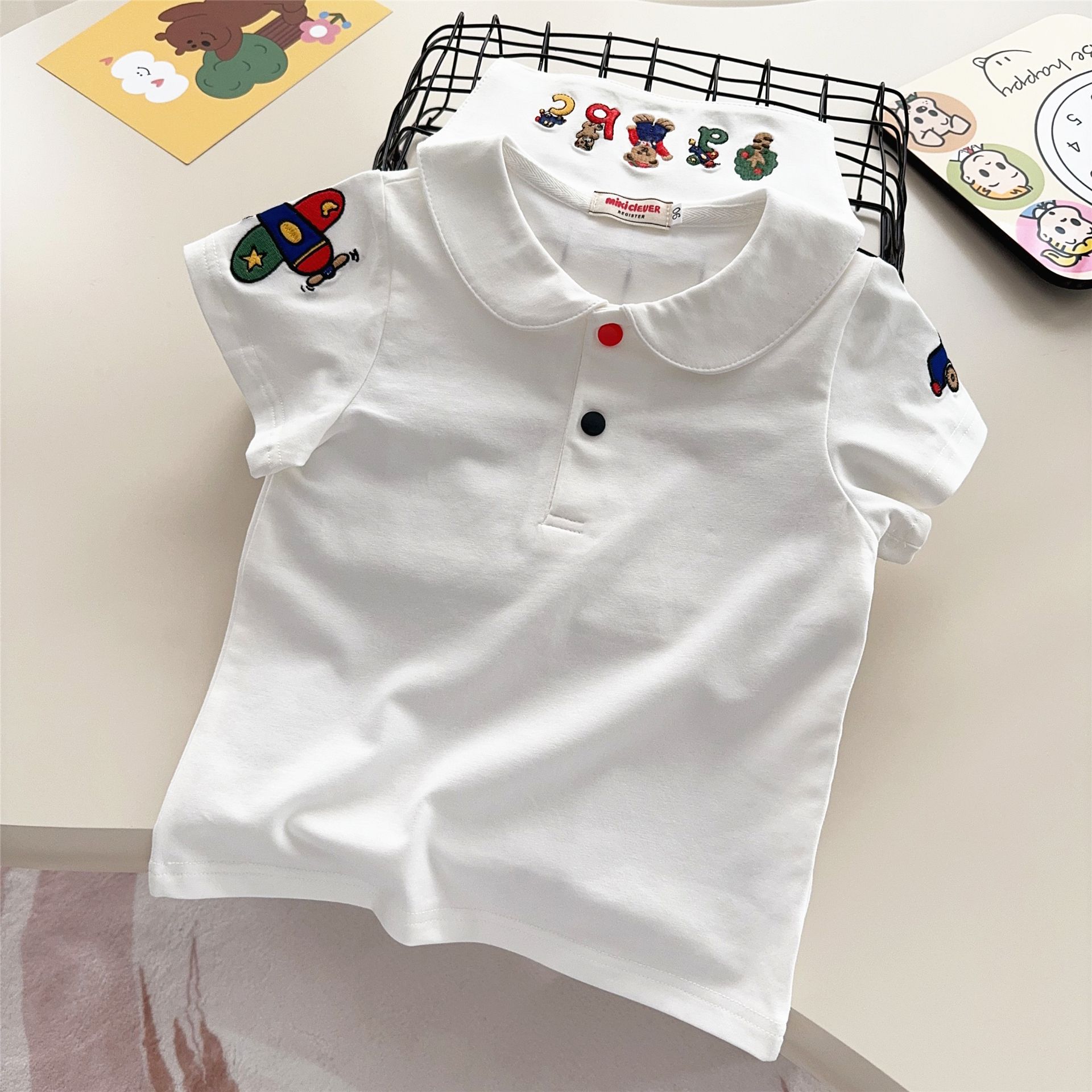 남자와 여자 클래스 면베이스 셔츠 톱 25 여름 어린이 내부 만화 자수 셔츠 인형 칼라 티셔츠 2532스토어 가기