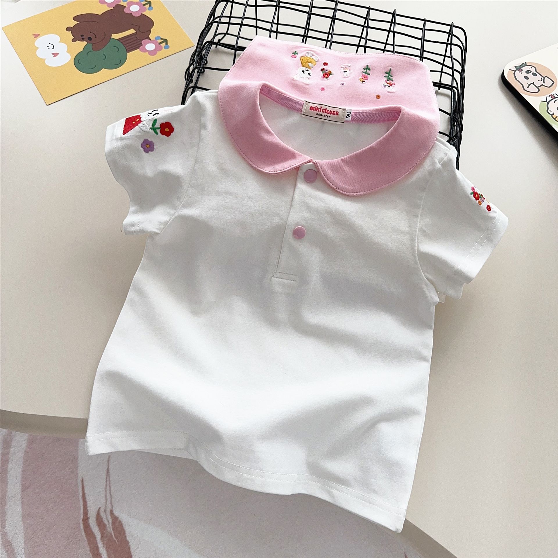 남자와 여자 클래스 면베이스 셔츠 톱 25 여름 어린이 내부 만화 자수 셔츠 인형 칼라 티셔츠 2532