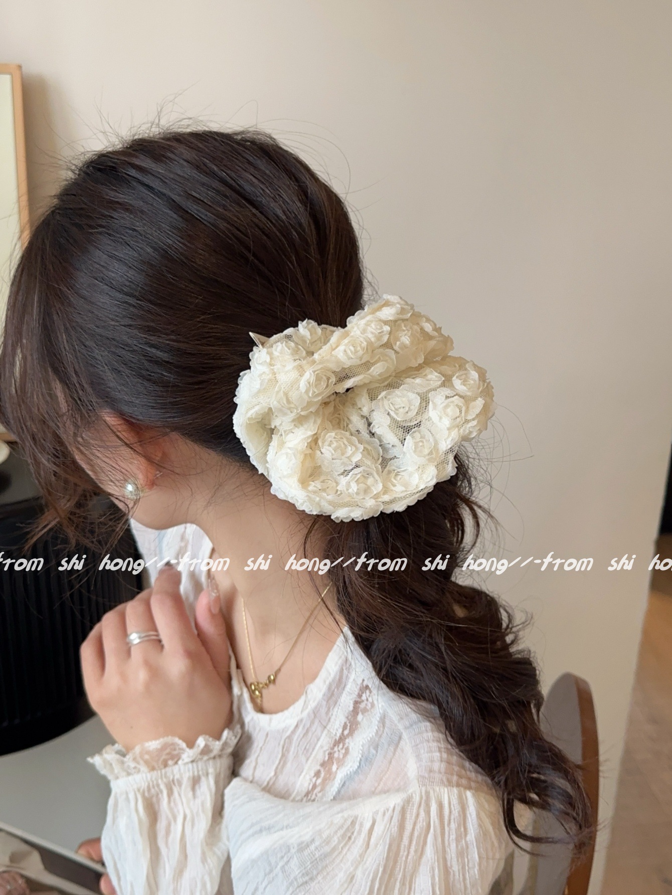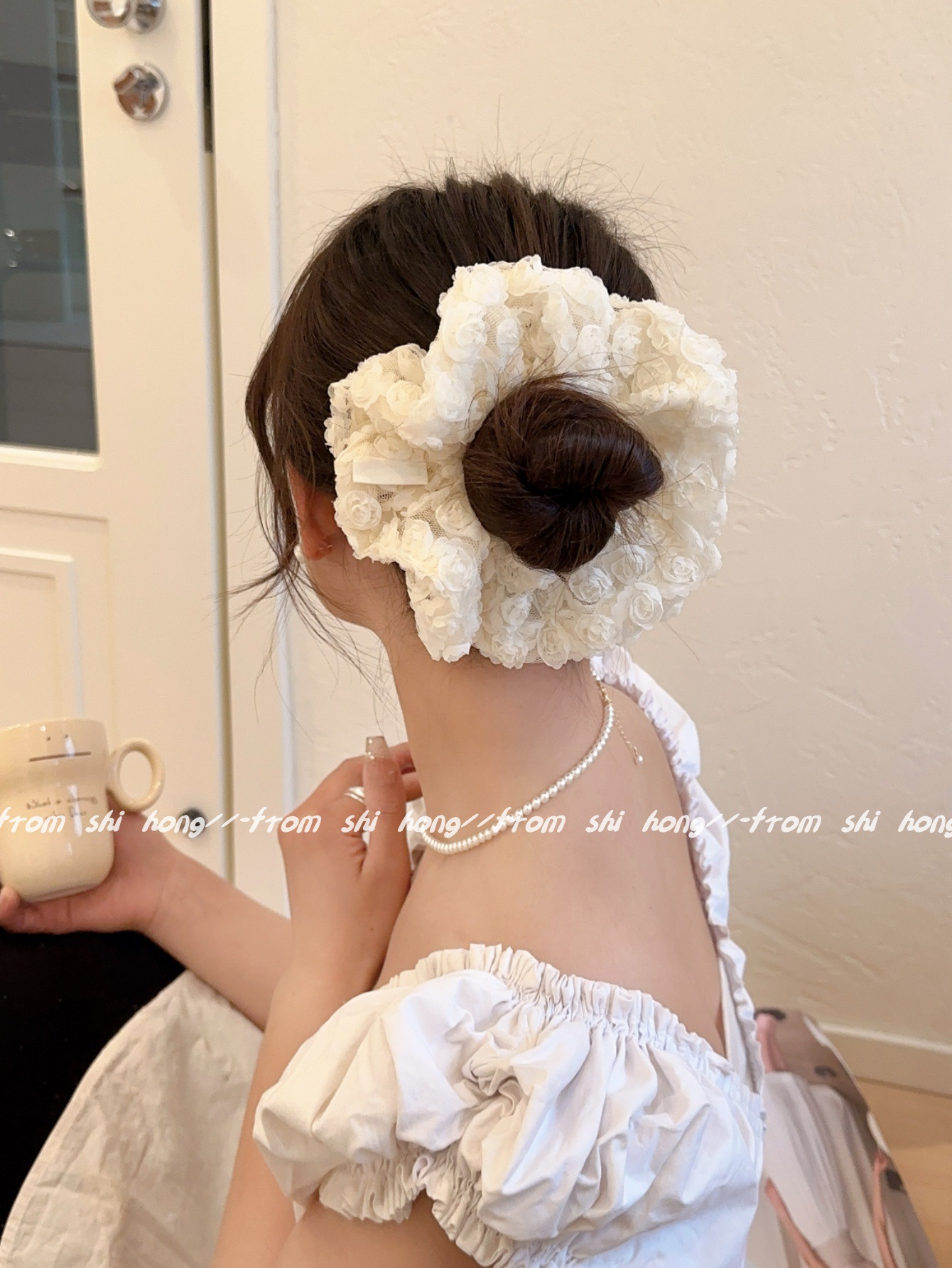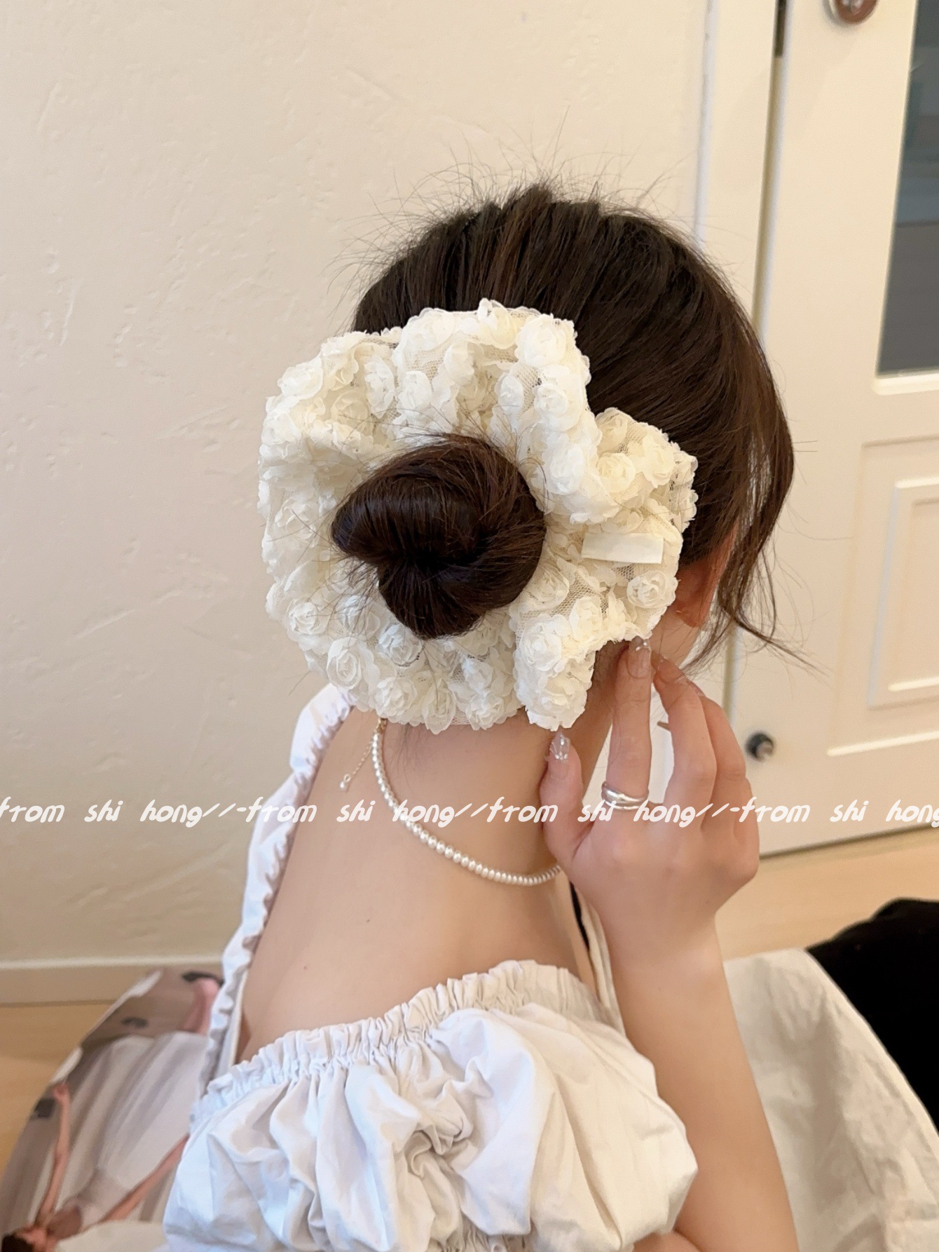 한국 스타일 화이트 달빛 꽃 3 차원 절묘한 대형 장내 헤어 링 레이스 빈티지 메쉬 헤어 로프 올 매치 볼 헤어 액세서리