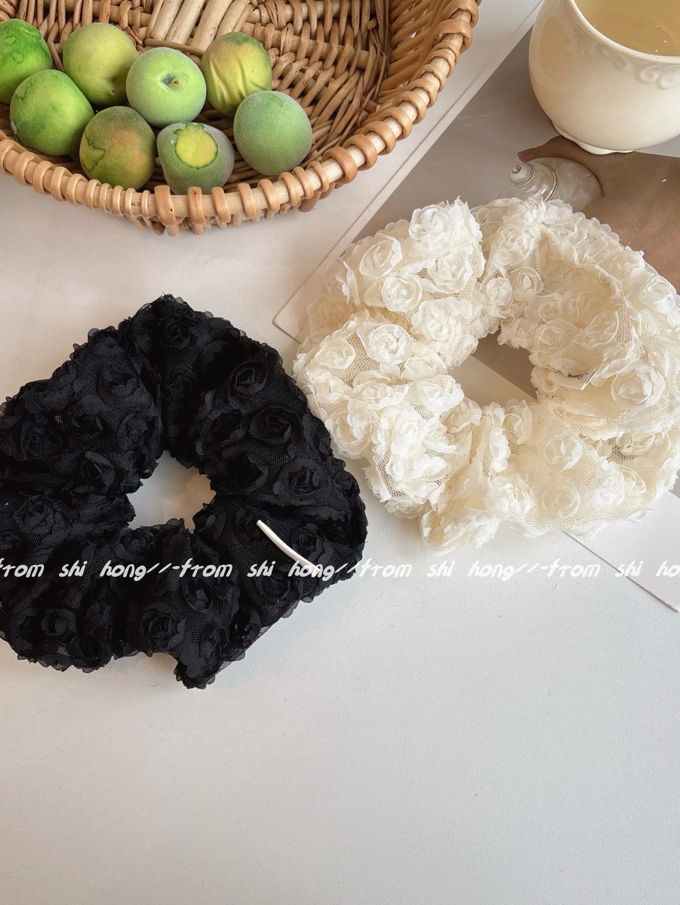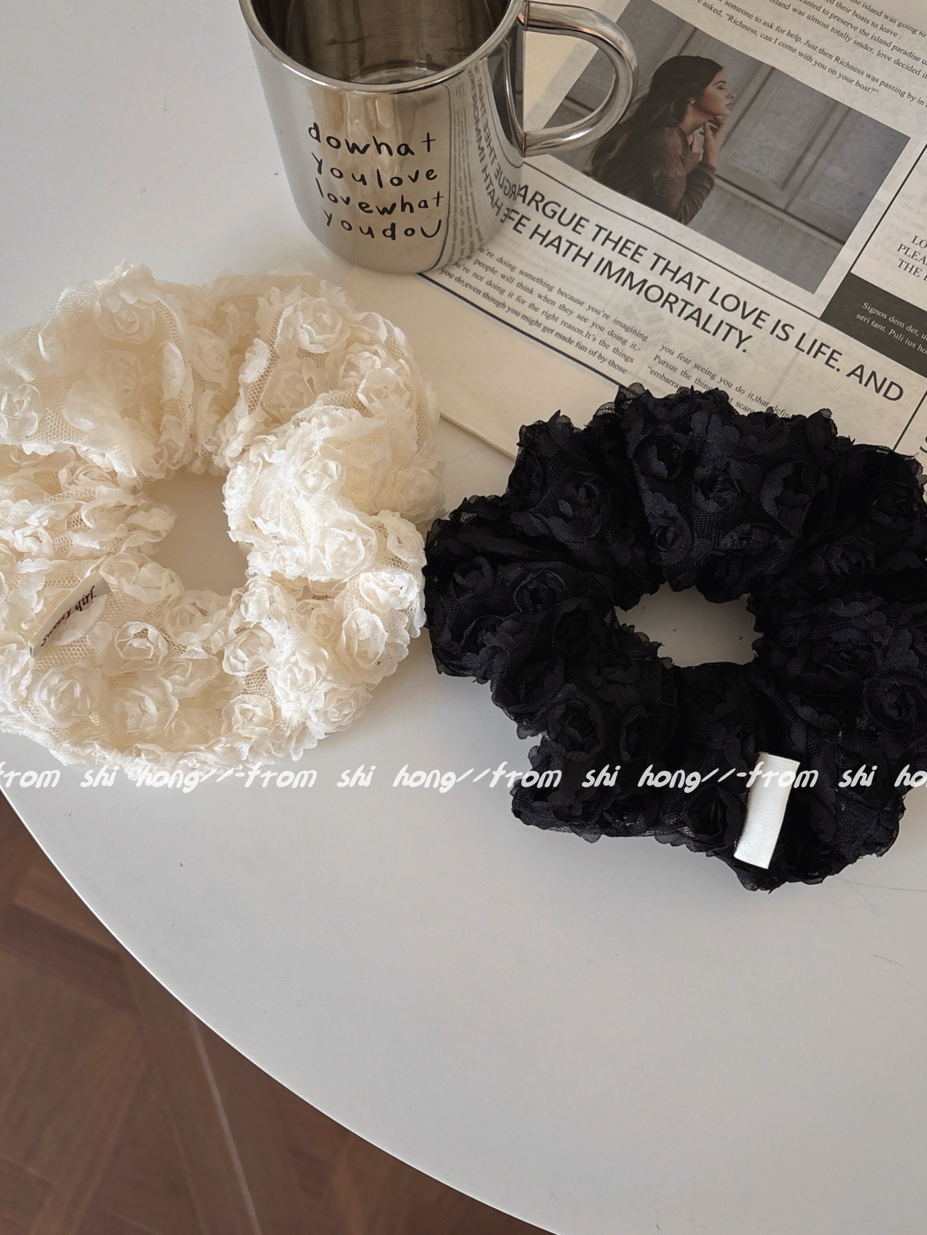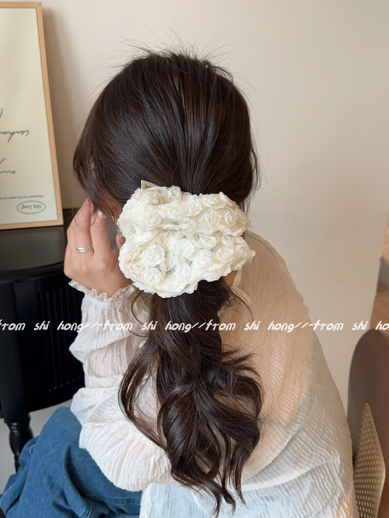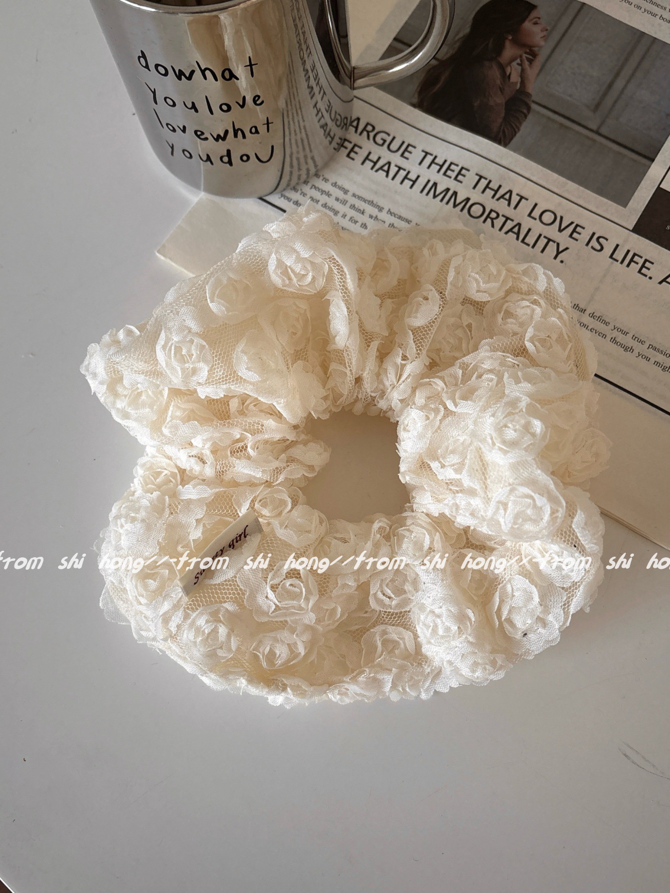 한국 스타일 화이트 달빛 꽃 3 차원 절묘한 대형 장내 헤어 링 레이스 빈티지 메쉬 헤어 로프 올 매치 볼 헤어 액세서리