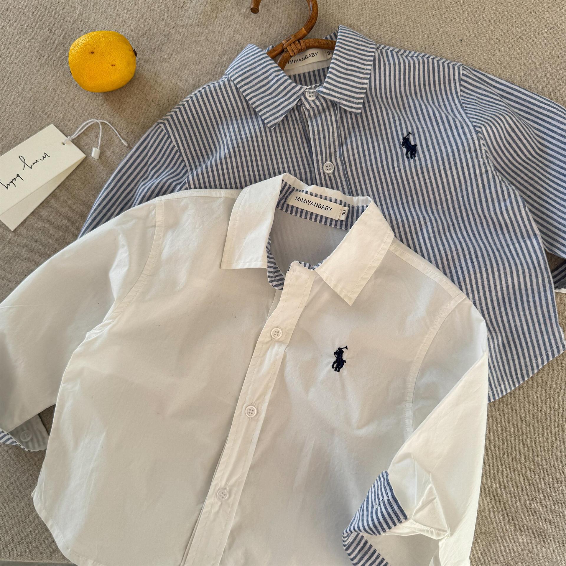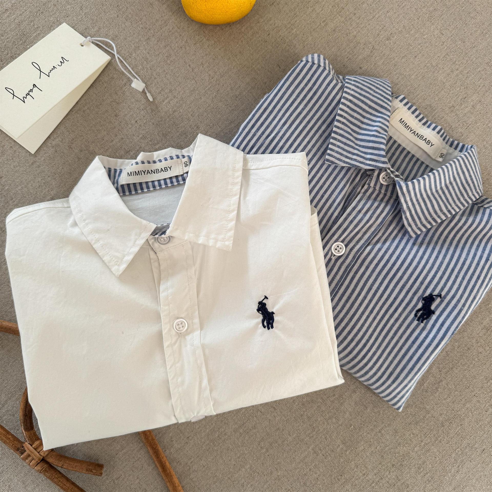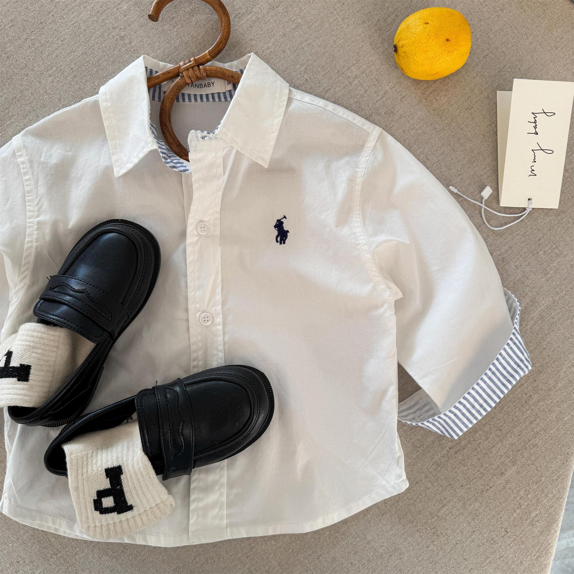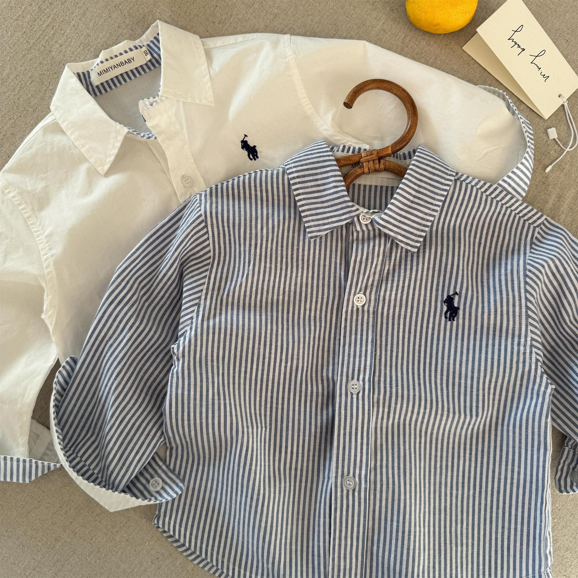 Lin Ma 어린이 줄무늬 셔츠 2025 봄 소년 소녀 긴팔 흰 셔츠 아기 일본 옷깃 어린이 대학 스타일스토어 가기