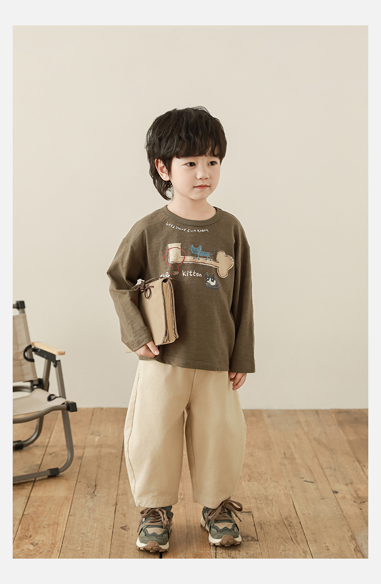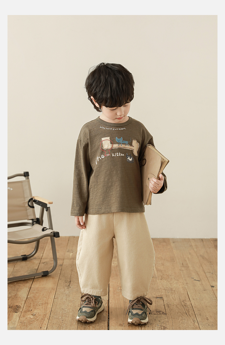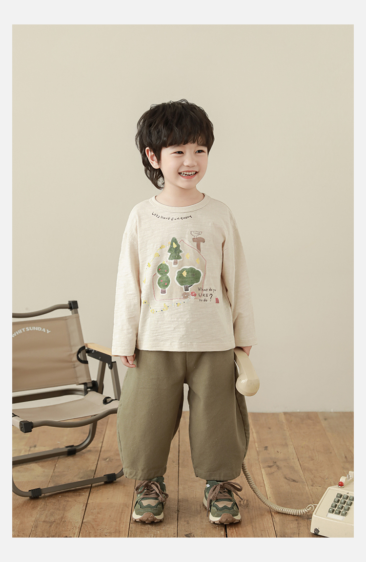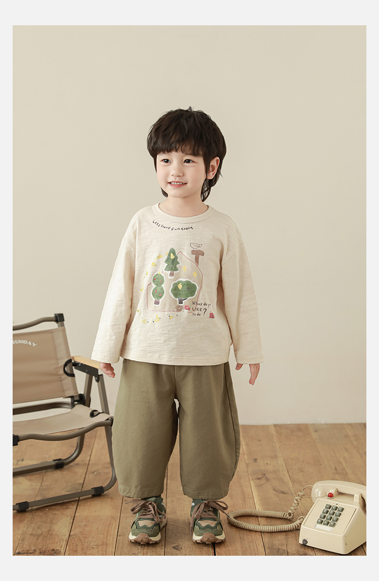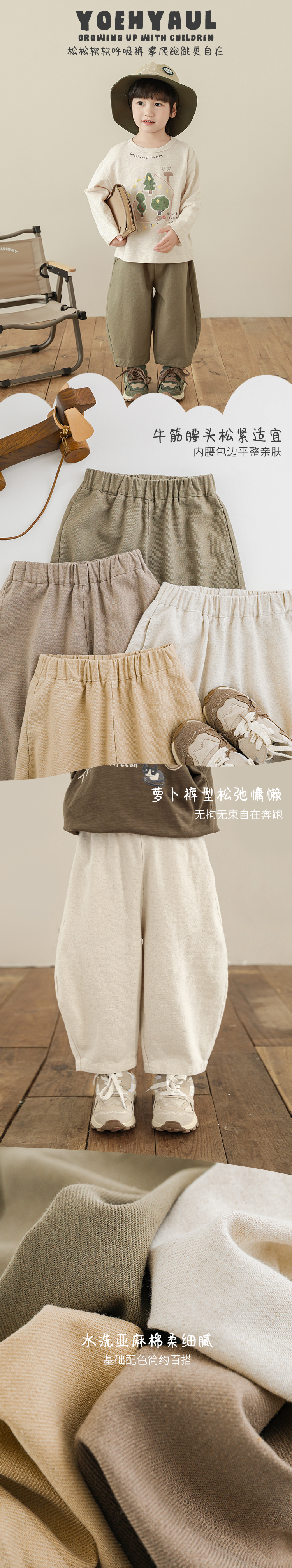 Wuri Bos Boys 2025 봄 새로운 간단한 일본 당근 바지 유행 느슨한 아이들 유행 바지스토어 가기