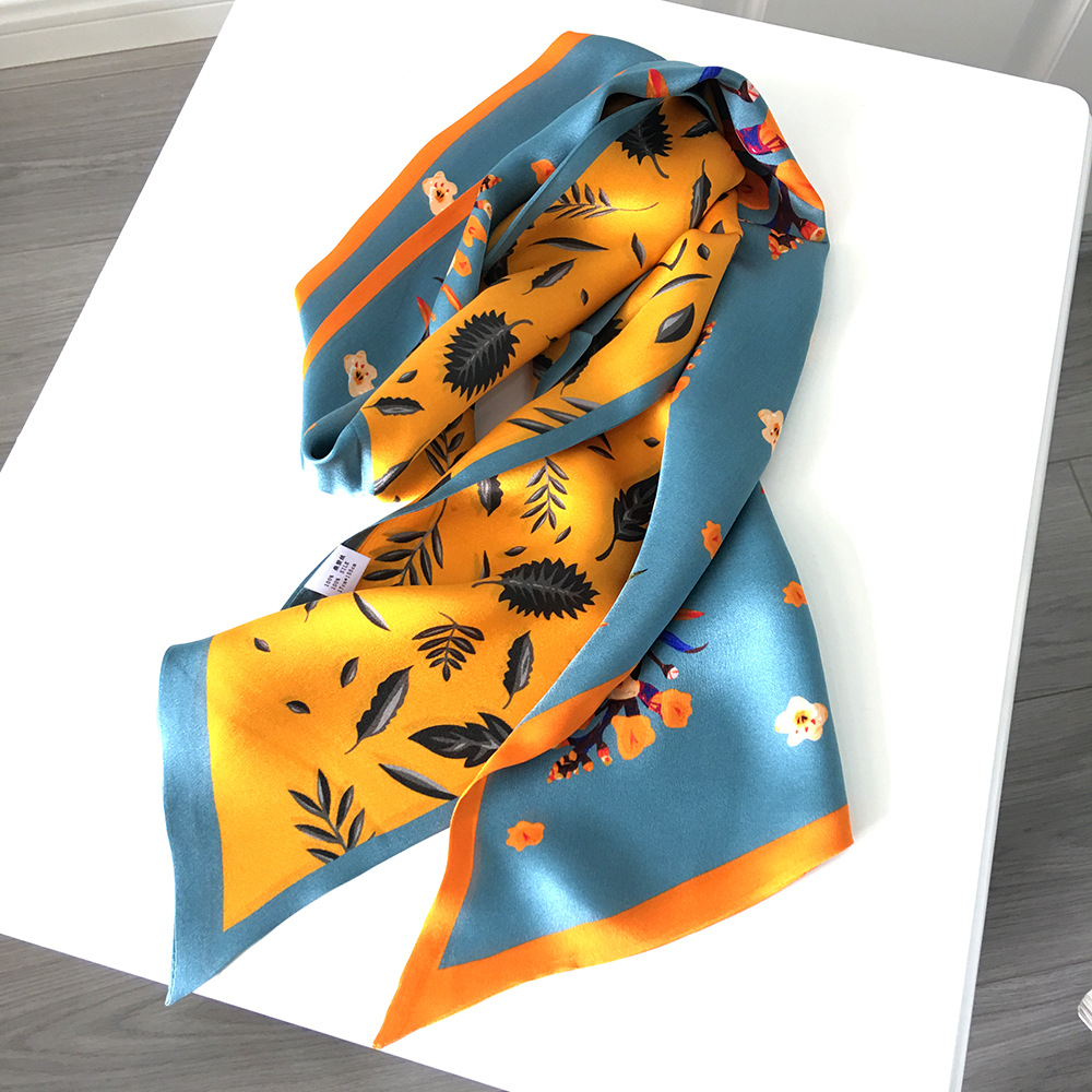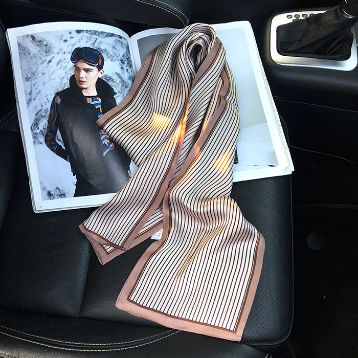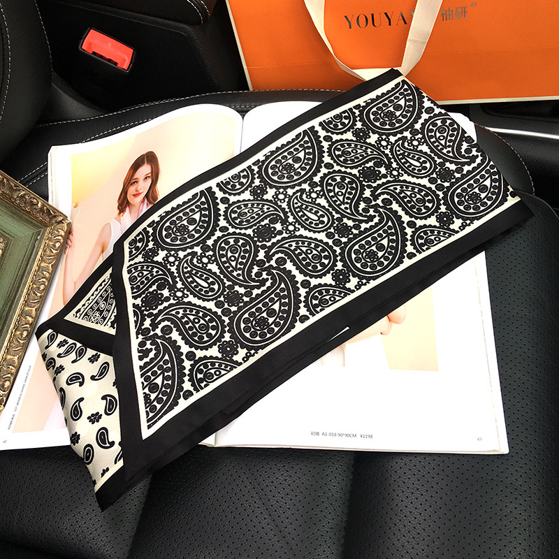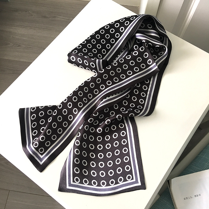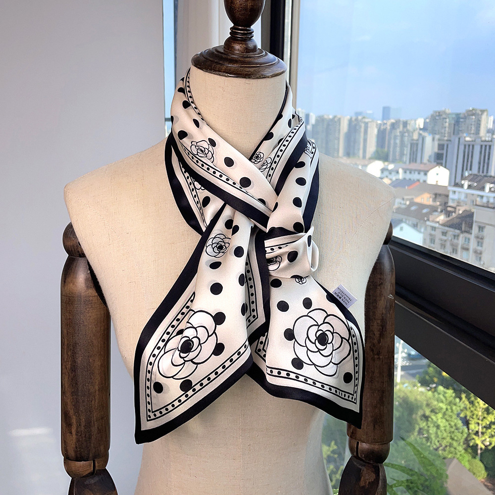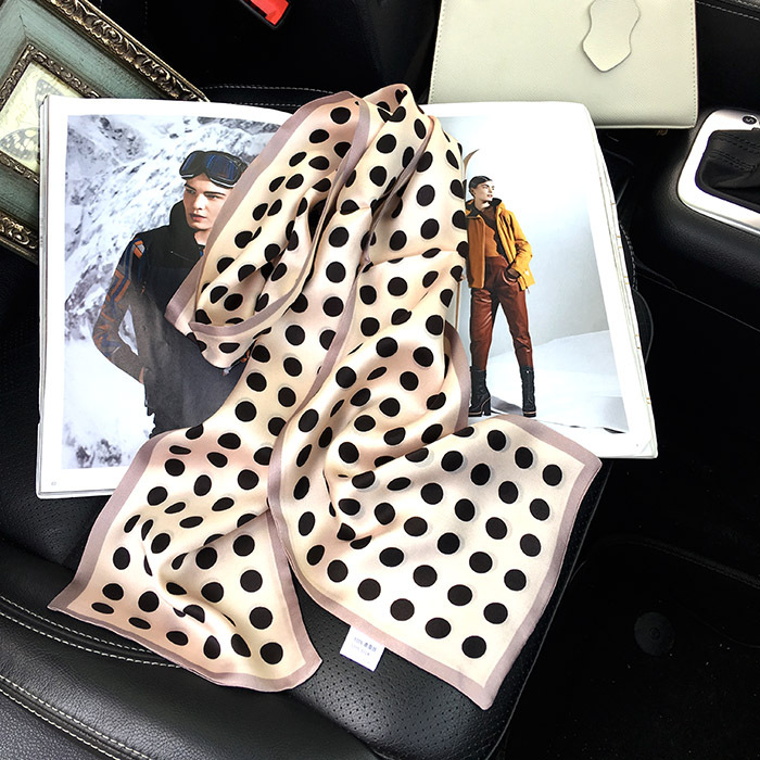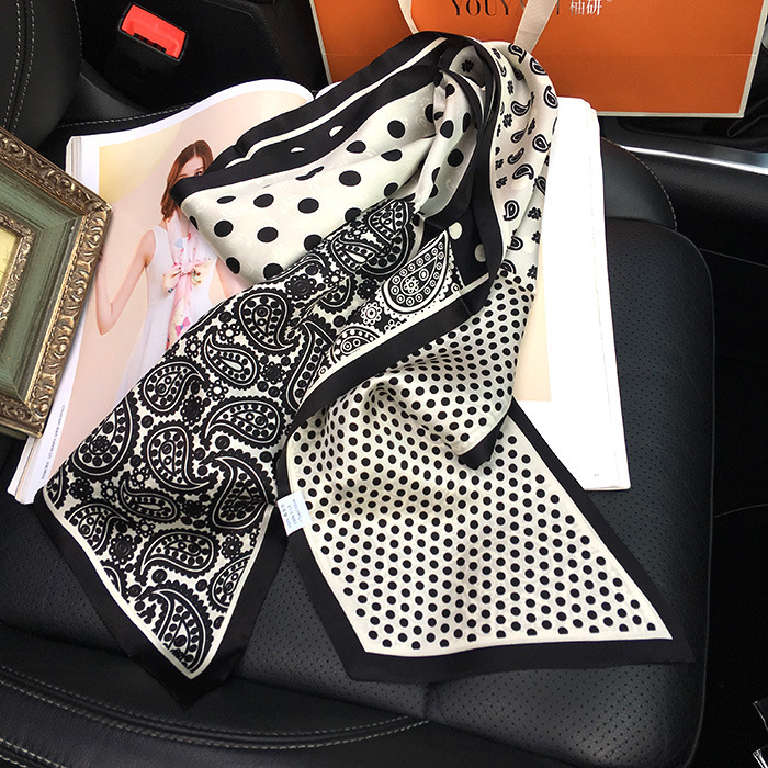 의류 액세서리 긴 실크 스카프 매우 간단한 흑백 웨이브 도트 캐슈 멀 베리 실크 베벨 여성용 새틴 더블 레이어 스카프