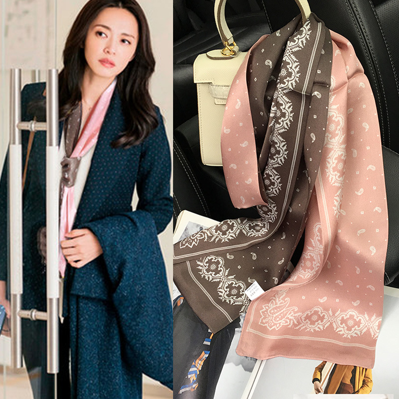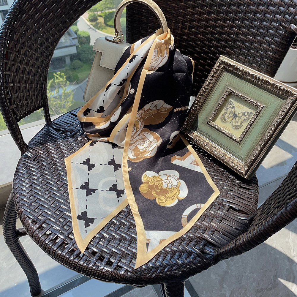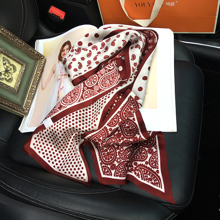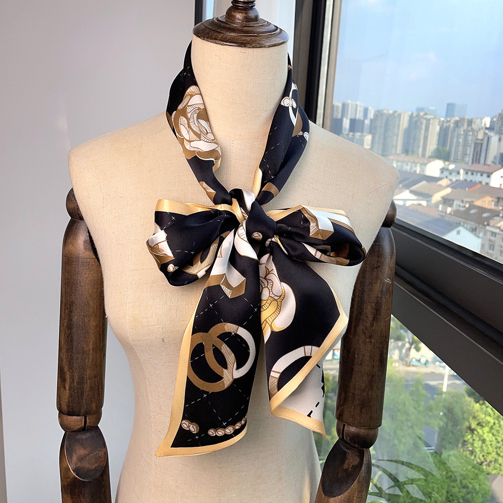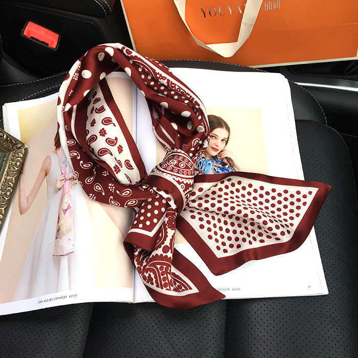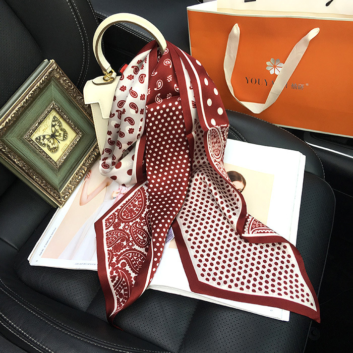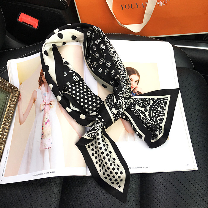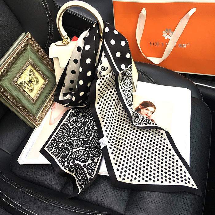 의류 액세서리 긴 실크 스카프 매우 간단한 흑백 웨이브 도트 캐슈 멀 베리 실크 베벨 여성용 새틴 더블 레이어 스카프스토어 가기