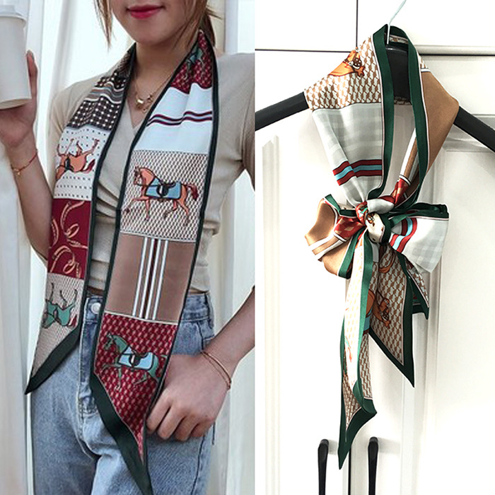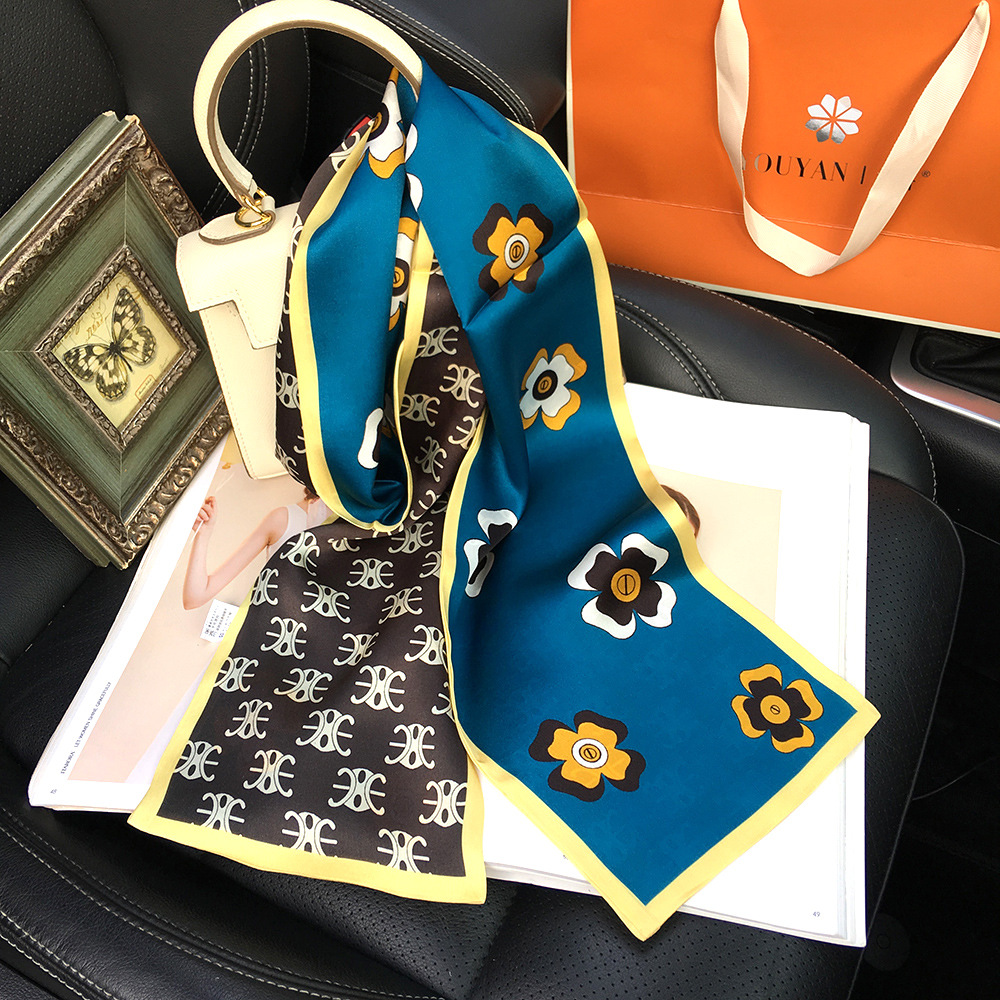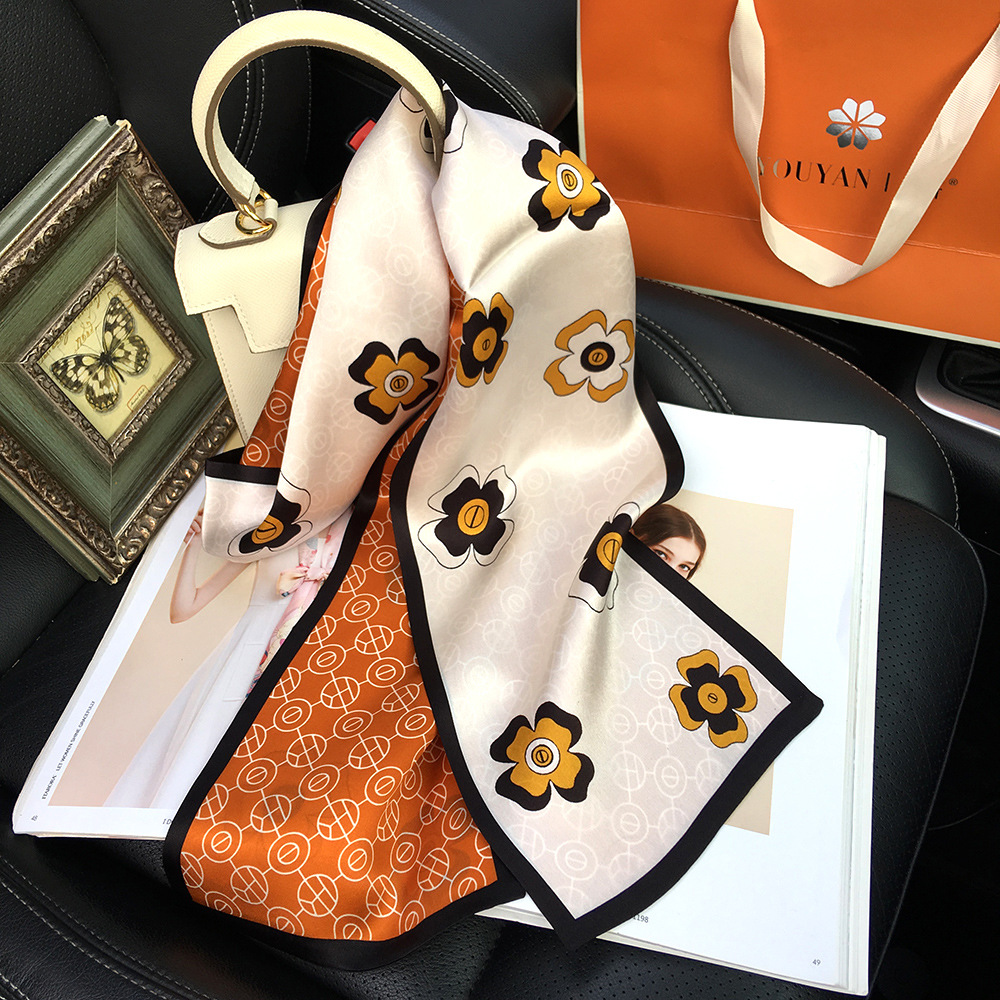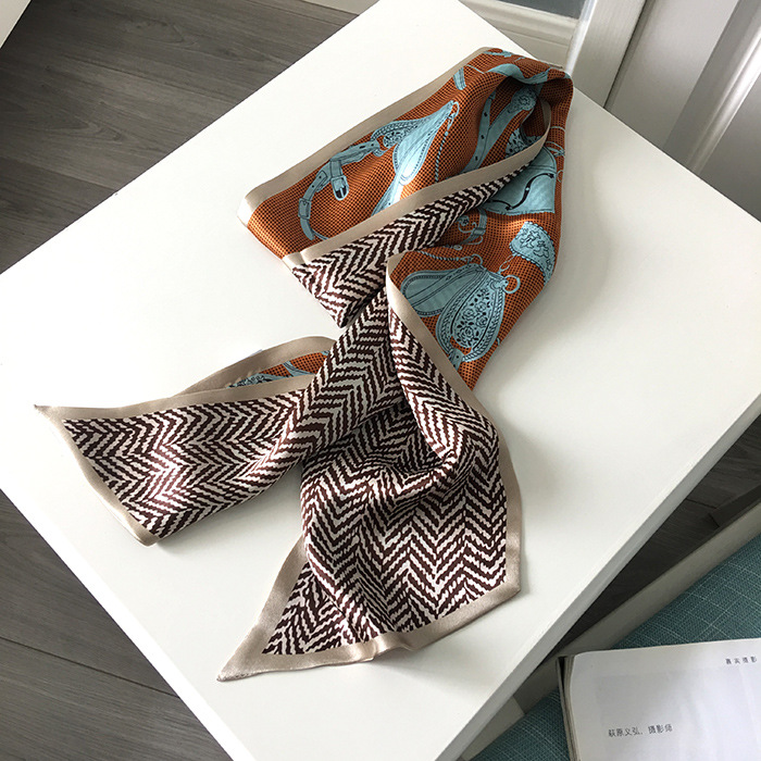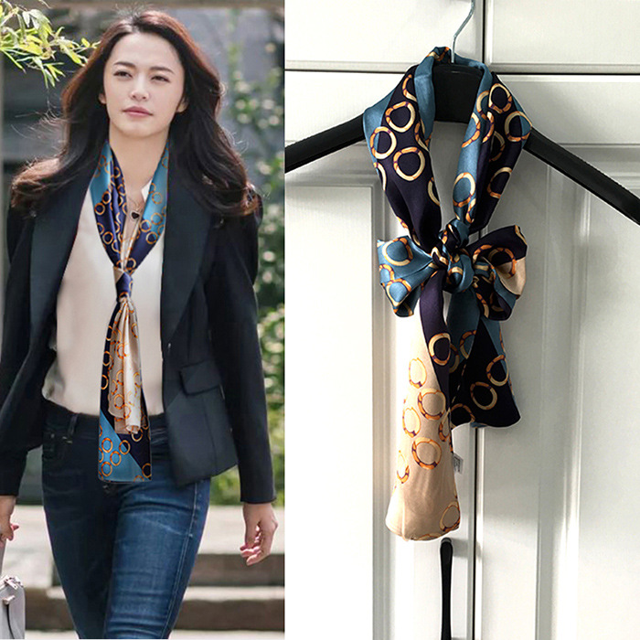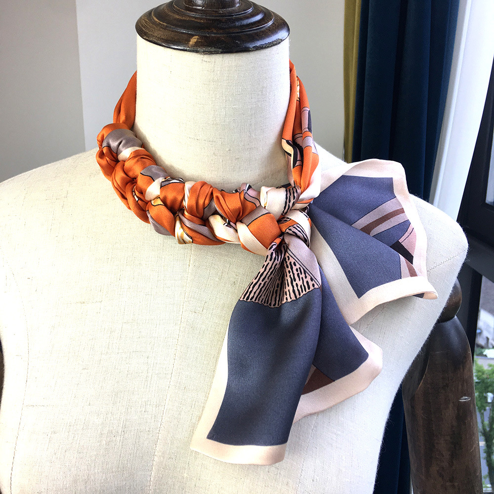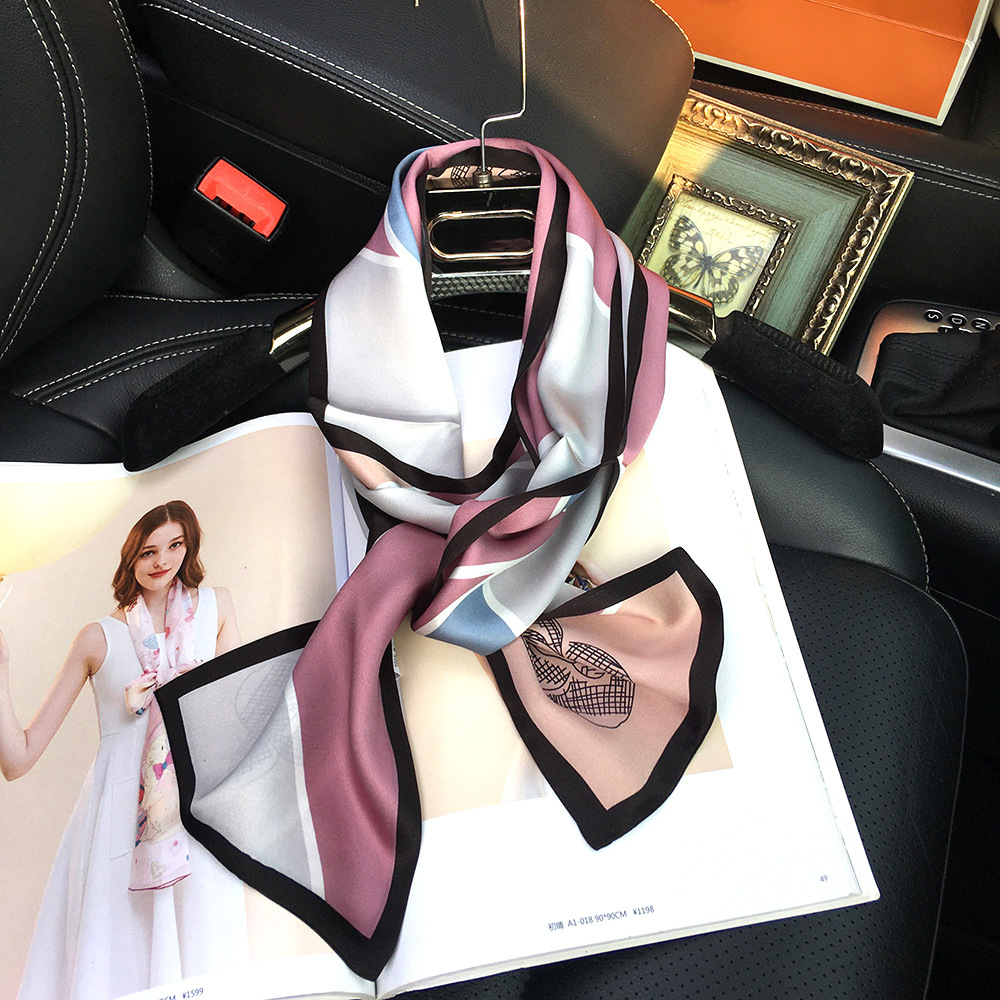 의류 액세서리 긴 실크 스카프 매우 간단한 흑백 웨이브 도트 캐슈 멀 베리 실크 베벨 여성용 새틴 더블 레이어 스카프스토어 가기