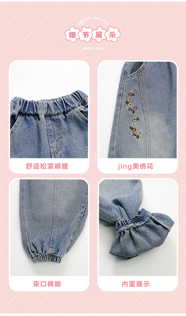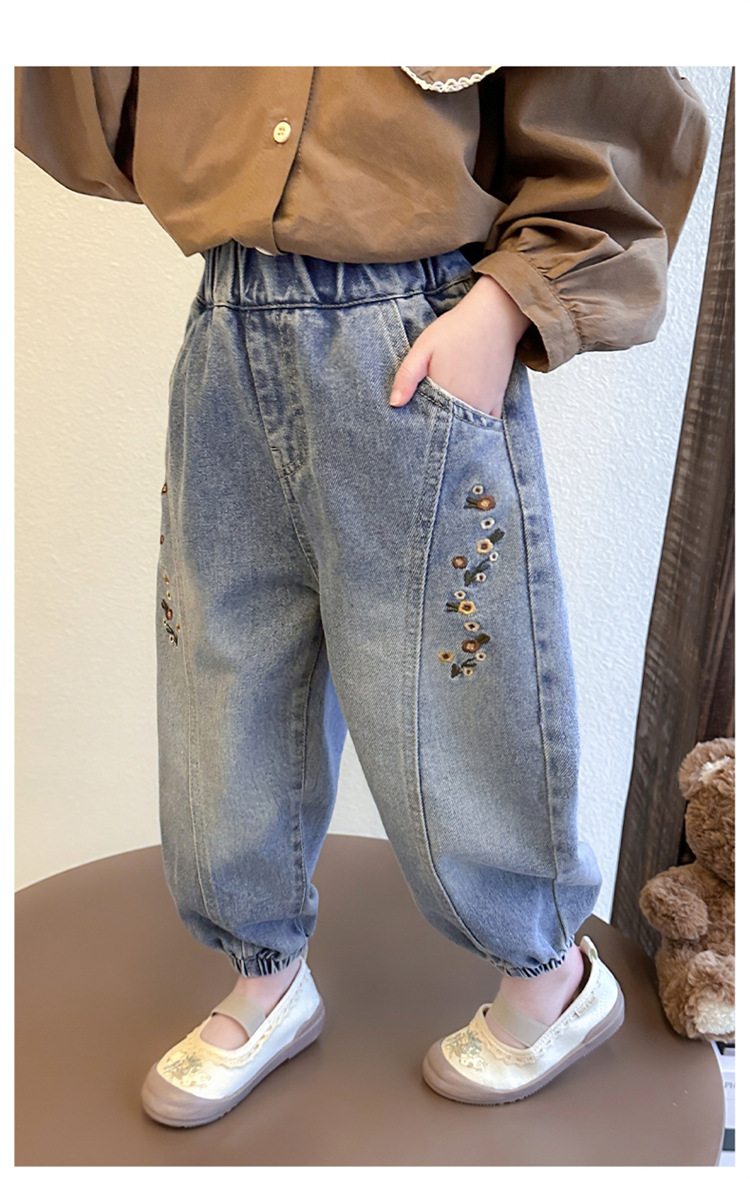 소녀의 자수 청바지 봄 2025 새로운 서양 스타일 올 매치 아기 소녀의 봄 유행 캐주얼 다리 바지스토어 가기
