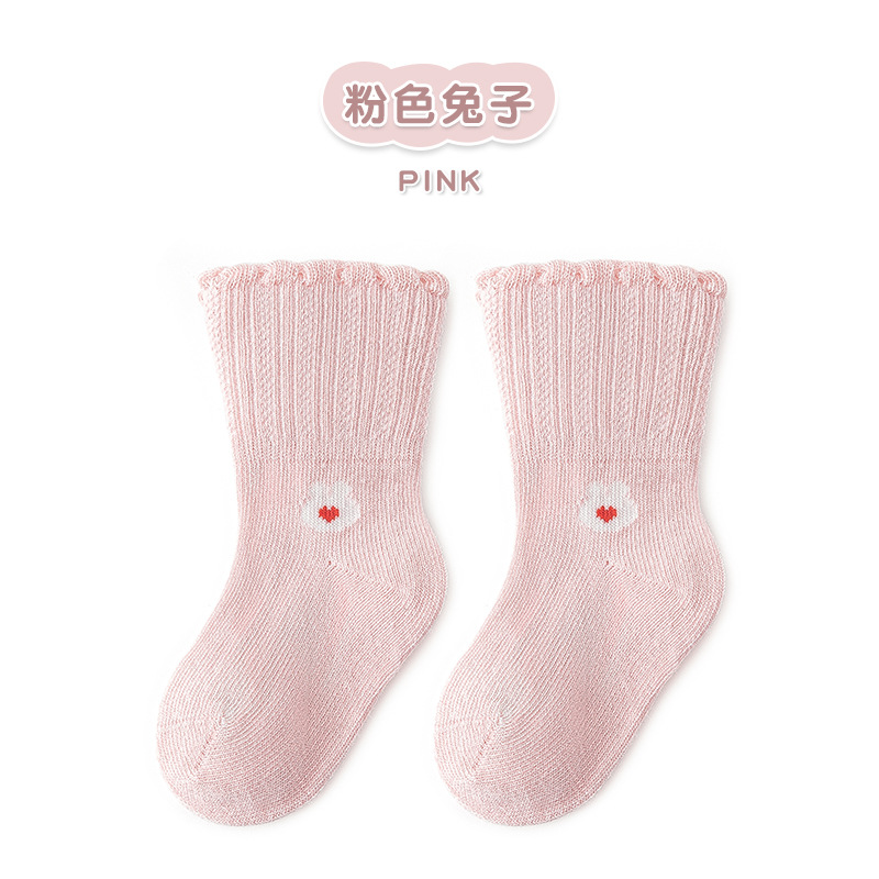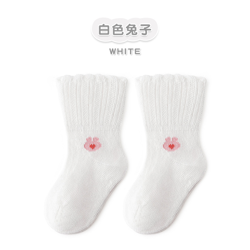 25 봄 어린이 양말 클래스 A 빗 코튼 베이비 양말 만화 토끼 플립 업 양말 느슨한 레이스 코튼 양말 신생아