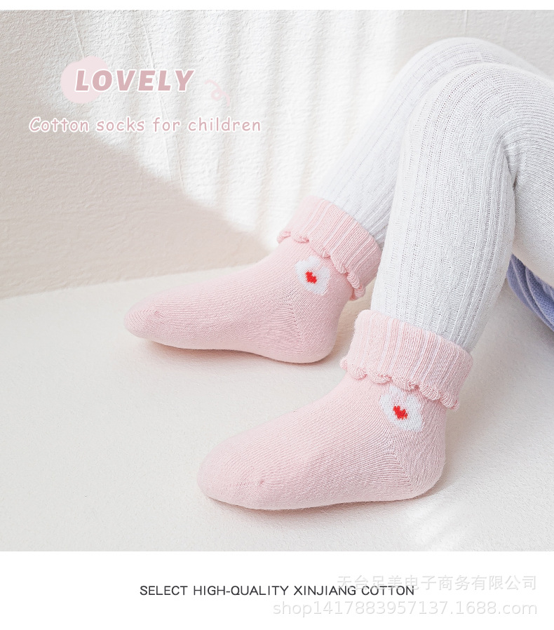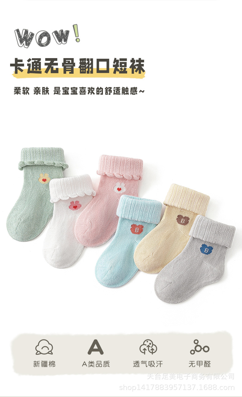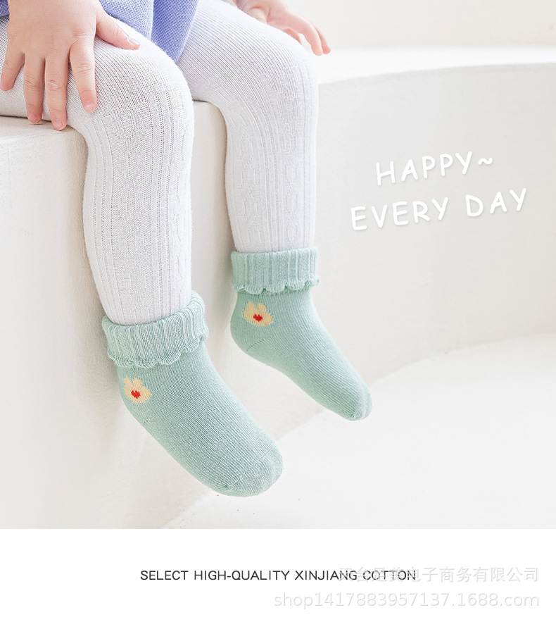 25 봄 어린이 양말 클래스 A 빗 코튼 베이비 양말 만화 토끼 플립 업 양말 느슨한 레이스 코튼 양말 신생아스토어 가기