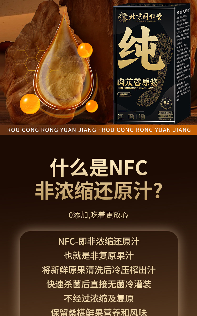 베이징 Tongrentang Cistanche 원유 액체 Cistanche 원유 주스 신선한 순수 원유 액체 150 ml/box의 엄격한 선택