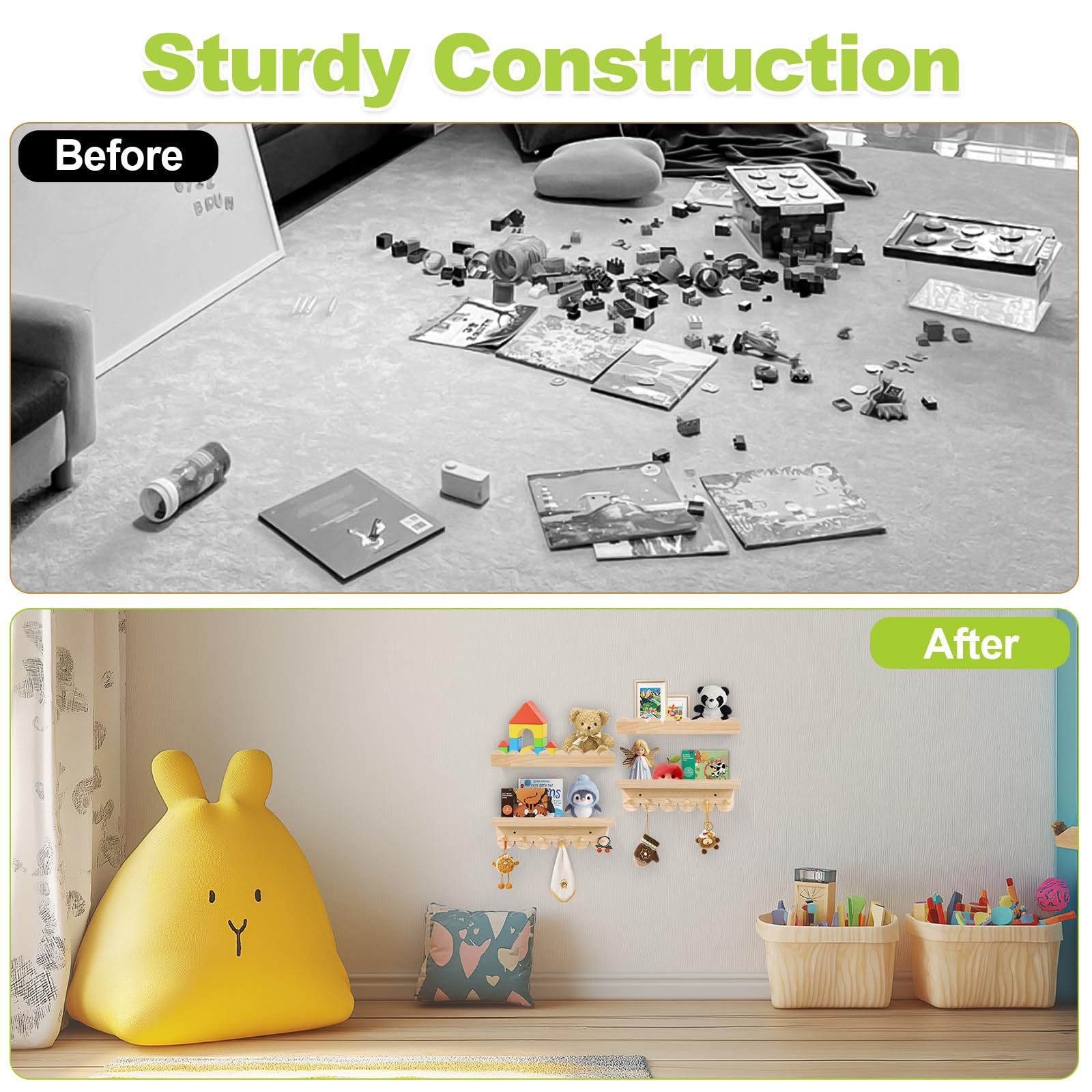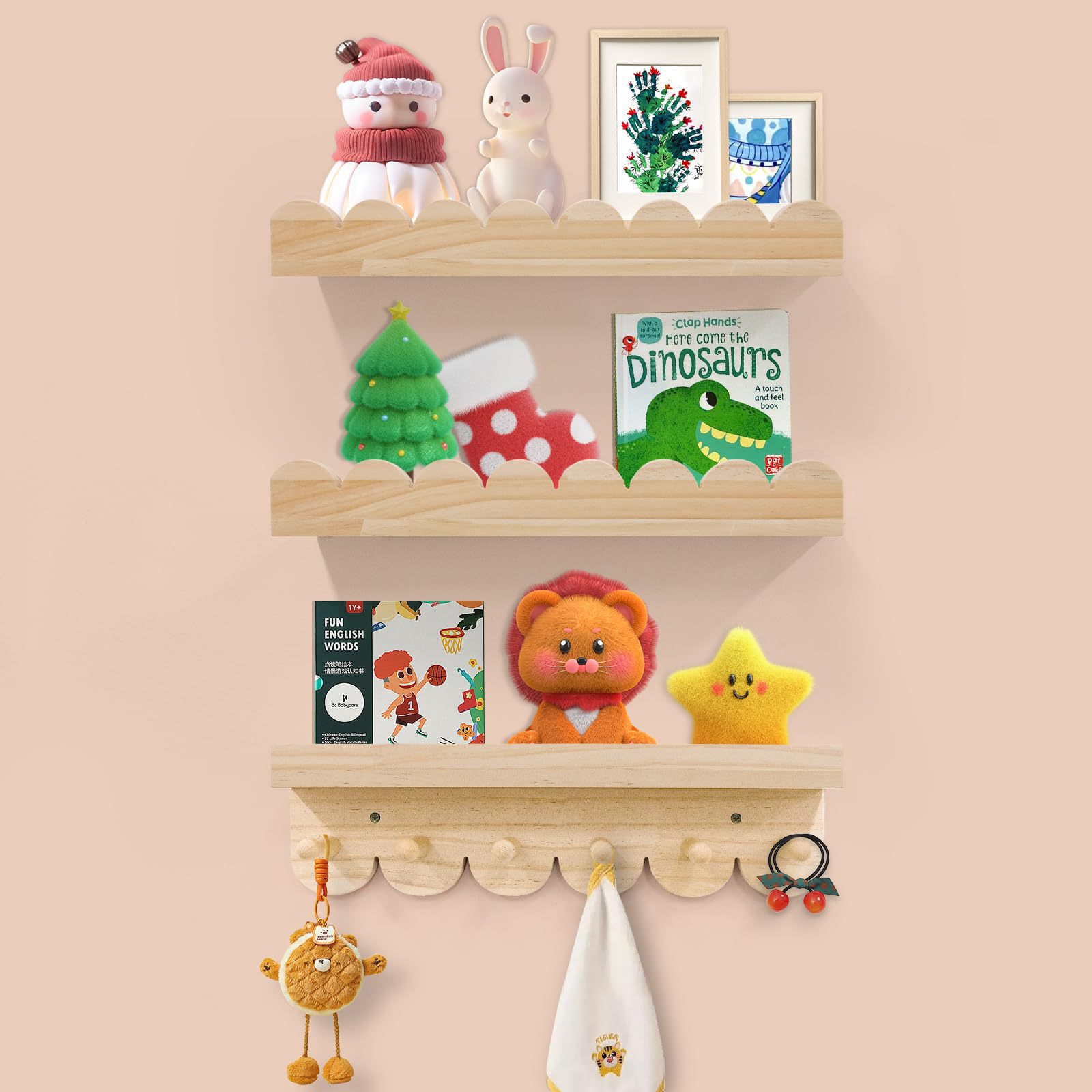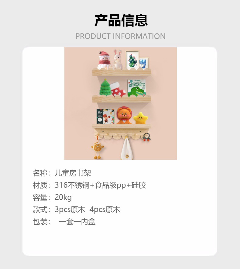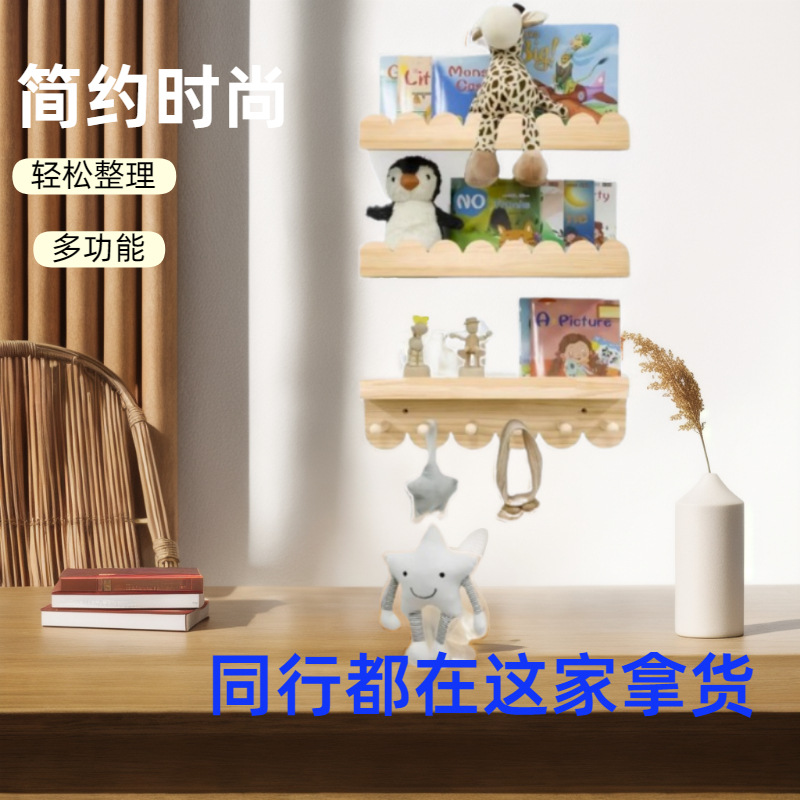 어린이방 벽걸이 그림책 선반 어린이 인형 잡지 책 보관 선반 침실 원목 벽걸이 선반 물결 모양