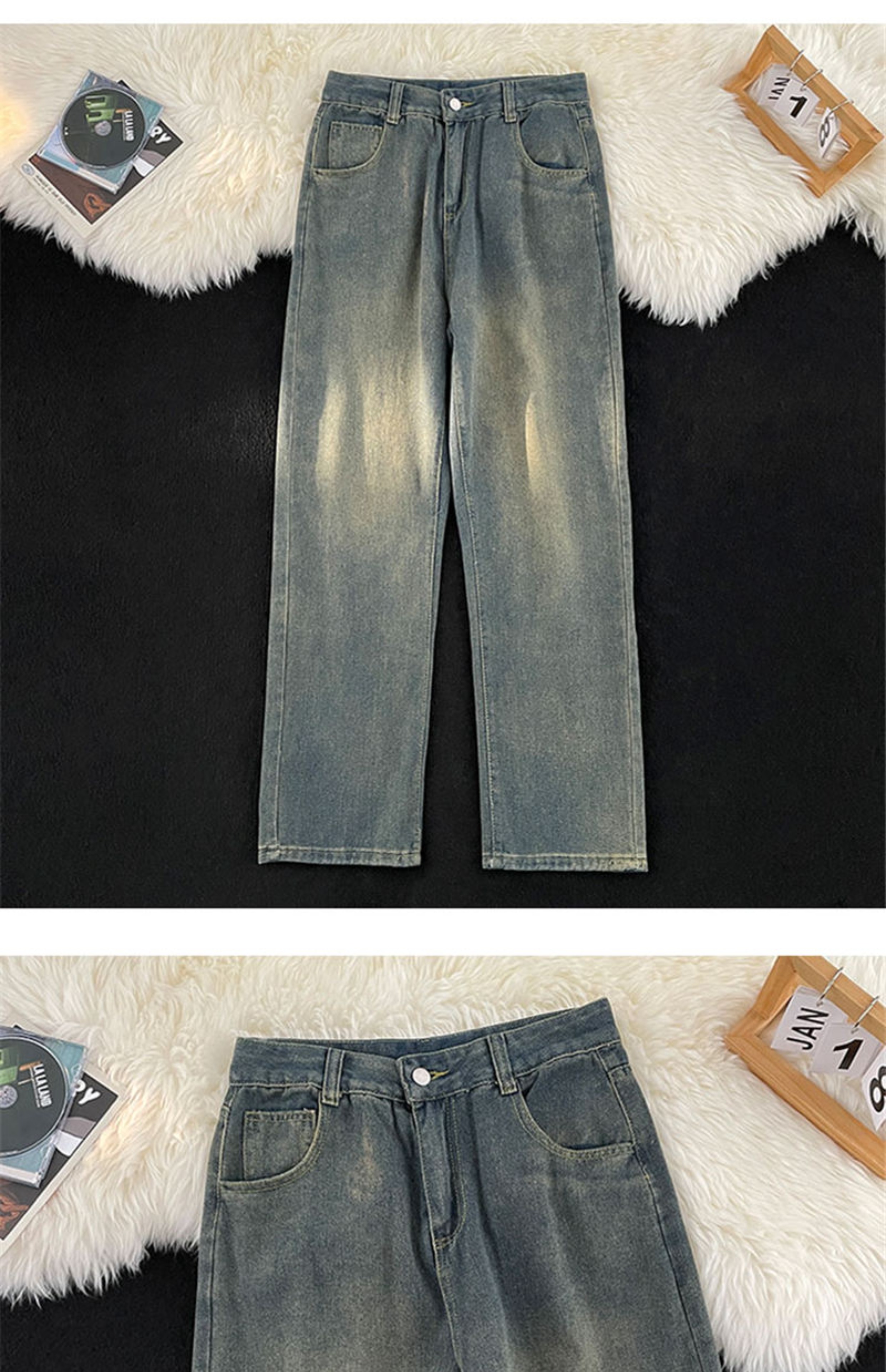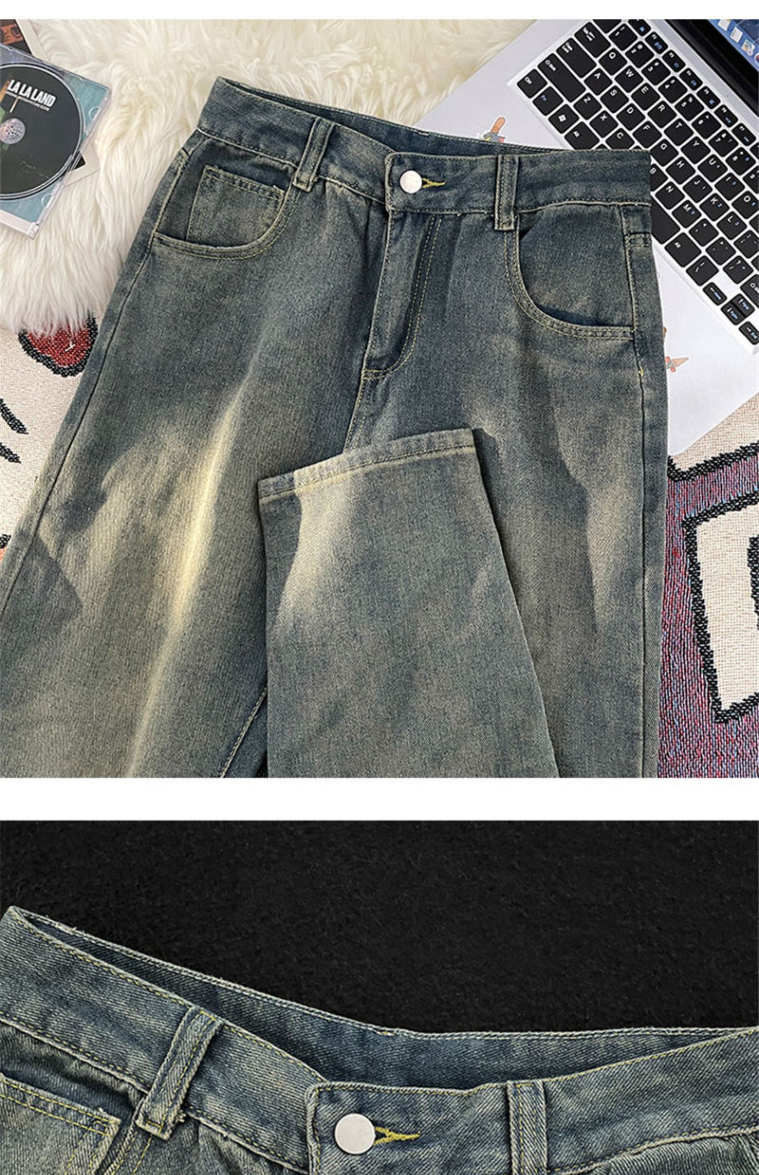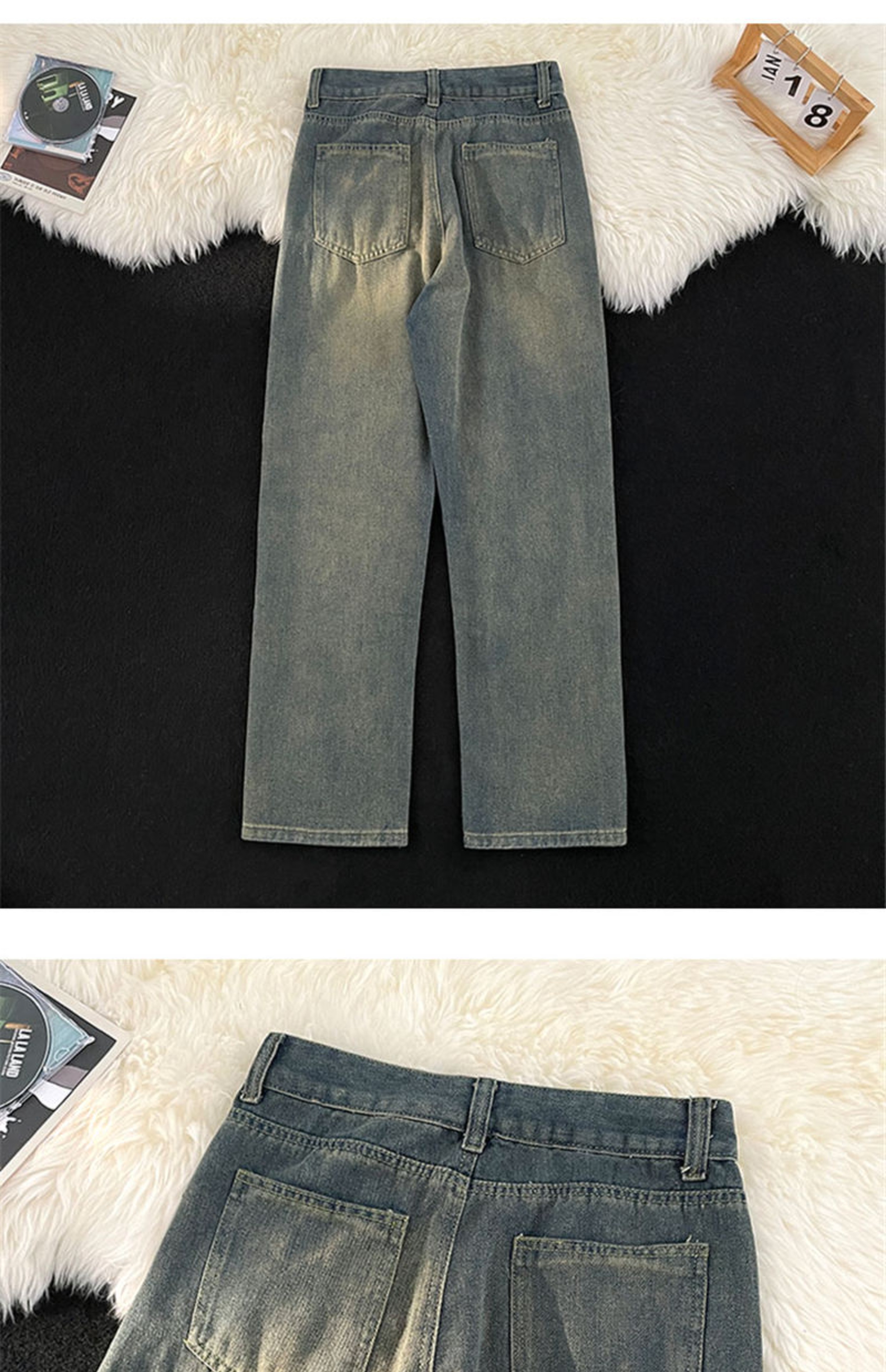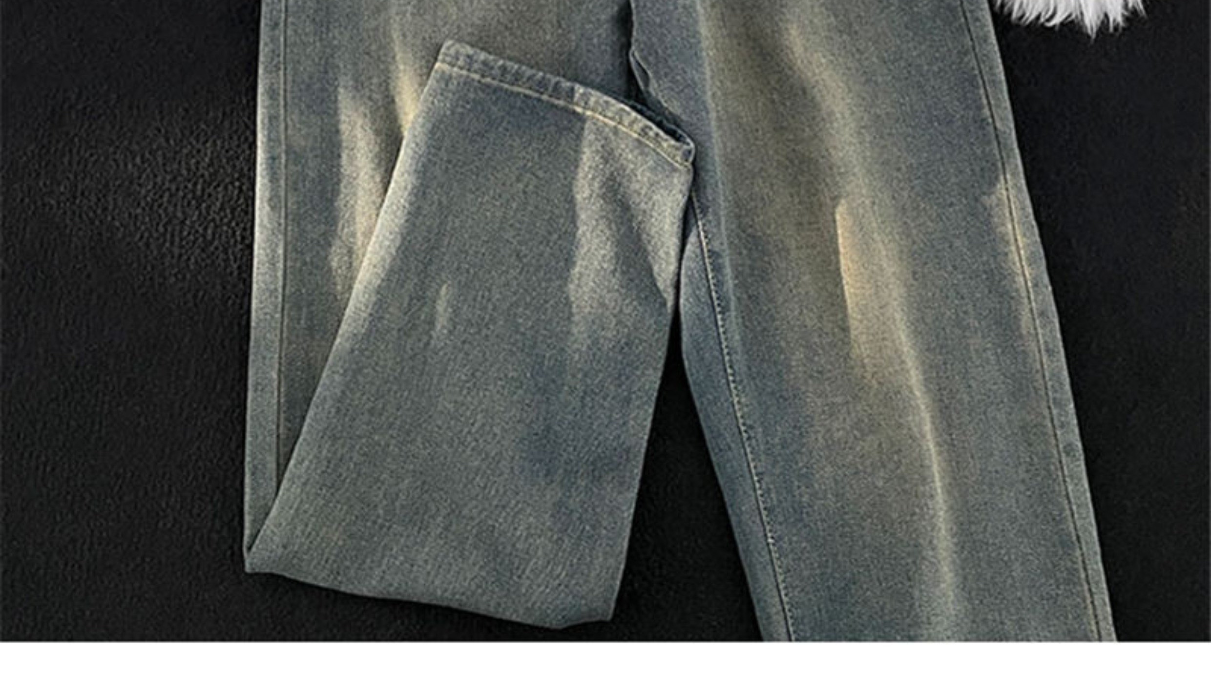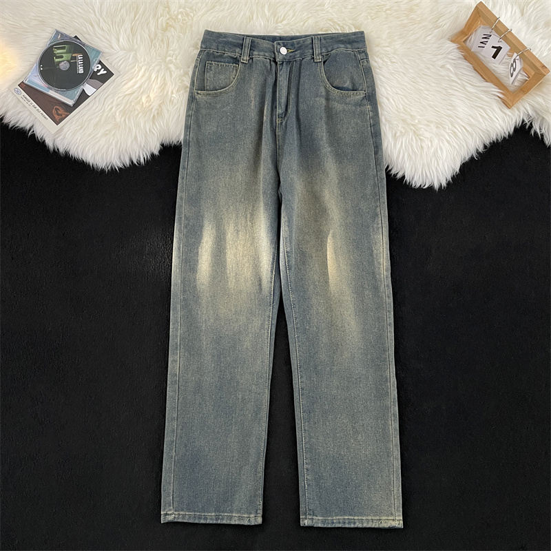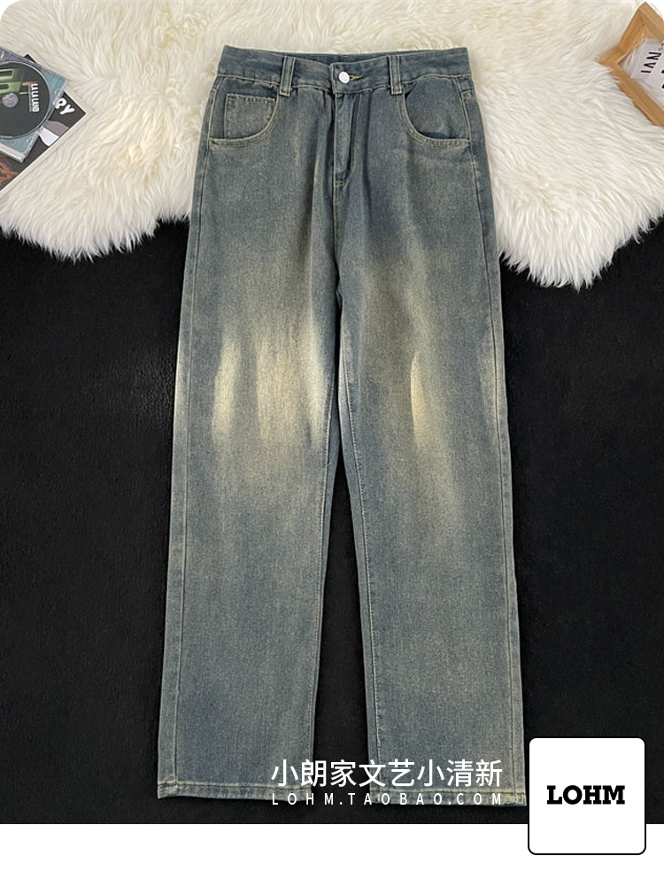 봄과 가을 스트레이트 레그 청바지 남성용 루즈 트렌디 브랜드 캐주얼 일본식 레트로 올매치 올드 와이드 레그 팬츠스토어 가기