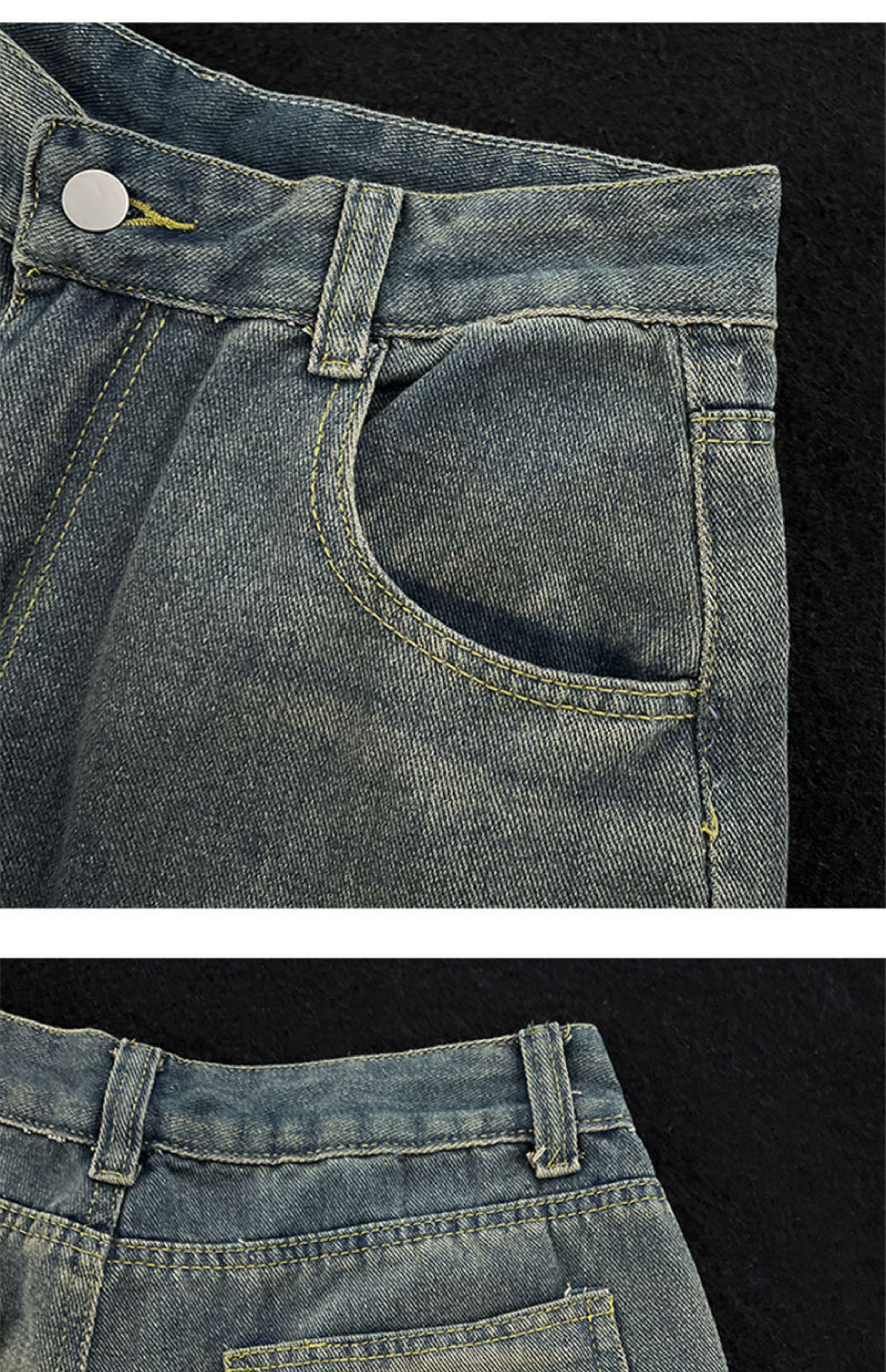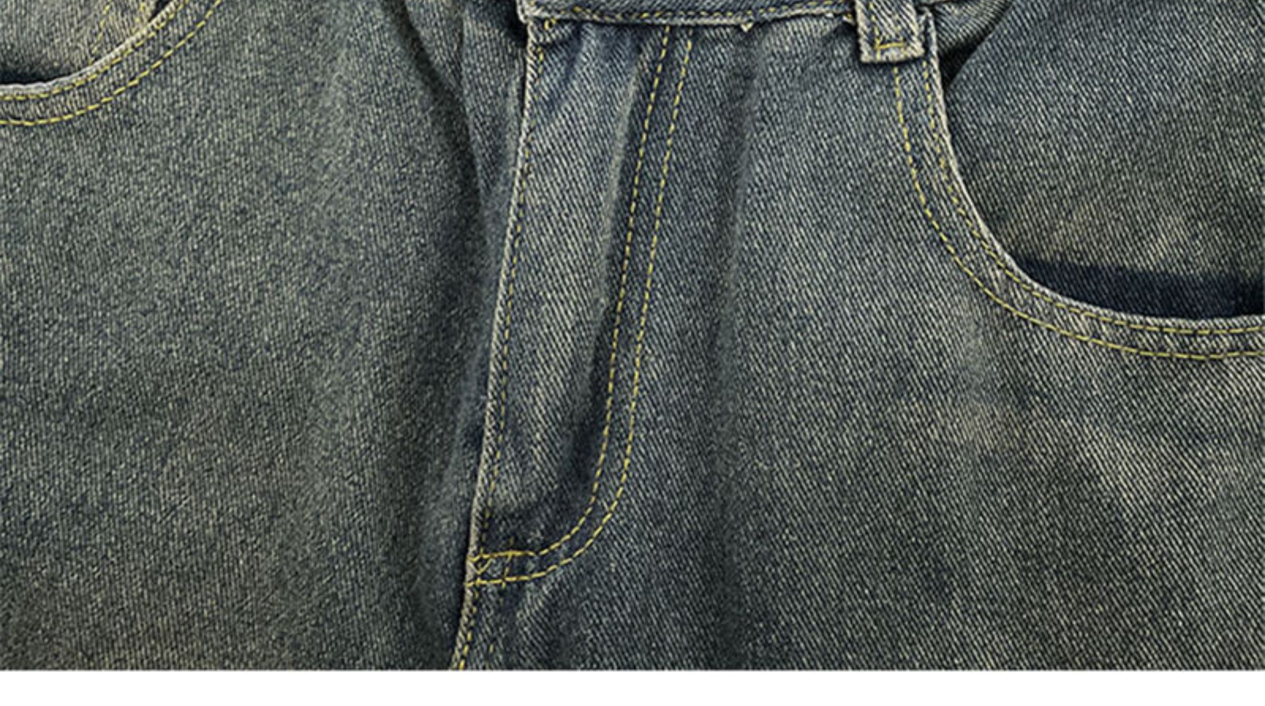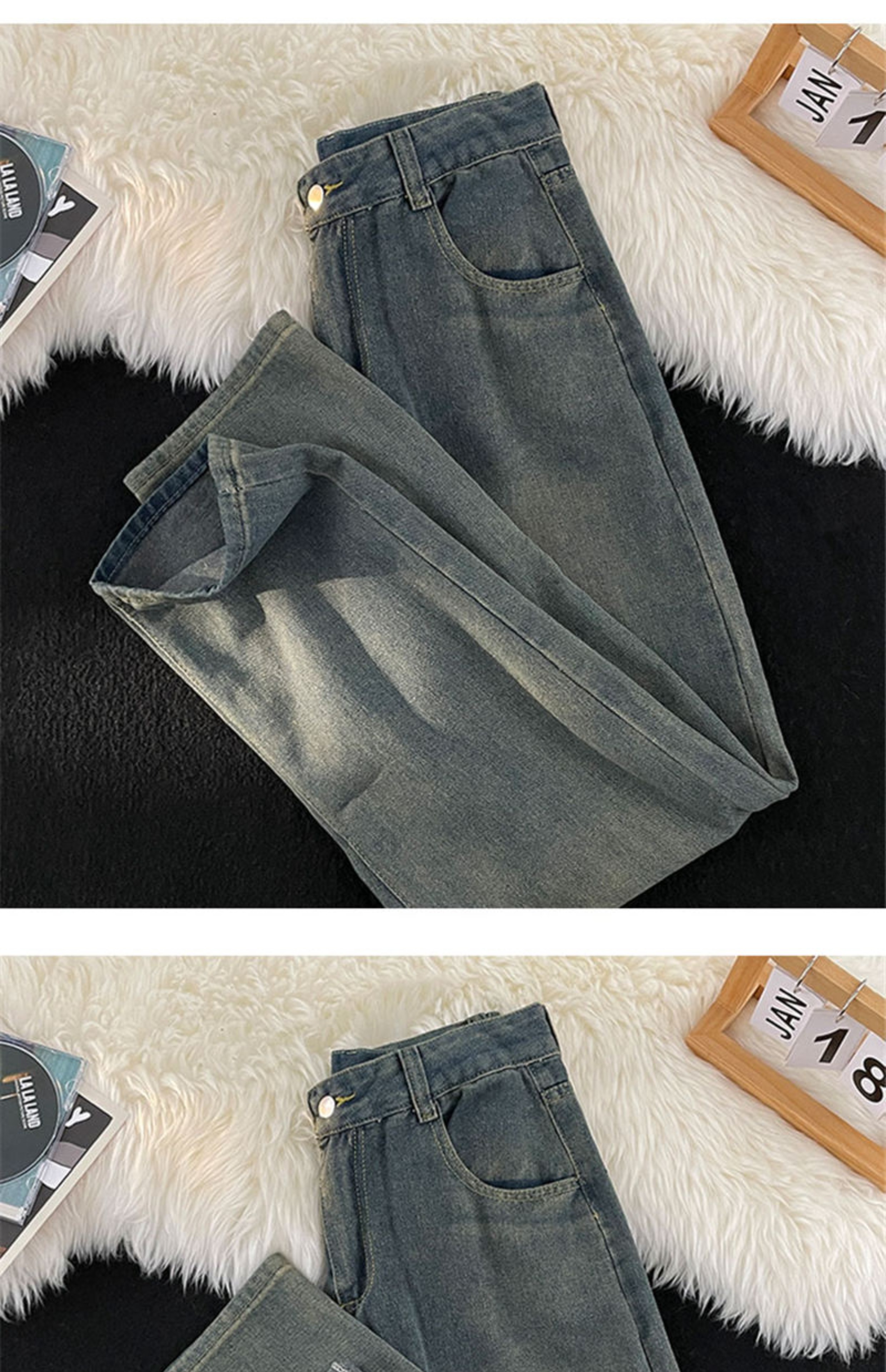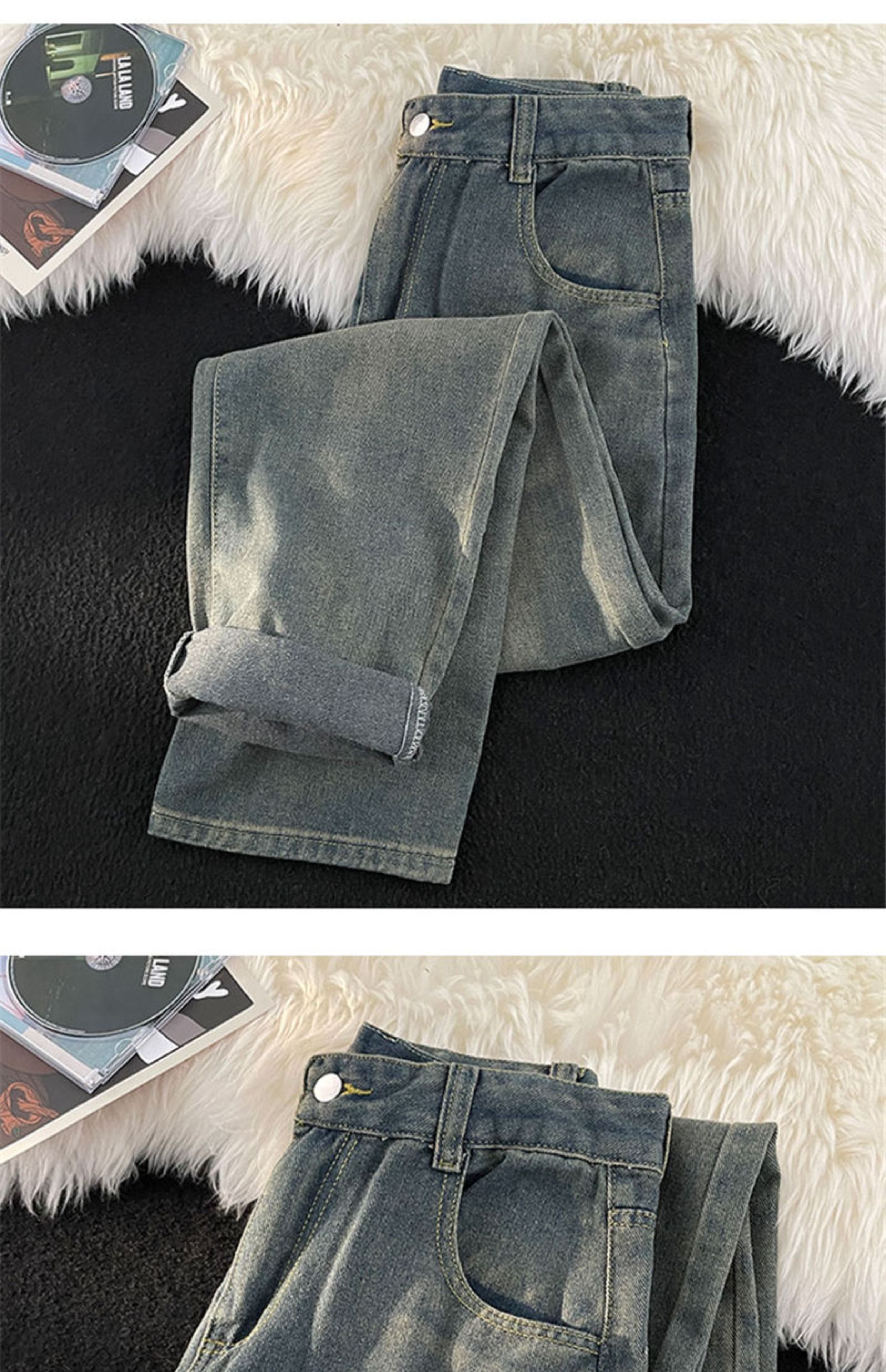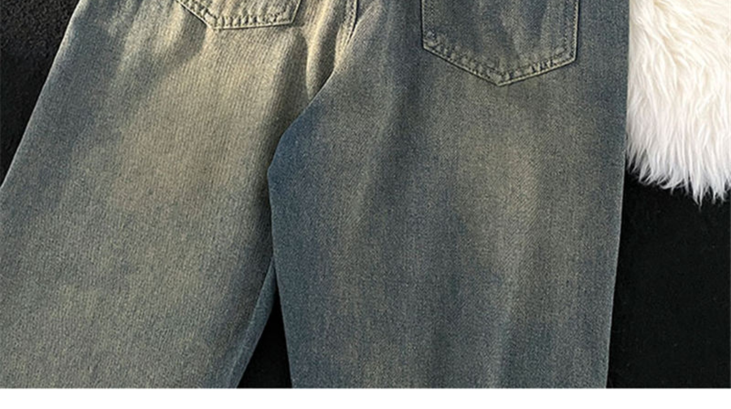 봄과 가을 스트레이트 레그 청바지 남성용 루즈 트렌디 브랜드 캐주얼 일본식 레트로 올매치 올드 와이드 레그 팬츠스토어 가기