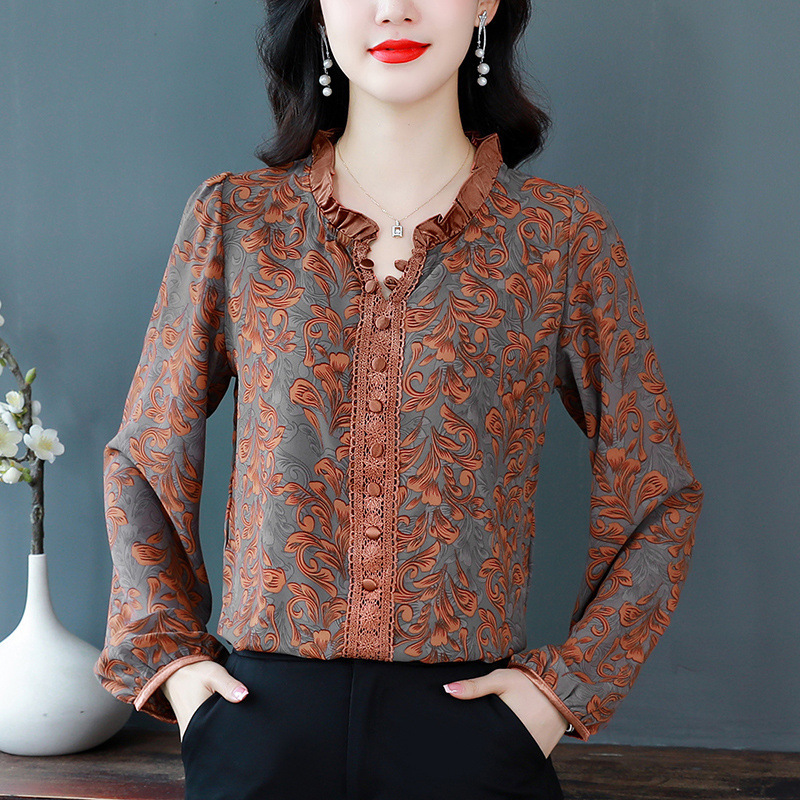 항주 무거운 실크 셔츠 여성의 봄과 가을 2024 새로운 외국 우아한 어머니 셔츠 하이 엔드 뽕나무 실크 탑