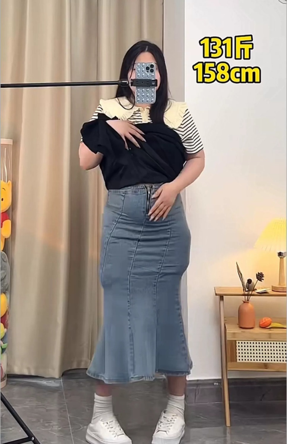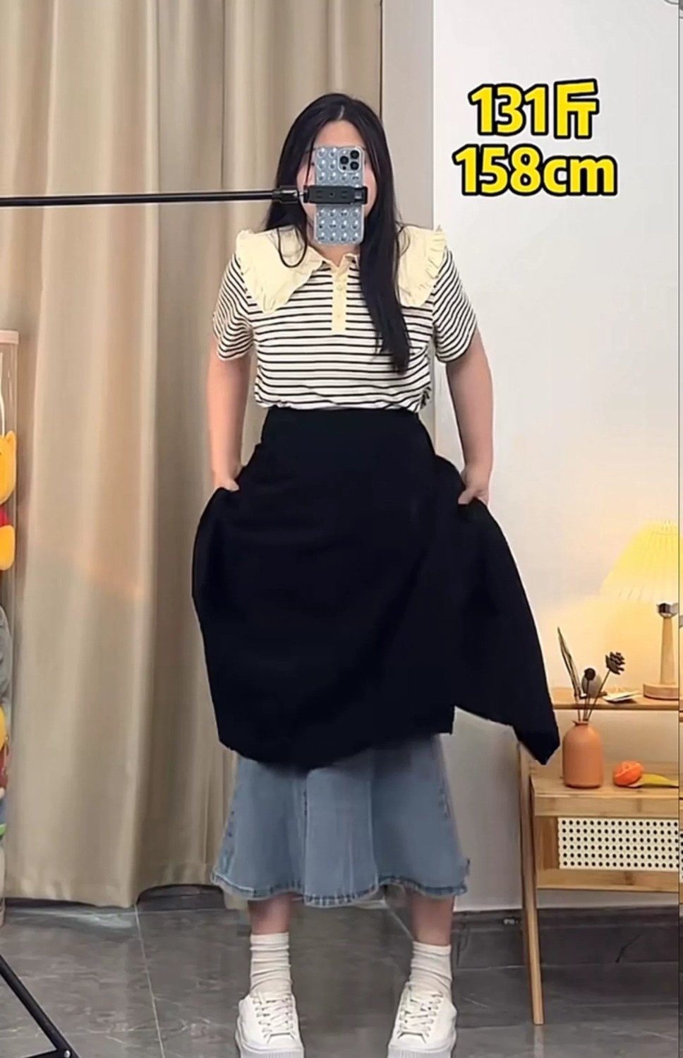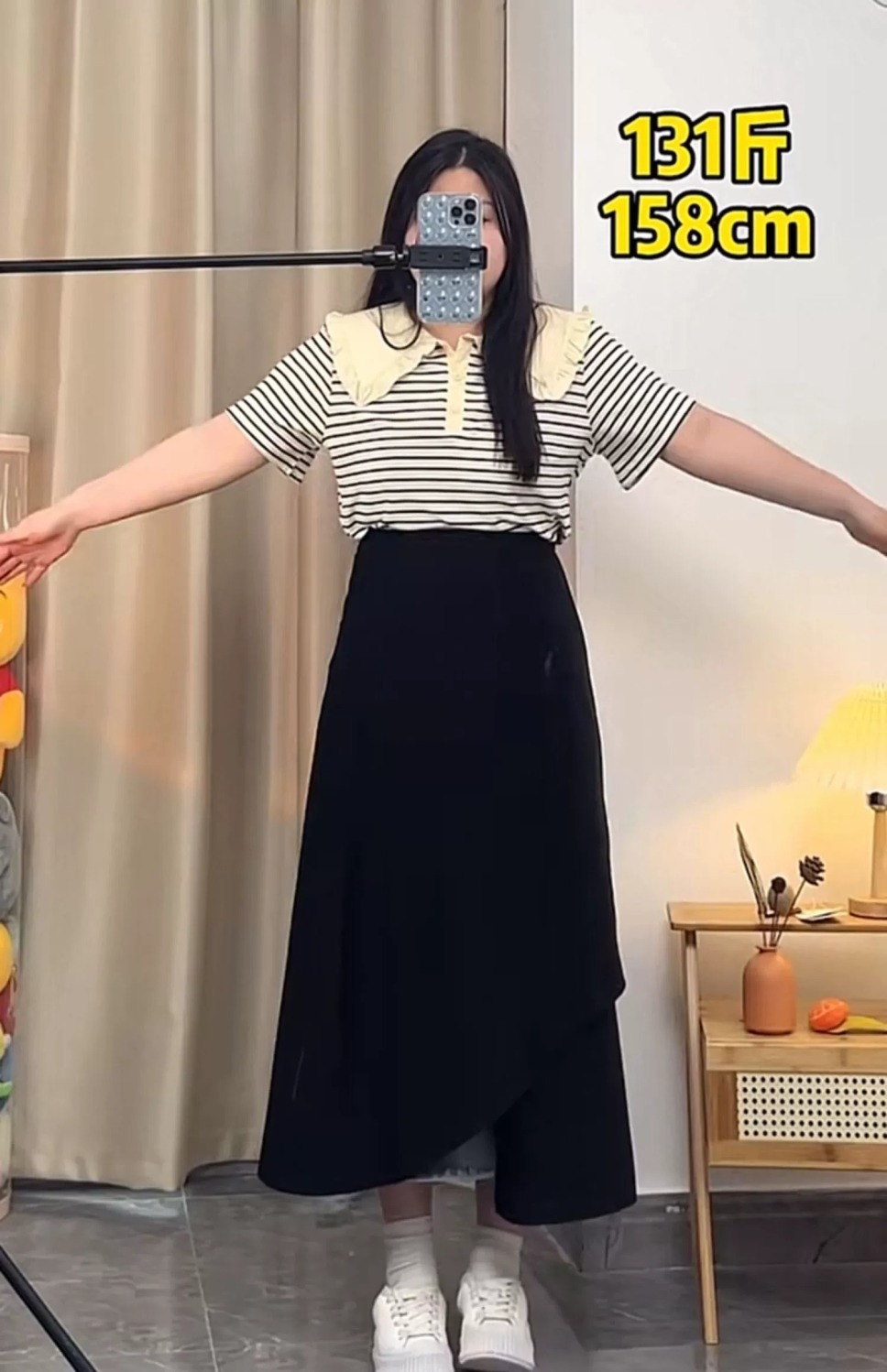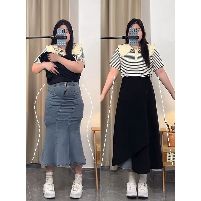 통통녀 불규칙한 검은 색 세트 절반 길이 치마 봄과 여름 새로운 도착 플러스 사이즈 느슨한 배 모양 슬리밍 육체 커버 A-라인 스커트스토어 가기