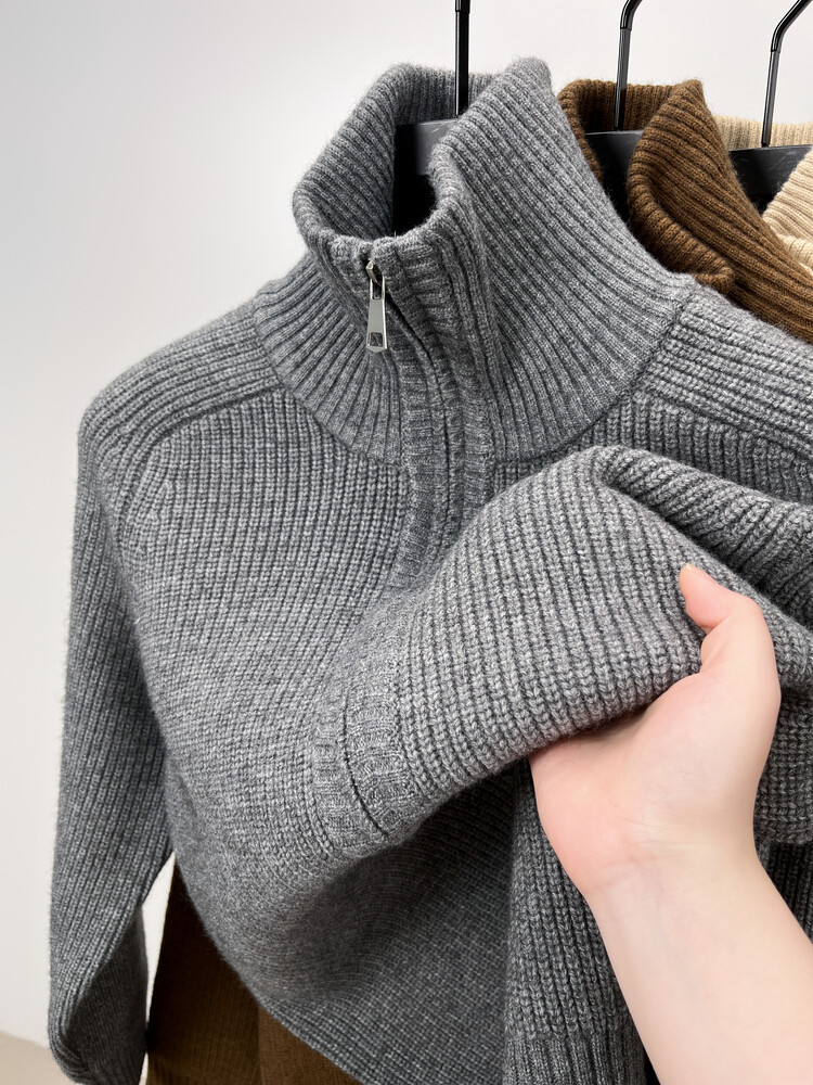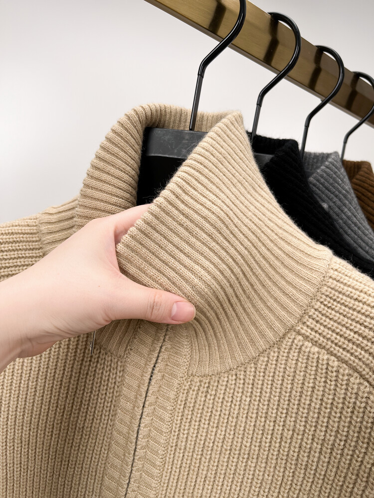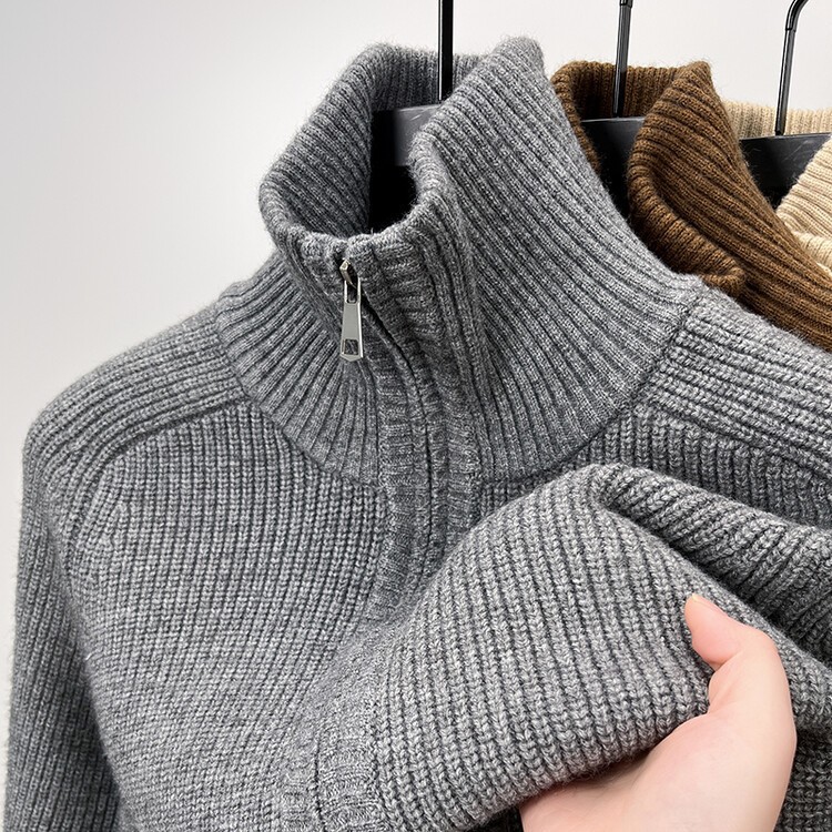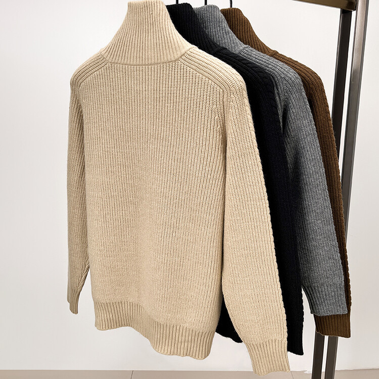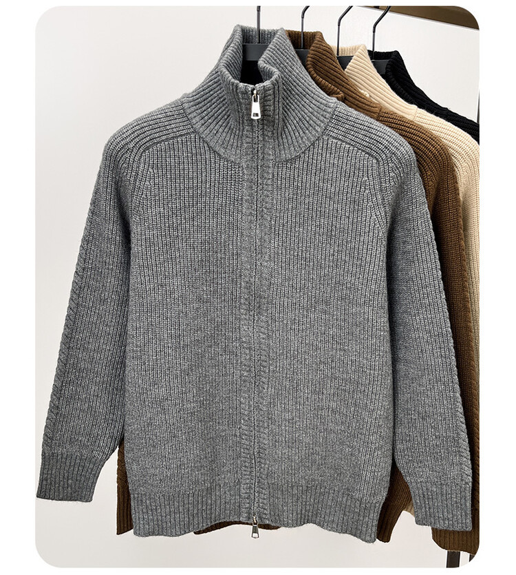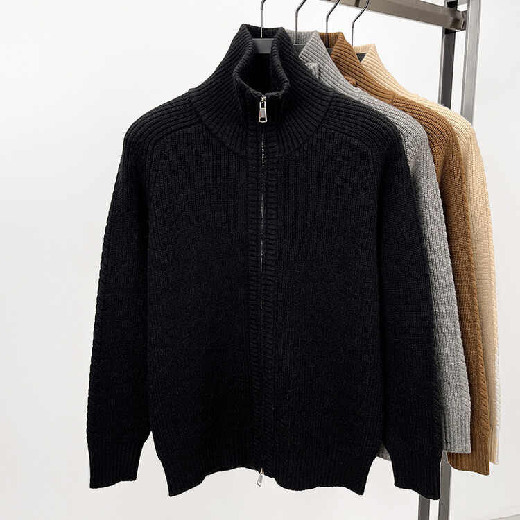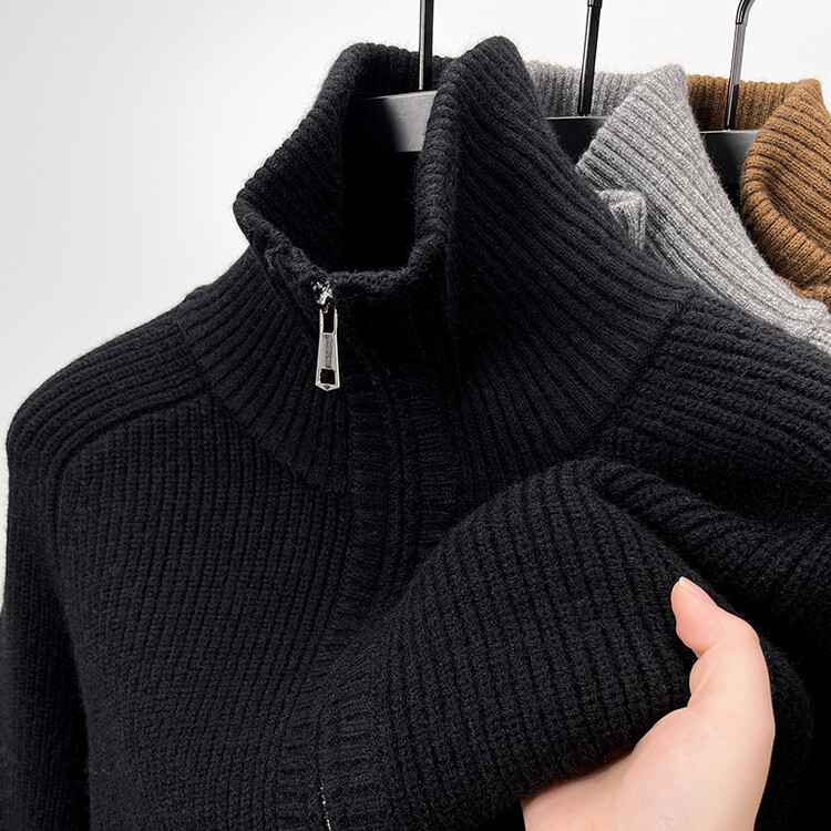 스탠드 칼라 가디건 남성 스웨터 니트 재킷 가을 겨울 남성복 더블 하프 지퍼 헤드라인 스웨터 두꺼운 트렌디스토어 가기