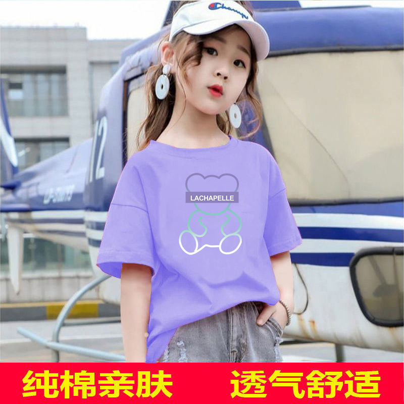 2167 # 새로운 어린이 여름 소녀 만화 인쇄 어린이 캐주얼 티셔츠 소녀 반팔 트렌디 루즈 탑스토어 가기