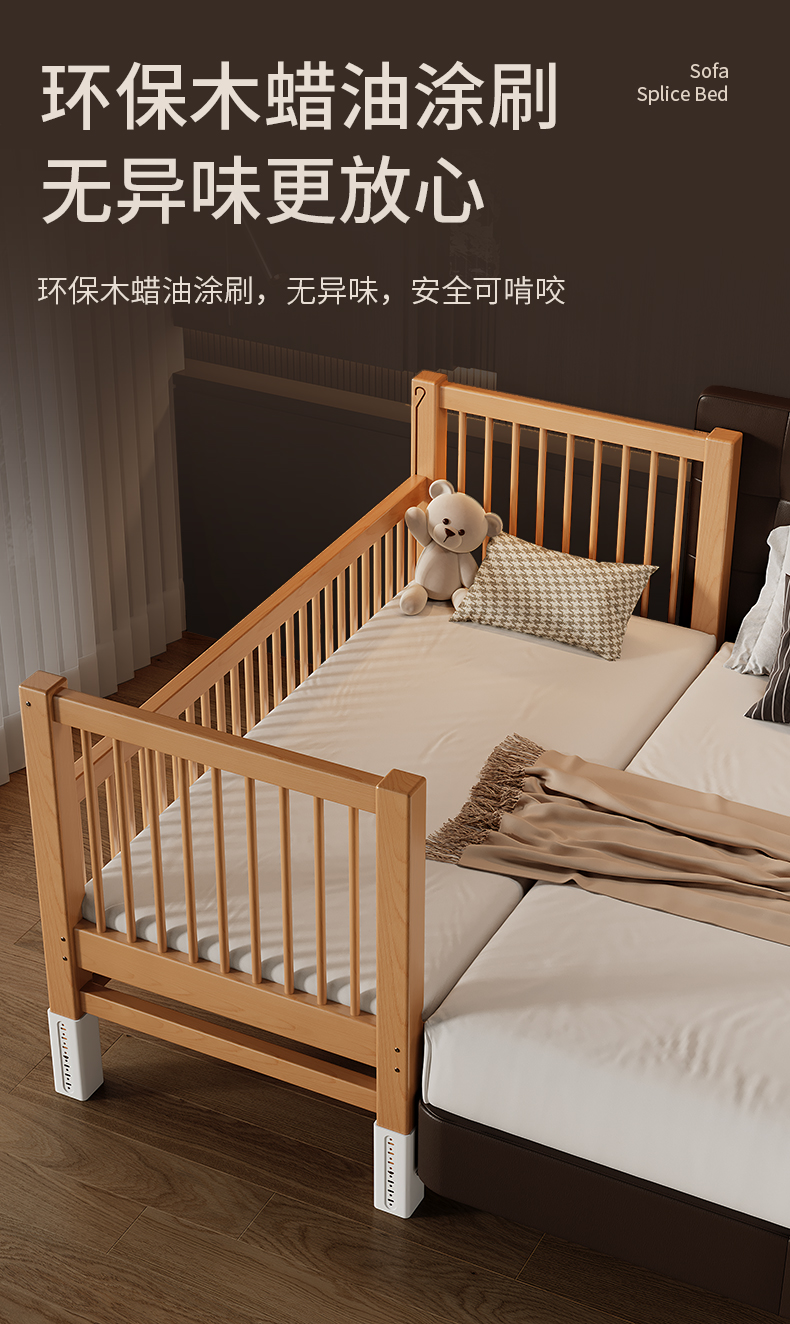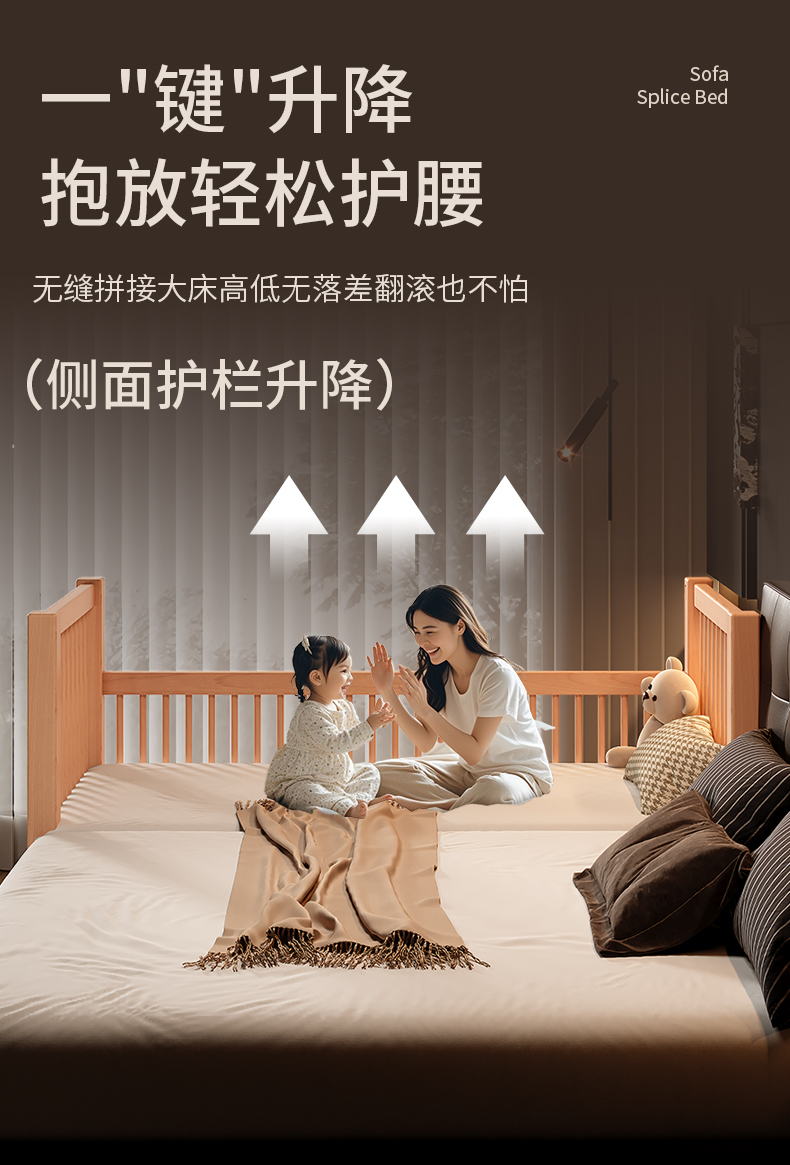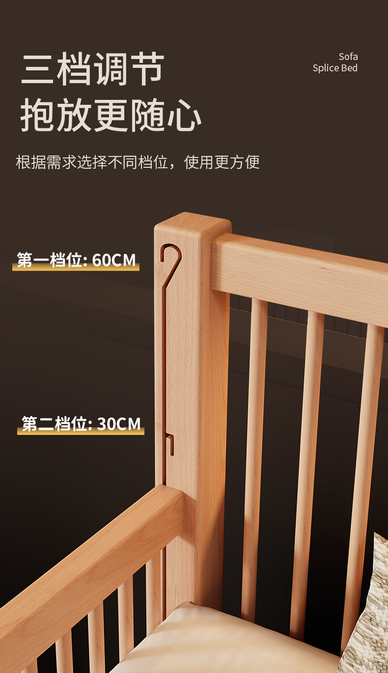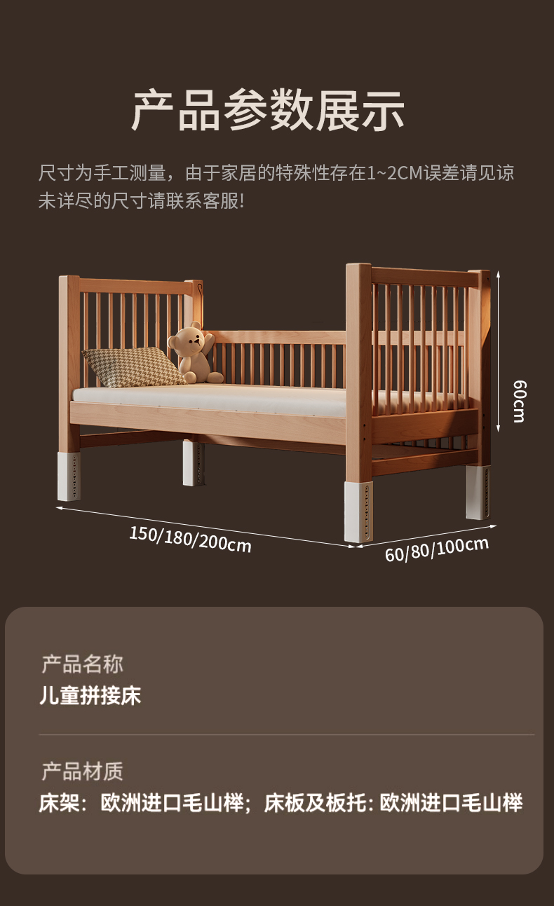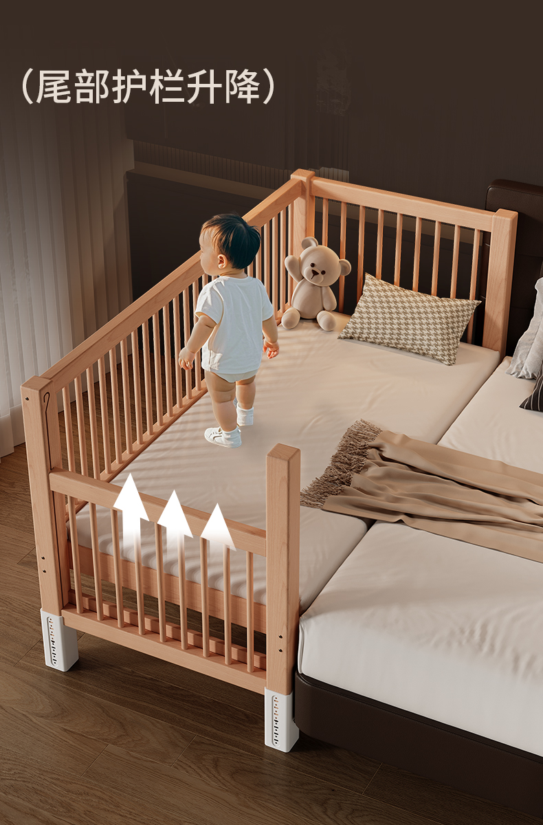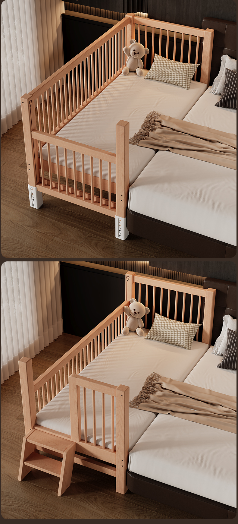 Y * 너도밤 나무 어린이 접합 침대 침대 침대 침대 접합 침대 측면 조정 가능한 고정 침대스토어 가기