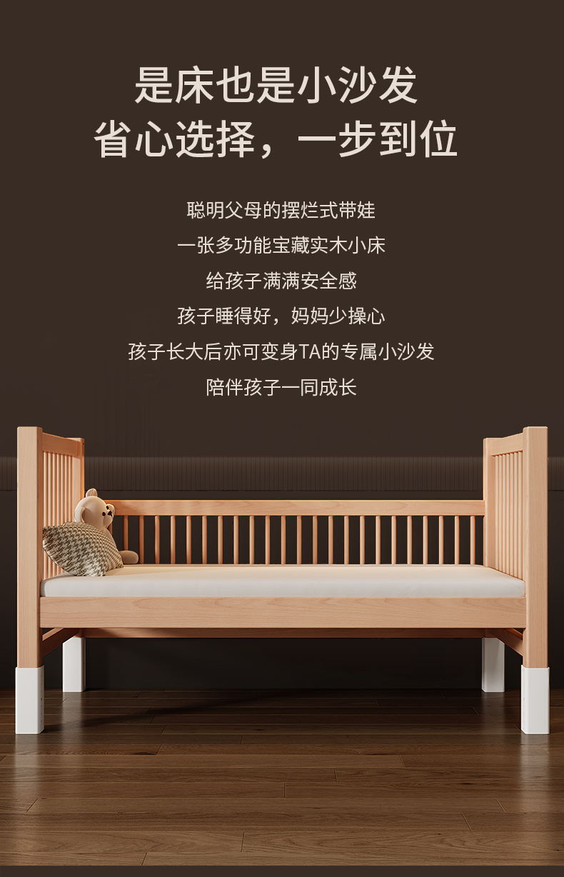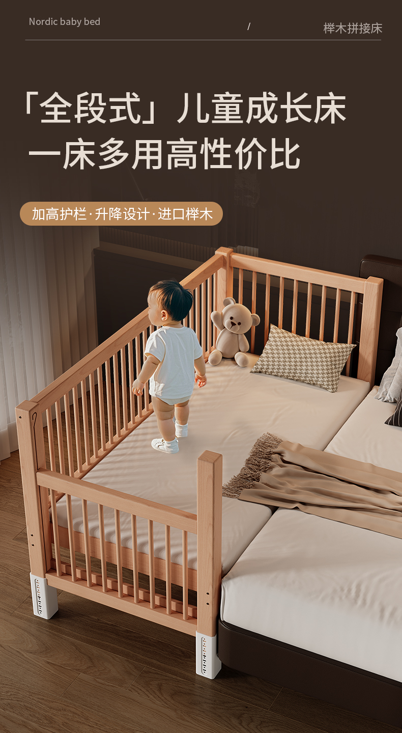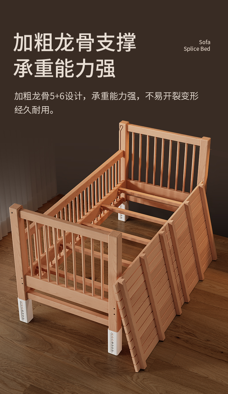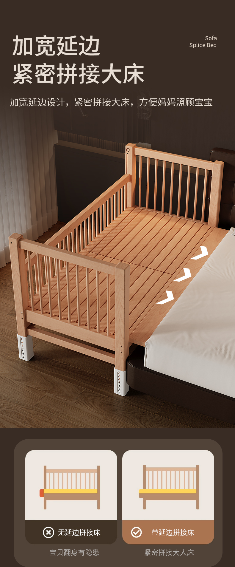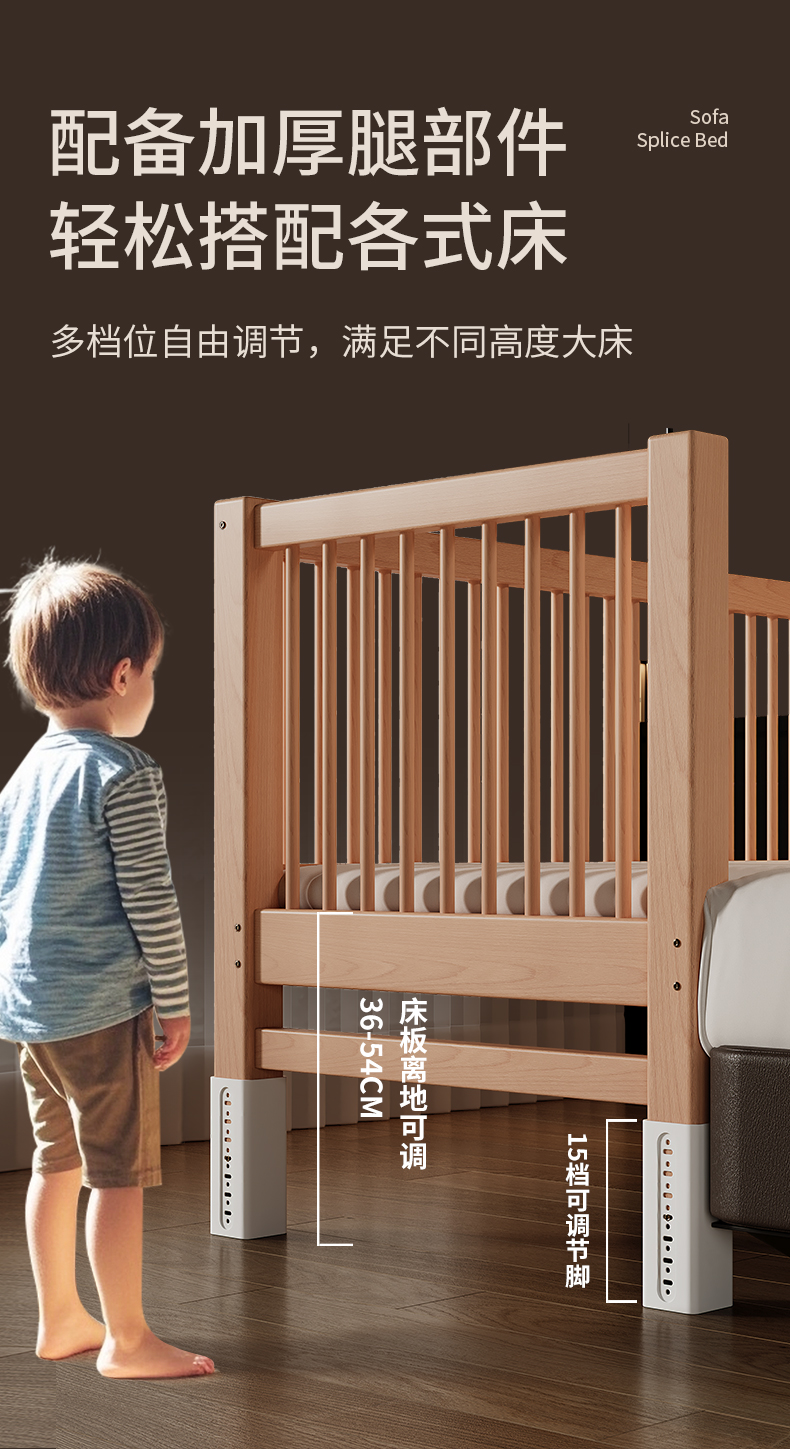 Y * 너도밤 나무 어린이 접합 침대 침대 침대 침대 접합 침대 측면 조정 가능한 고정 침대스토어 가기