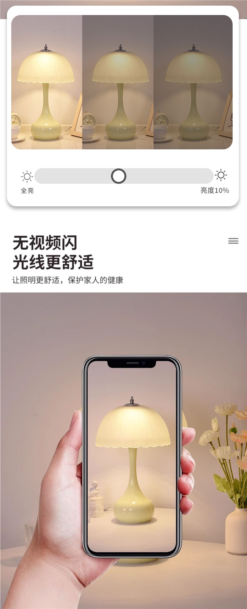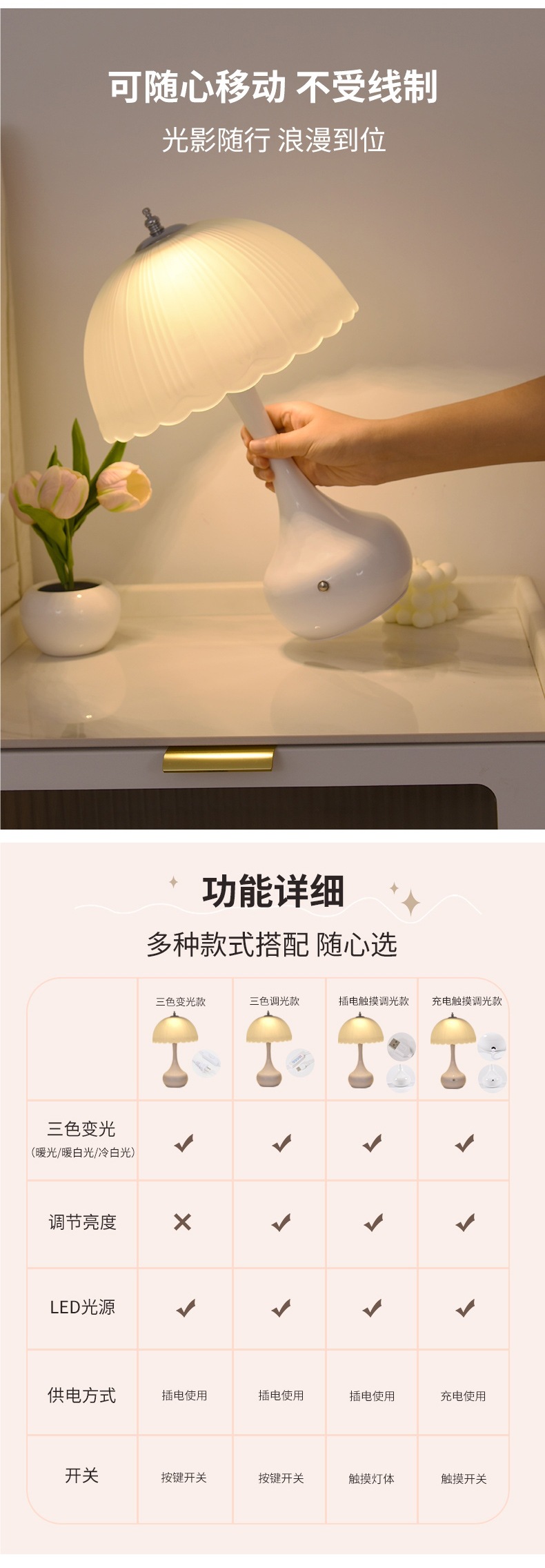 • 충전식 모델 - 크림색 세라믹 [밝기 조절 가능 + 3색 조명] 이중 목적 충전 및 연결