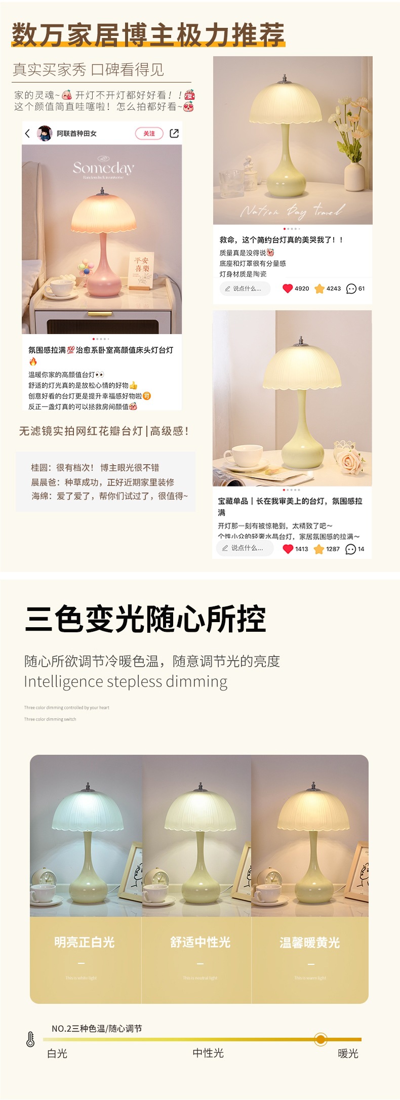 테이블 램프 침실 침대 옆 램프 웨딩 주 침실 분위기 조명 LED 밝기 조절 가능 무드등