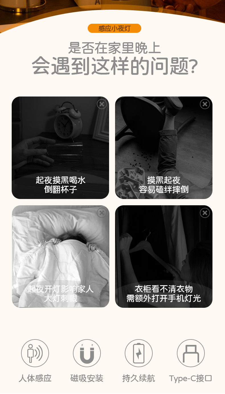 밤에는 사람이 올 때 인체 자동 유도 램프가 입구 문을 켜고 야간 충전 복도 복도 야간 조명 정보