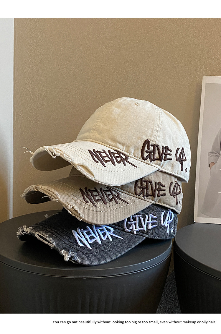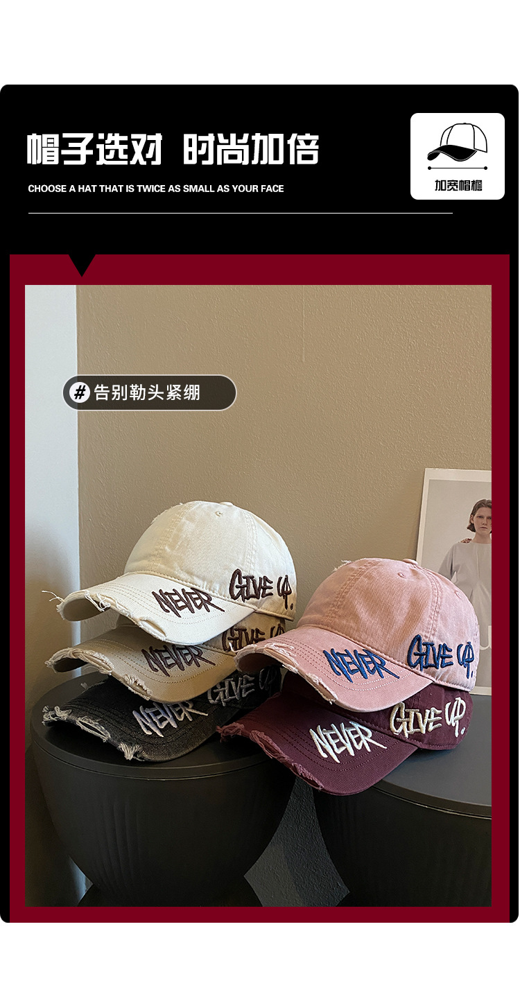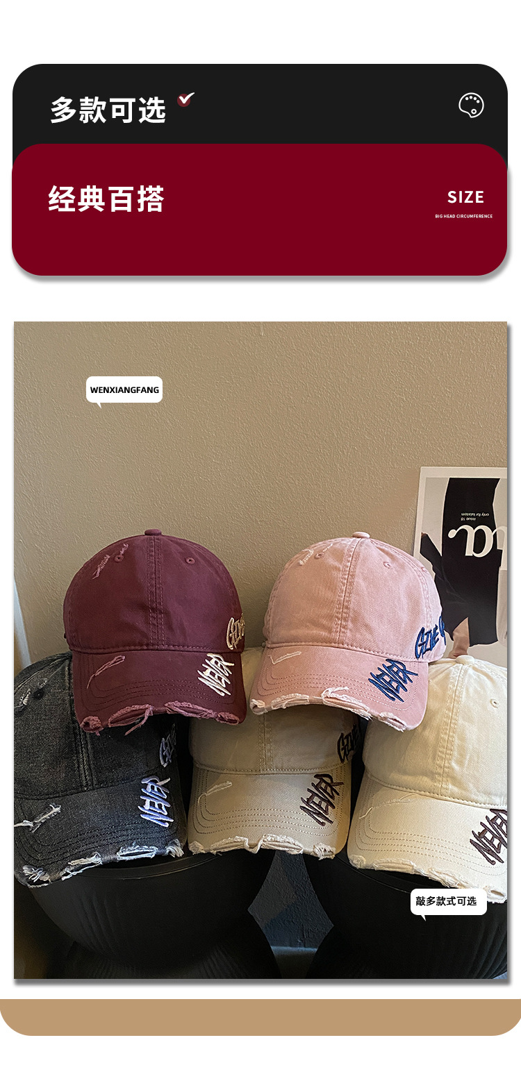 씻은 데님 편지 야구 모자 여자 2025 봄 새 스타일 심화 된 모자 빅 브림 모자 조수 증가