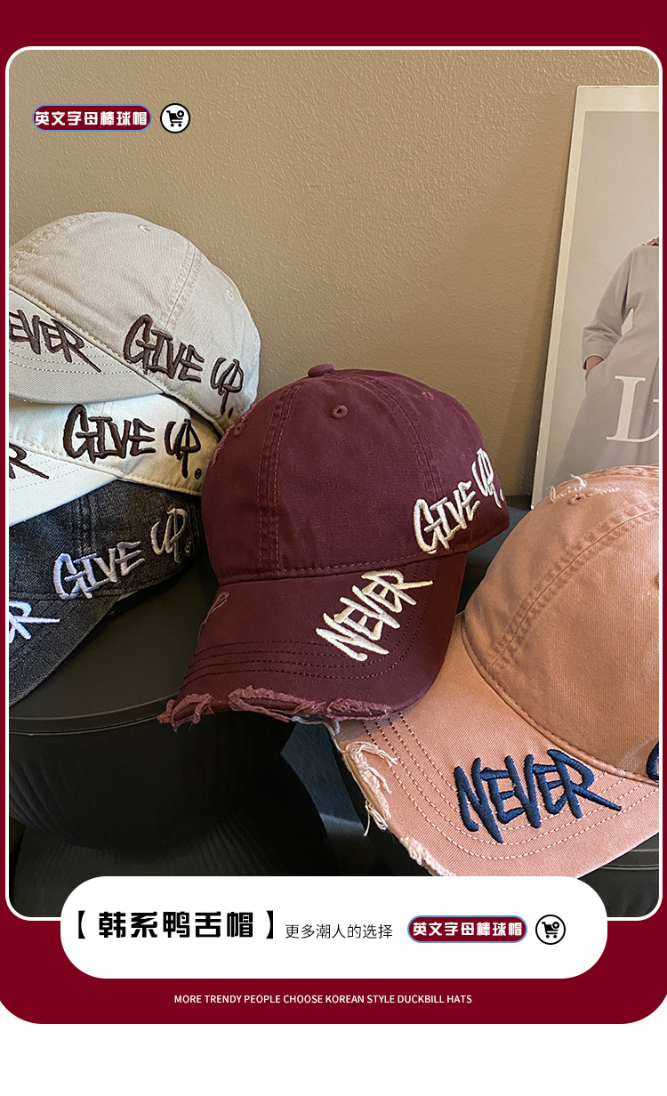 씻은 데님 편지 야구 모자 여자 2025 봄 새 스타일 심화 된 모자 빅 브림 모자 조수 증가스토어 가기