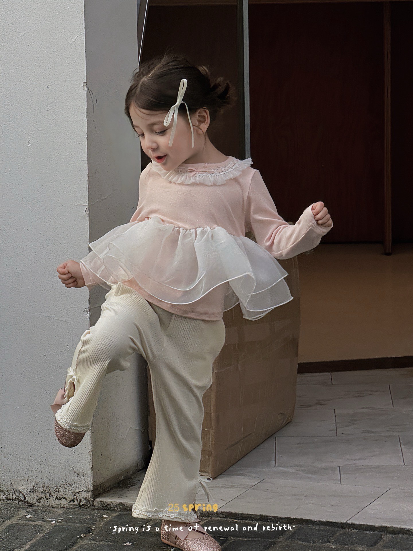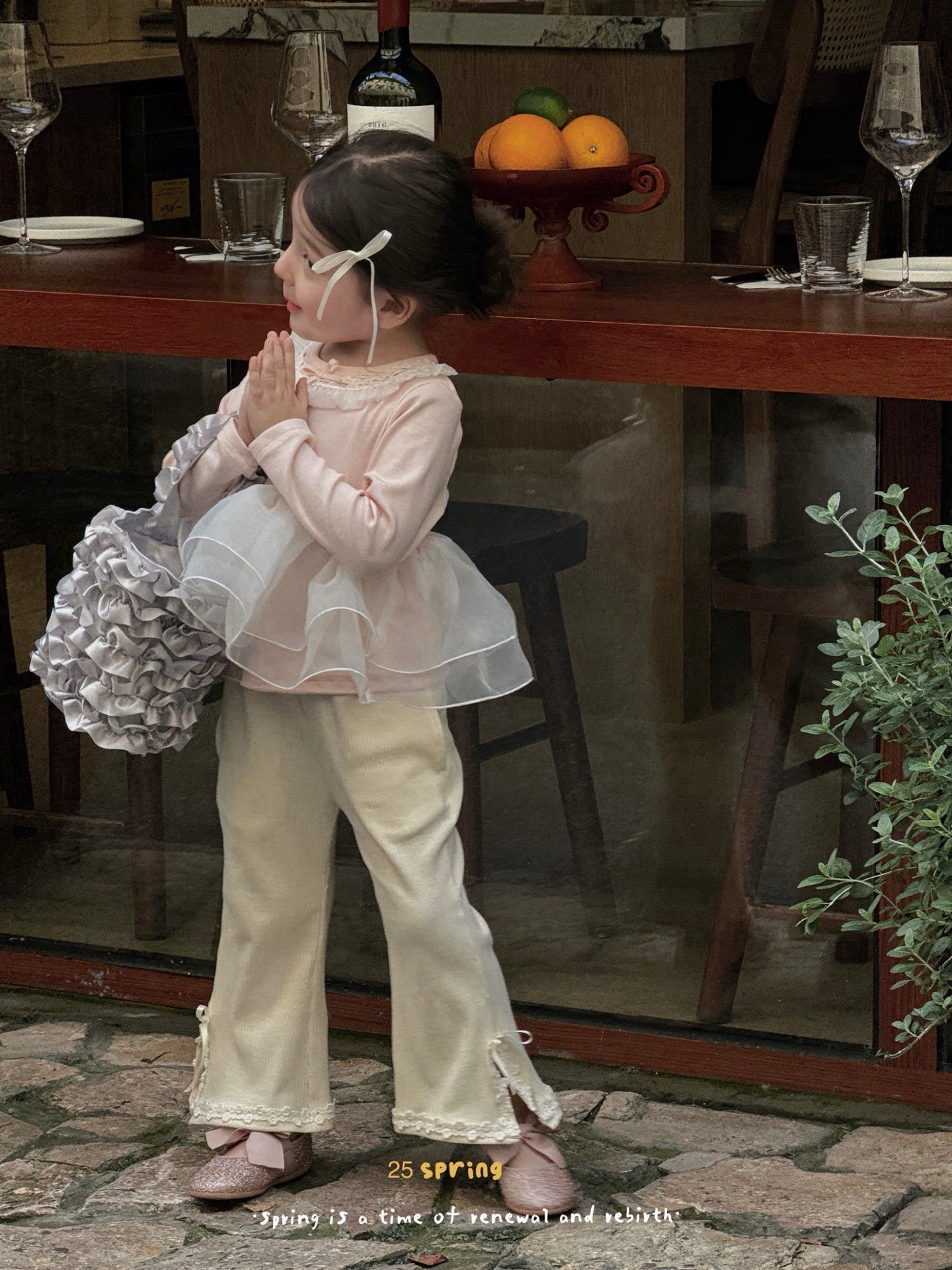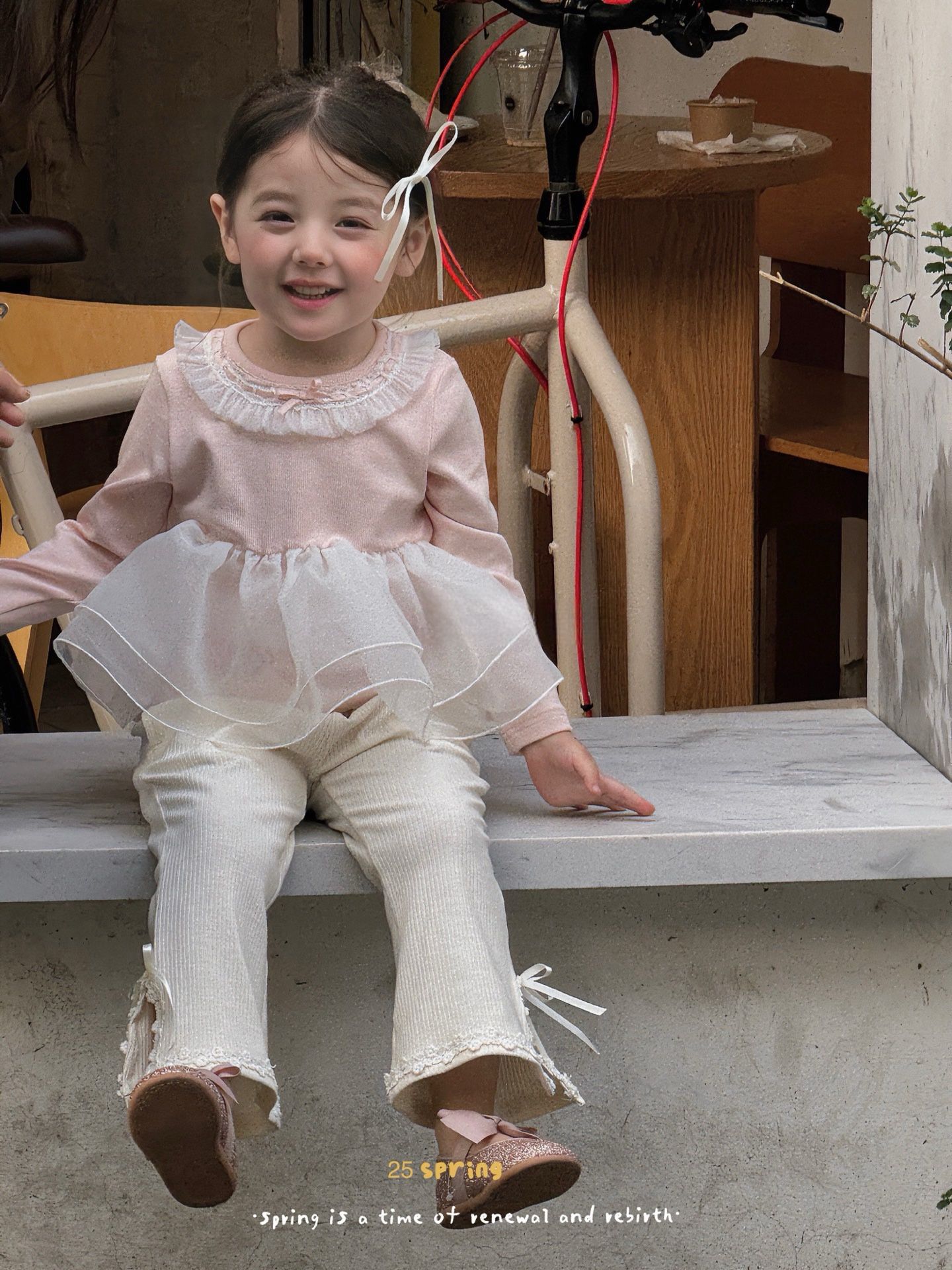 라임 소녀의 풀오버 25 봄 소녀의 달콤한 핑크 선박 스커트 크루 넥 탑 살구색 레이스 바지
