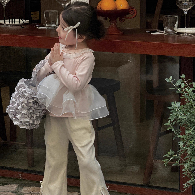 라임 소녀의 풀오버 25 봄 소녀의 달콤한 핑크 선박 스커트 크루 넥 탑 살구색 레이스 바지스토어 가기