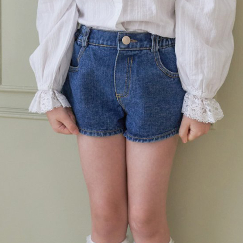 Jessie Jiaer 한국 아동복 25 봄 · 여름 소녀 꽃 데님 한국 클래식 기본 반바지
