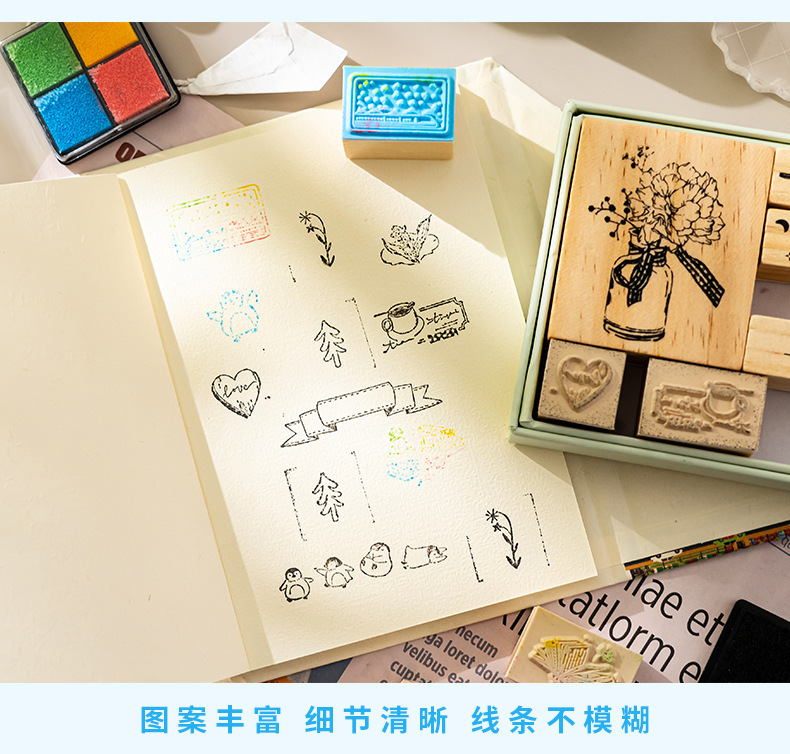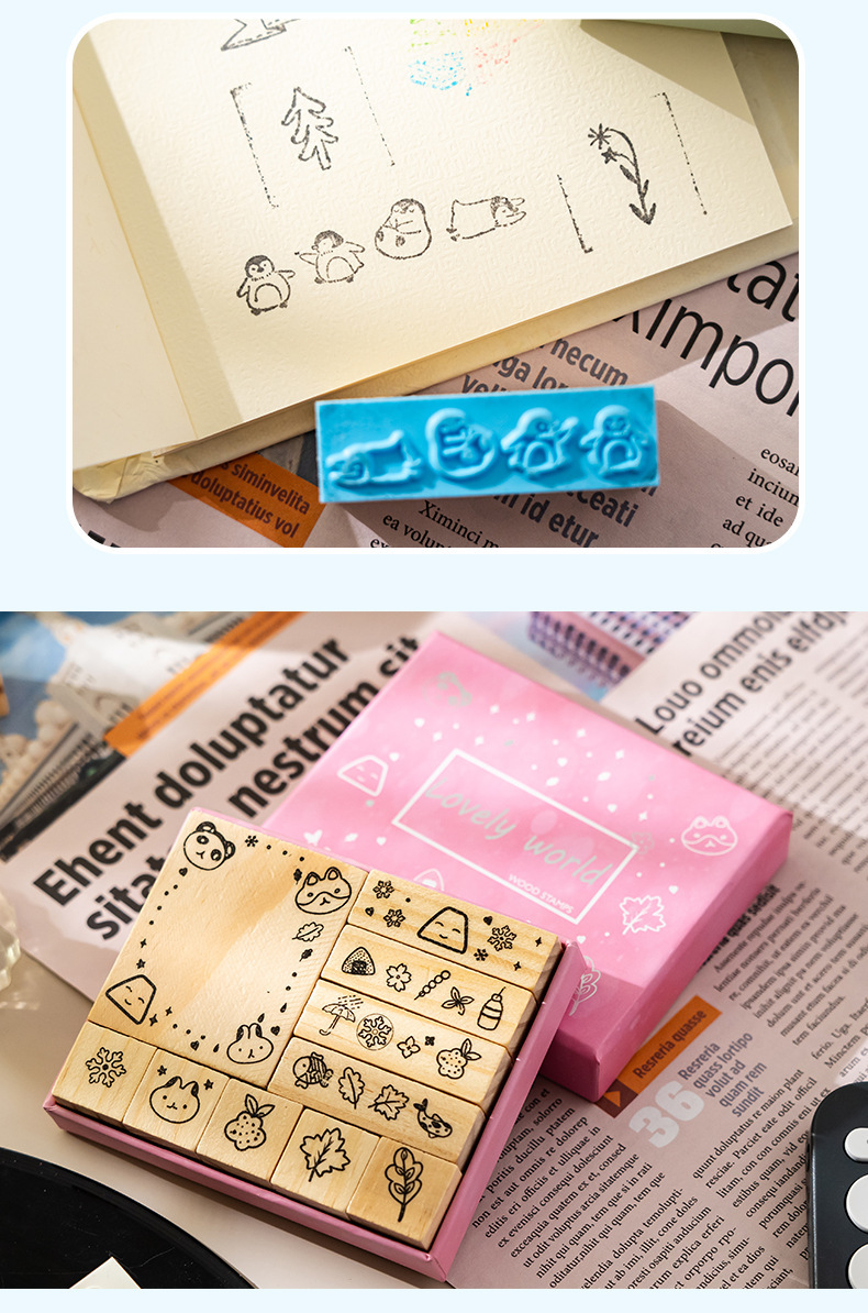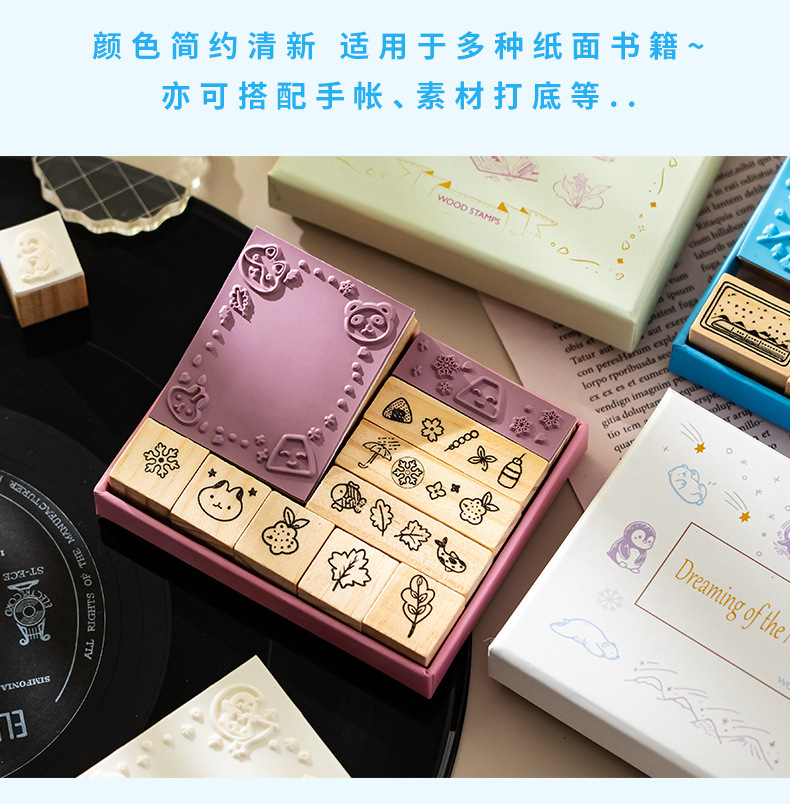 나무 씰 세트 귀여운 신선한 씰 간단한 사진 앨범 일기 장식 DIY 식물 동물 만화 씰스토어 가기
