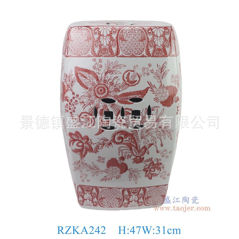 Jingdezhen Glaze 빨간 세라믹 낮은 의자 손으로 그린 드럼 의자 광장 의자 중국 스타일 신발 변경 거실